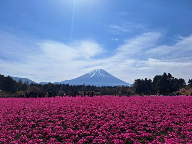 お出掛け春の特等席。富士芝桜まつり2026 またまた富士山見物!「富士芝桜まつり」へ。この日は「絶景 気球体験」が出来る初日ということで朝イチでやって来たが「本日強風のため気球体験中止」残念。 稼働時間は、朝の2時間のみで料金4,000円、搭乗時間は5分程度。かなり割高感だが体験してみたかった。(高所恐怖症なんだけど) 先週からの開催だった富士芝桜まつり、ちょうど見頃な感じでした。 2026.04.19お出掛け