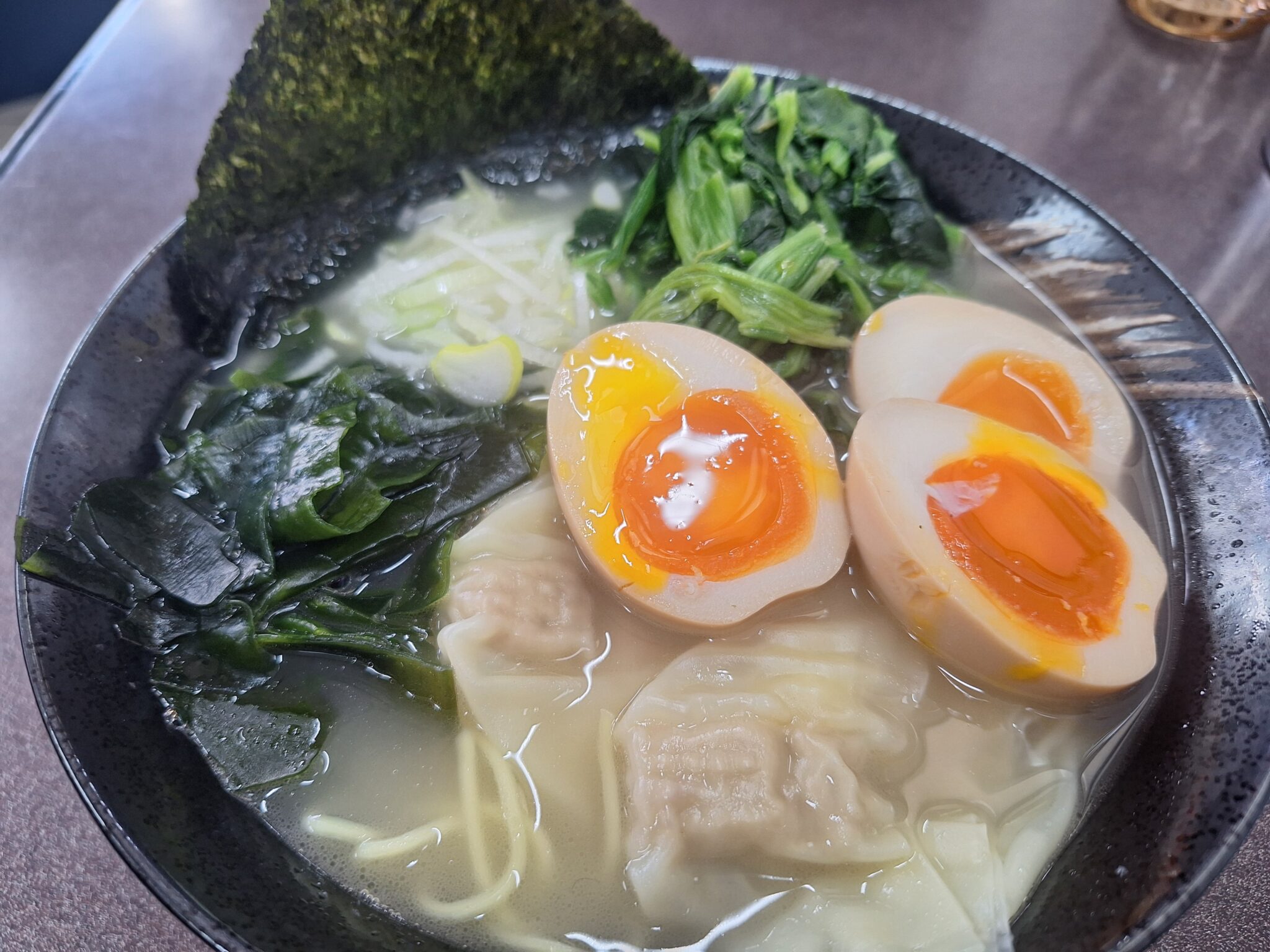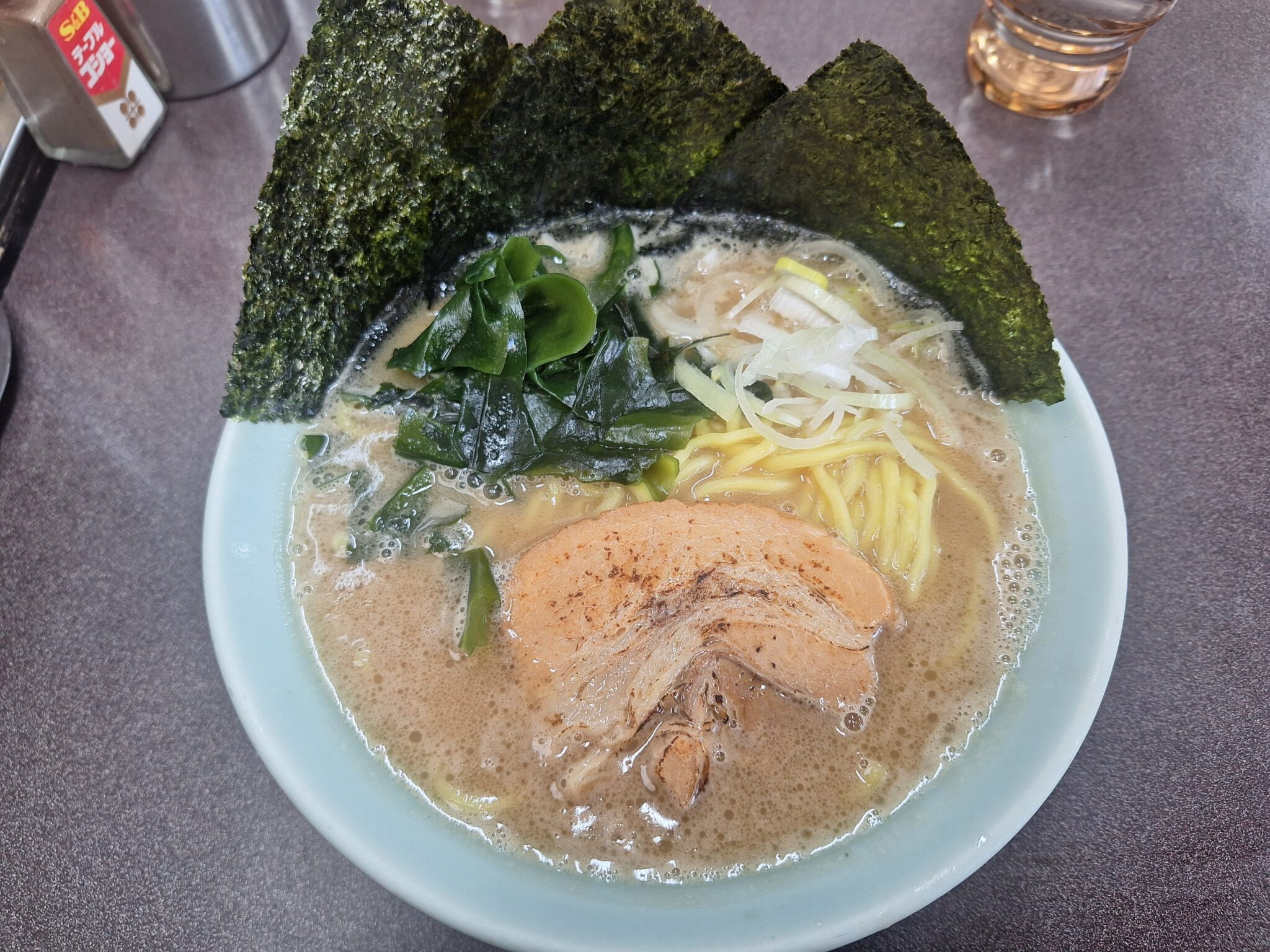 ラーメンの種類が豊富で、醤油・塩・味噌・魚介・辛味噌・豚バラもやしラーメン・肉そば・つけ麺などなど。麺(太麺・細麺)油(多・普・少)味(濃・普・薄)も選択できる。俺は醤油ラーメン、麺太目、油少なめ、味薄めでオーダーもちろんミニライスはお断り。妻はあっさりラーメン 塩味にトッピング。看板とおり濃厚こってり、麺はモチモチ、チャーシューはホロホロ。うまかった!ごちそうさまでした。