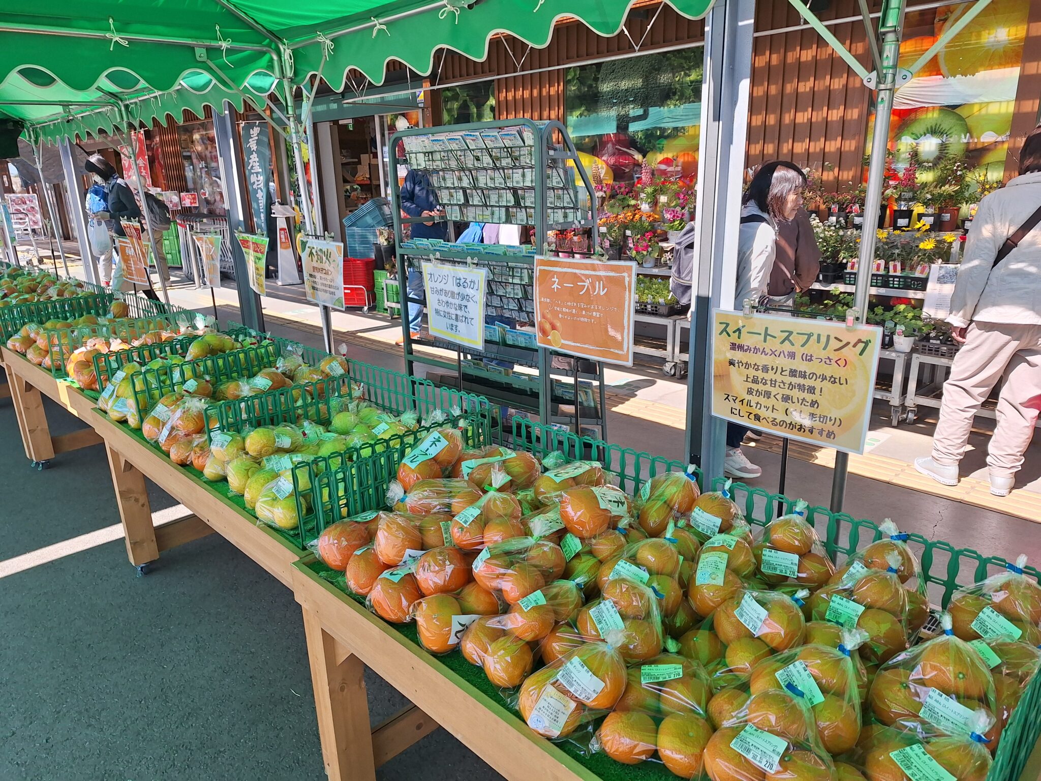 屋外では各種の柑橘類が販売されている。