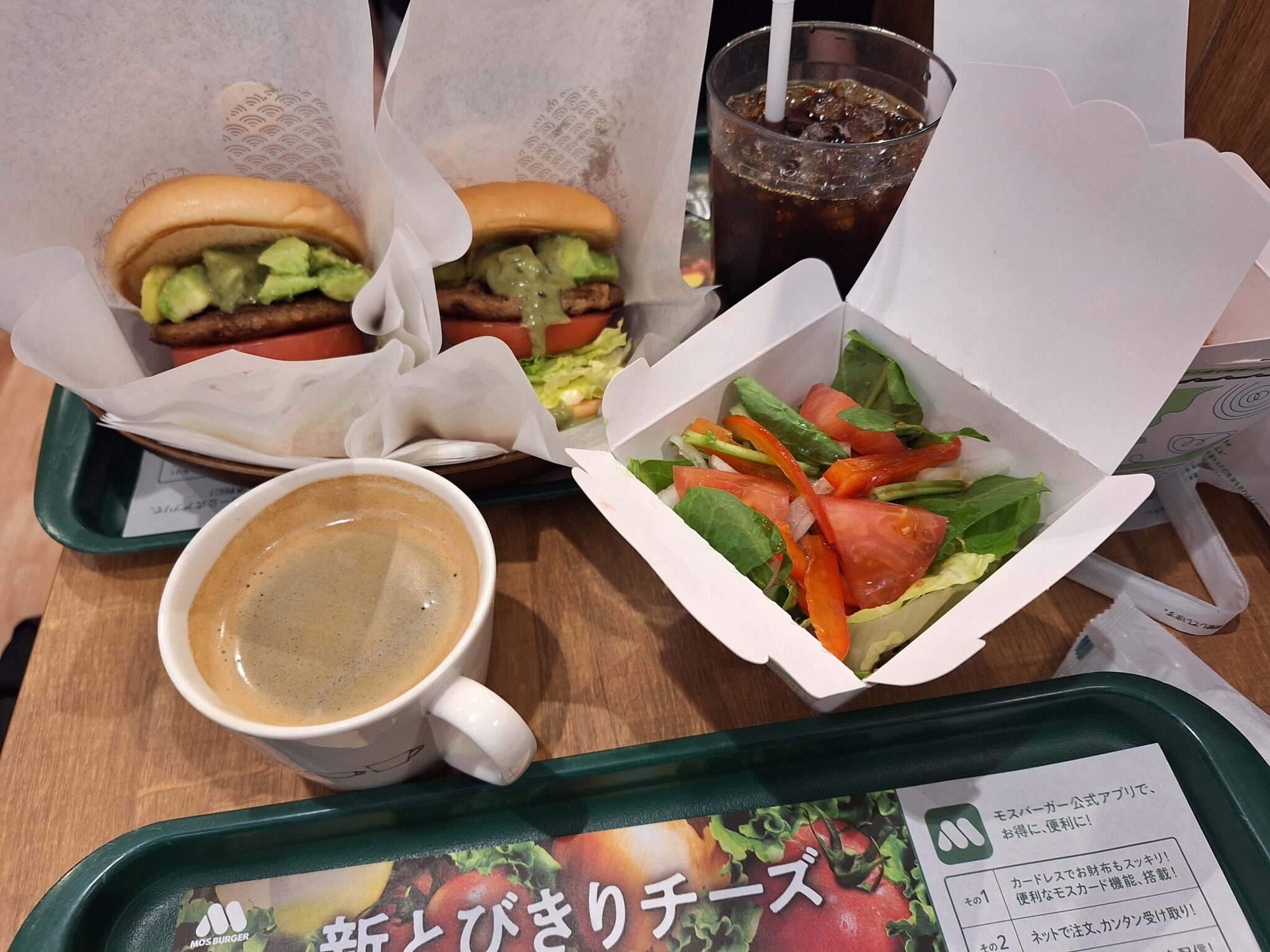 食 美味しい!モスバーガーの『アボカドの黄金比。』期間限定アボカドバーガー食美味しい!期間限定アボガドバーガー 2026.01.06『アボカドの黄金比。』だって。店舗前のアボカドバーガーのポスターに惹かれてランチに。甘辛ソースにレタスとトマトが良く合う。少し食べずらいけど美味しい!モスバーガーの期間限定アボカドバーガー お奨め度★★★アボカドバーガーセット サラダとコーヒーが付いて1,040円(税込)サラダのパッケージが紙でできている。ドレッシングなかなか旨い。期間限定アボカドバーガーモスバーガー金沢八景店