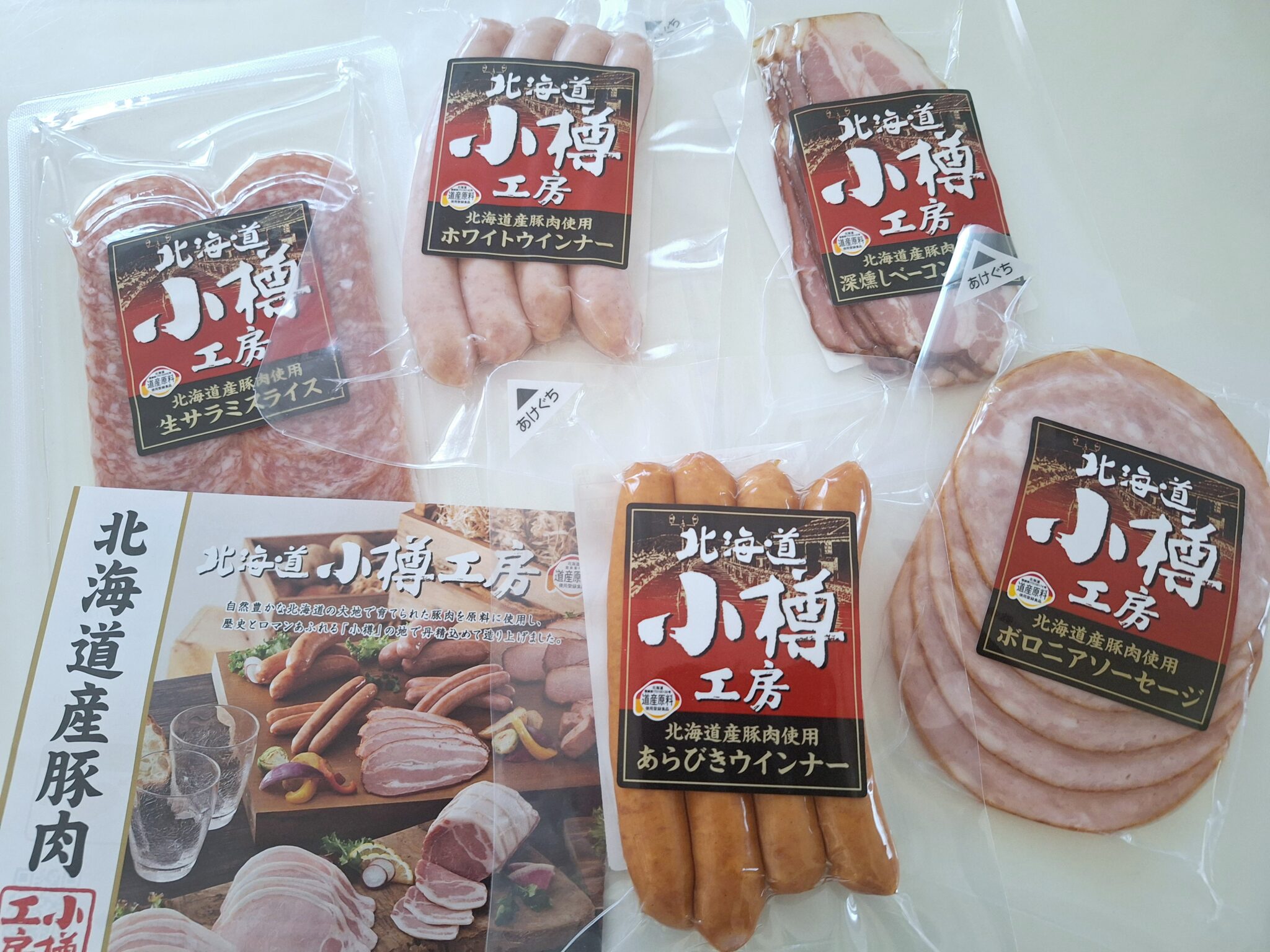 北海道小樽工房のウインナー・ハム・ソーセージ・サラミ6点セット(ロースハムスライスは撮影前に食べちゃった)