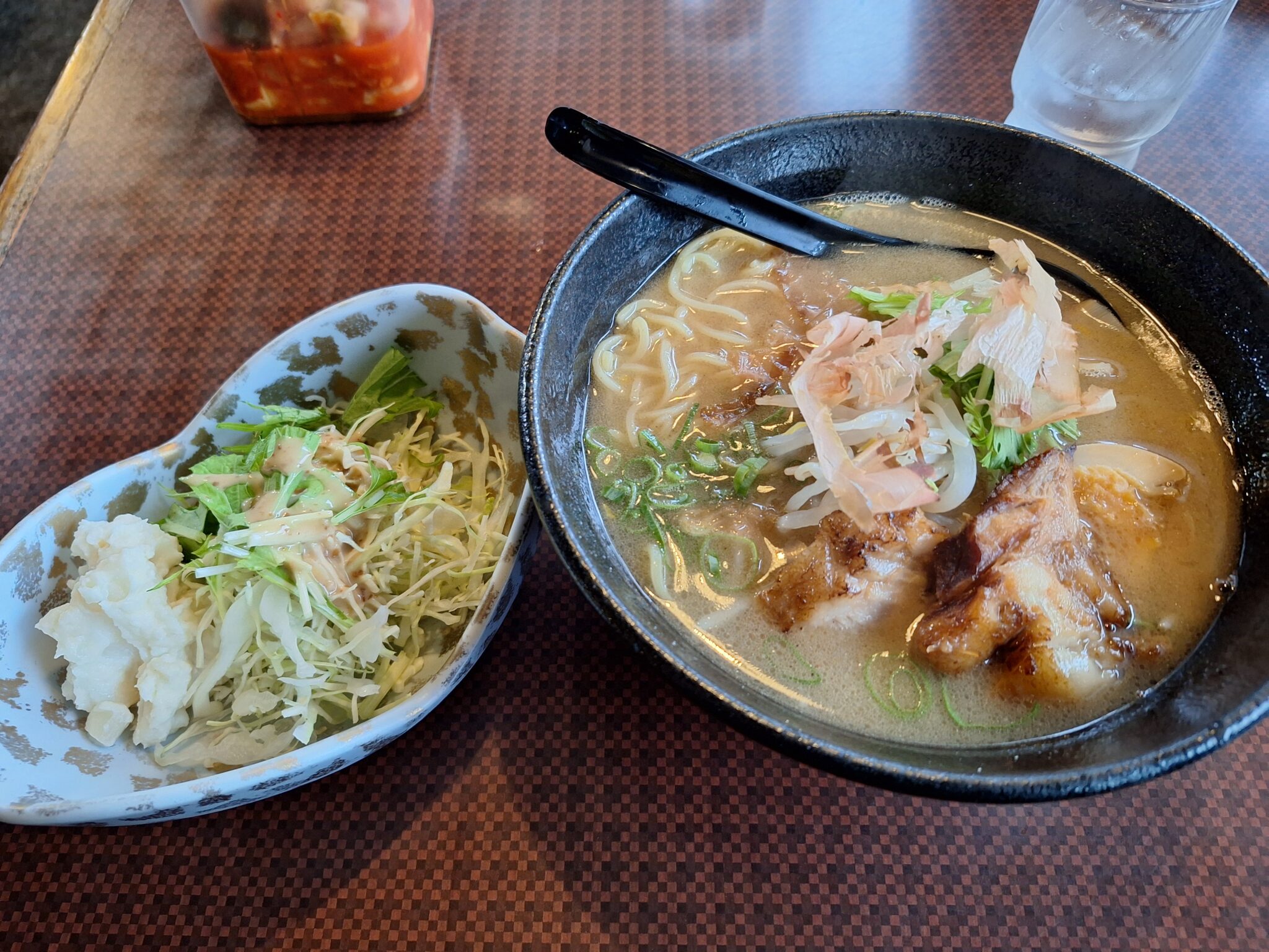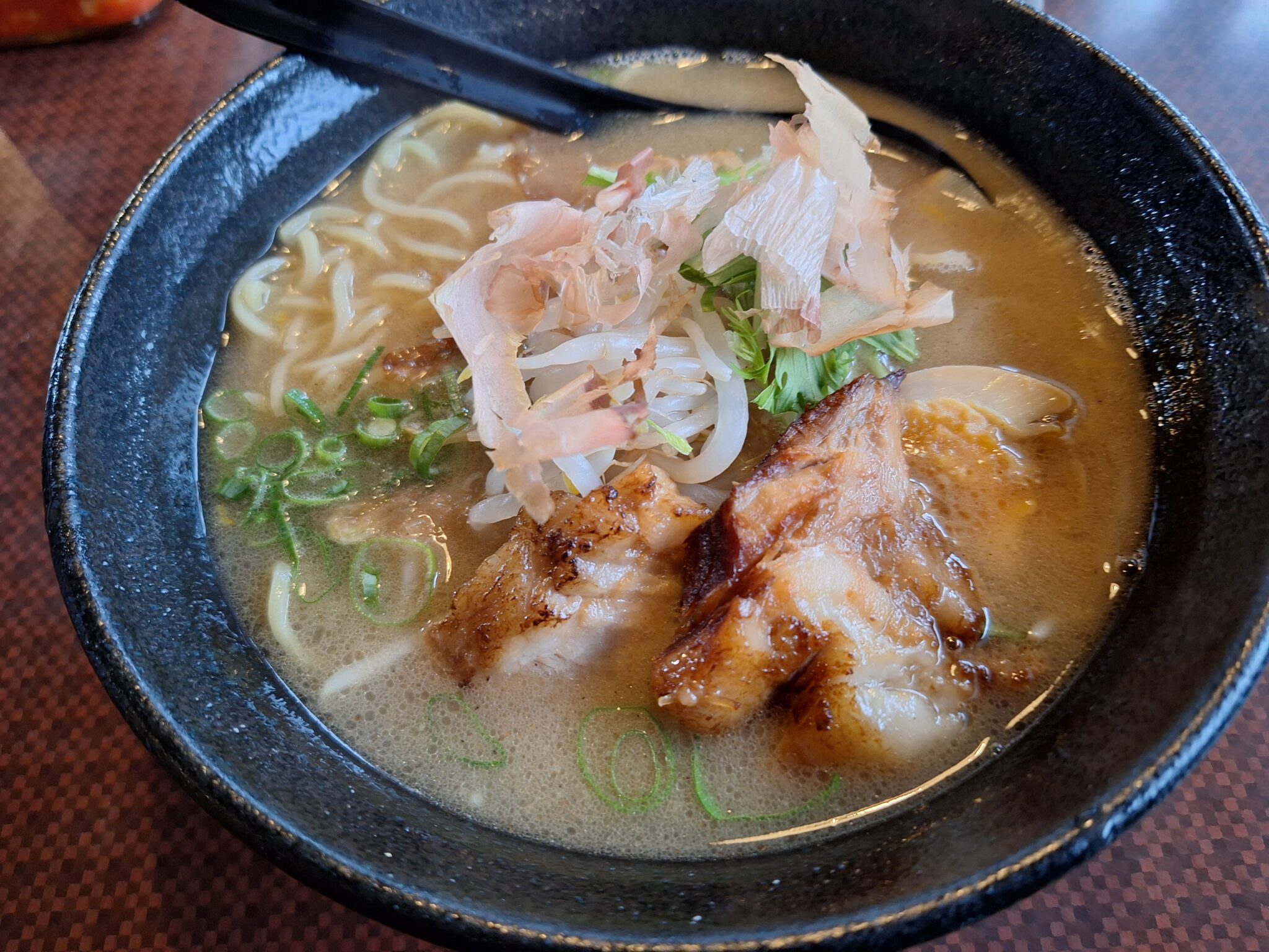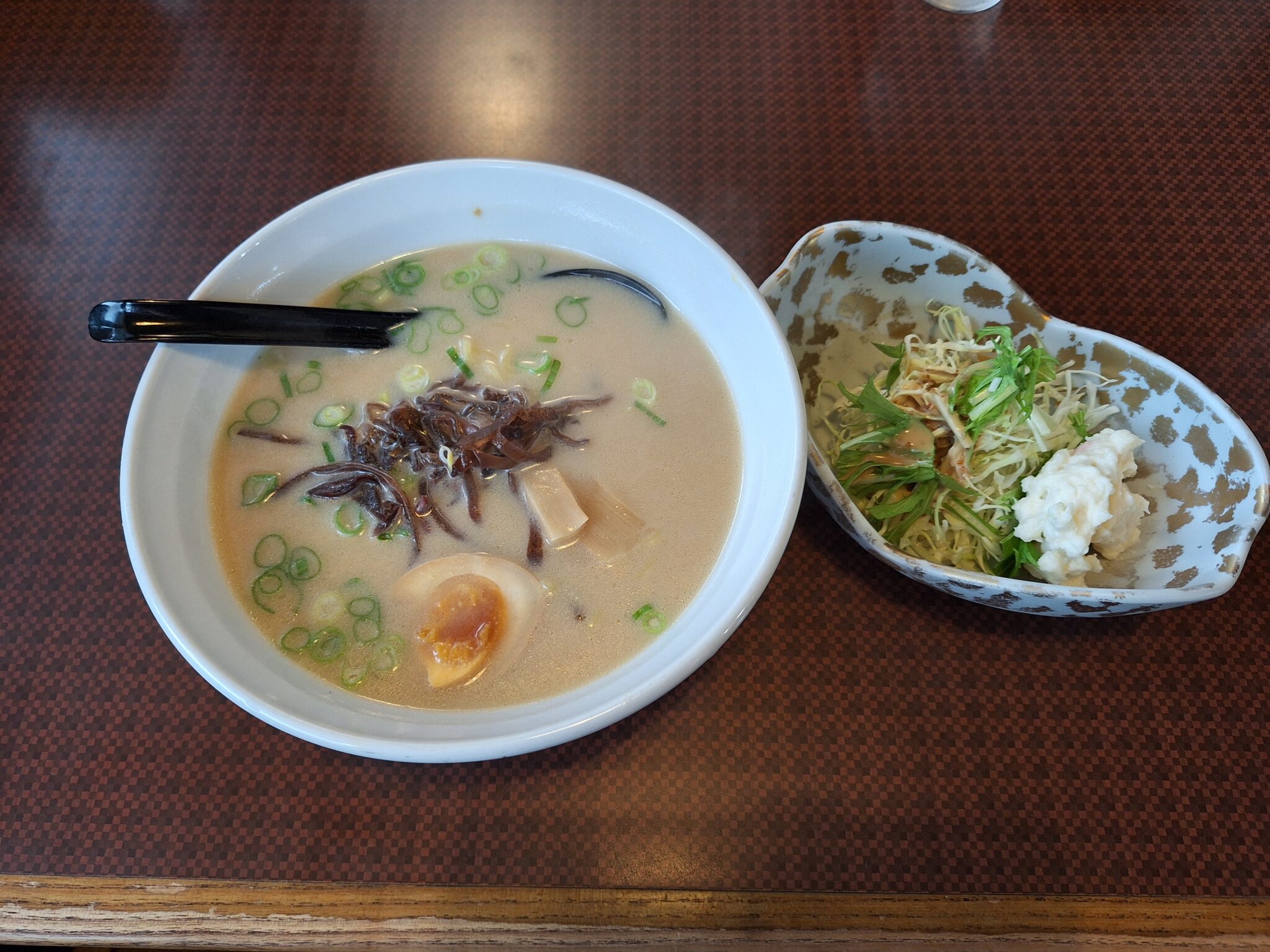 岐阜城から大垣城への移動中、気になる店名「くねくねラーメン」へやって来ました。メニューを見るも「くねくね」したラーメンはなさそう。ゆずしおらーめんをオーダー、かつぶしと水菜がなかなか良い。もう少し柚子が効いてくれればウレシイな。チャーシューはホロホロで俺好み、キムチは無料で食べられます。ごちそうさまでした!