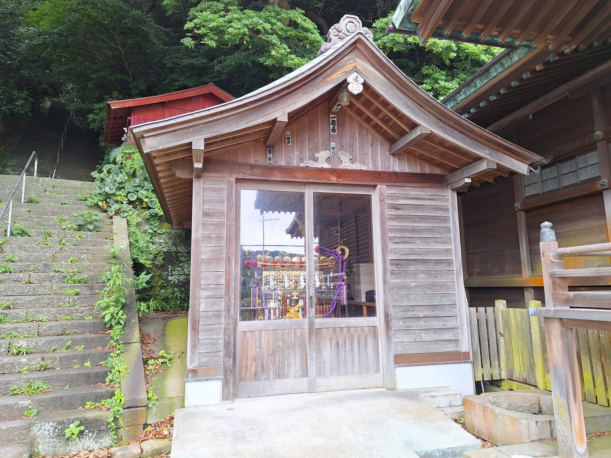 本殿脇の神輿蔵。立派な宮神輿、昔はよく神輿を担いだな。二十歳から四十半ばまでの25年間、神輿愛好会に所属していて春夏秋の日曜にはよくあちこちへ出掛けていました。