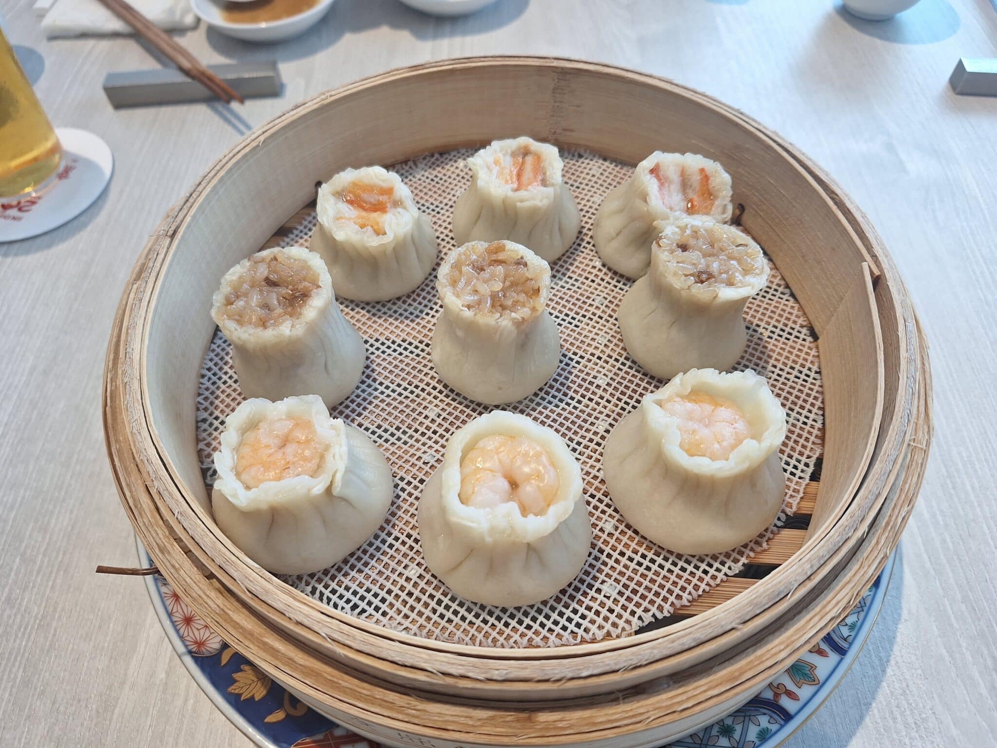 焼売3種盛り 「海老焼売」・「もち米焼売」・「蟹味噌焼売」こちらも針生姜と黒酢で旨い!