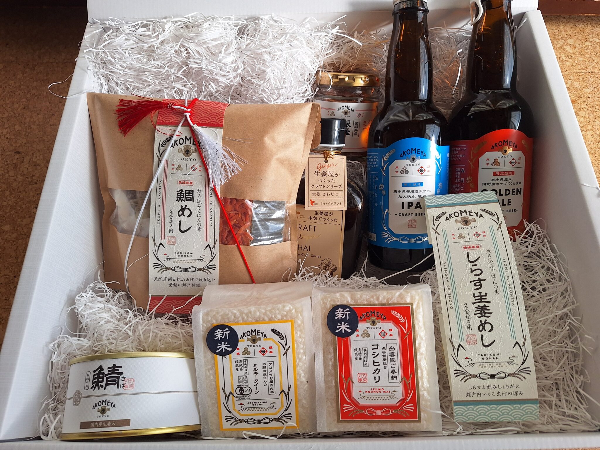しらす生姜めし炊き込みご飯の素(写真撮り忘れ)・鮭のほぐし身・生姜屋が本気でつくった クラフトジンジャーシロップ(豆乳で割って飲む。これは旨かった!)の3点は昨年、妻と二人でいただきました。