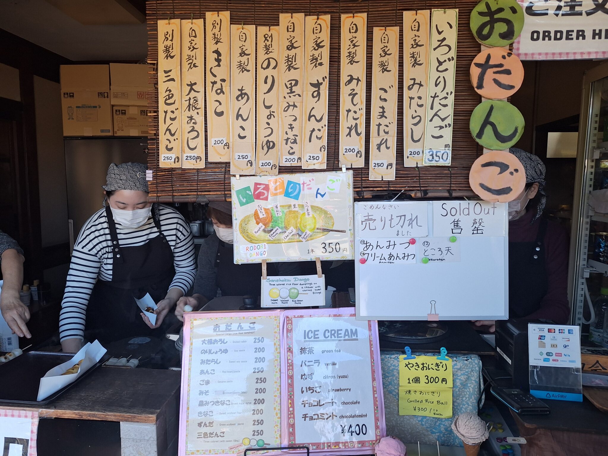 いろどりだんご350円、ごまだれ250円、のりしょうゆ200円(各税込)