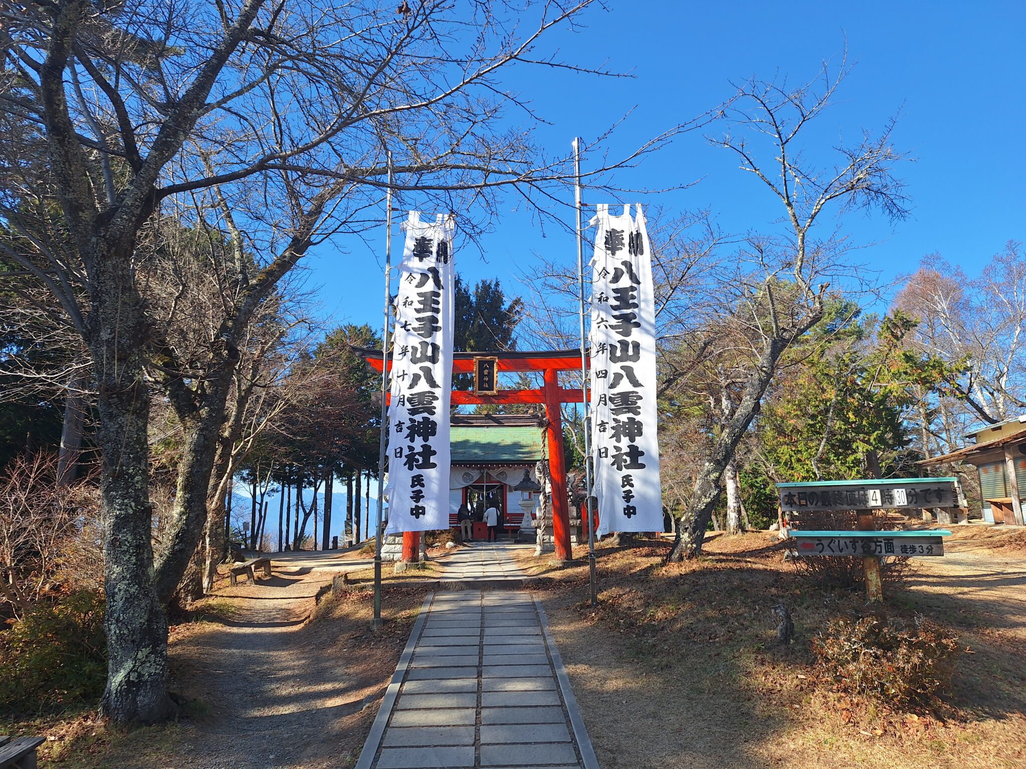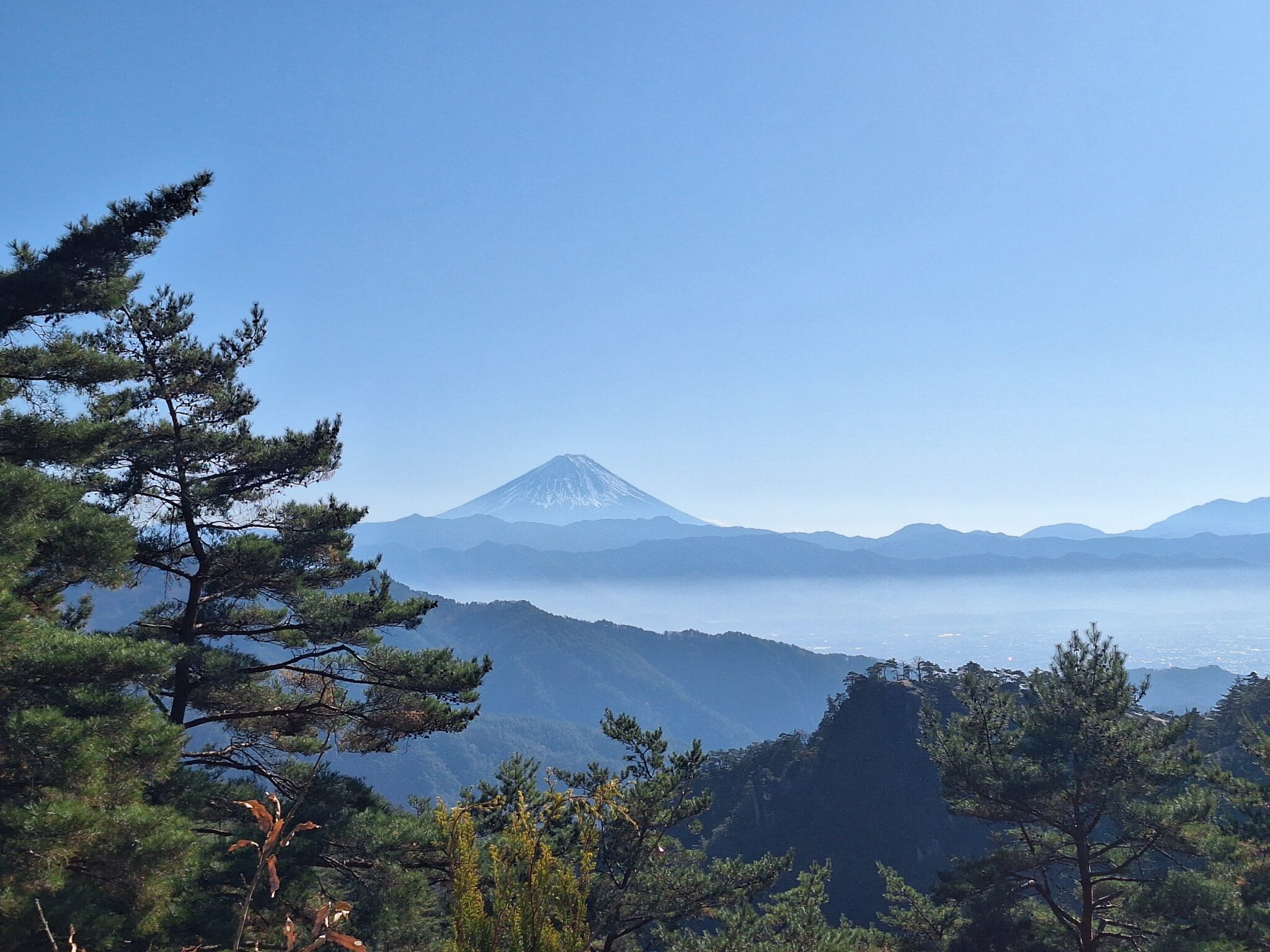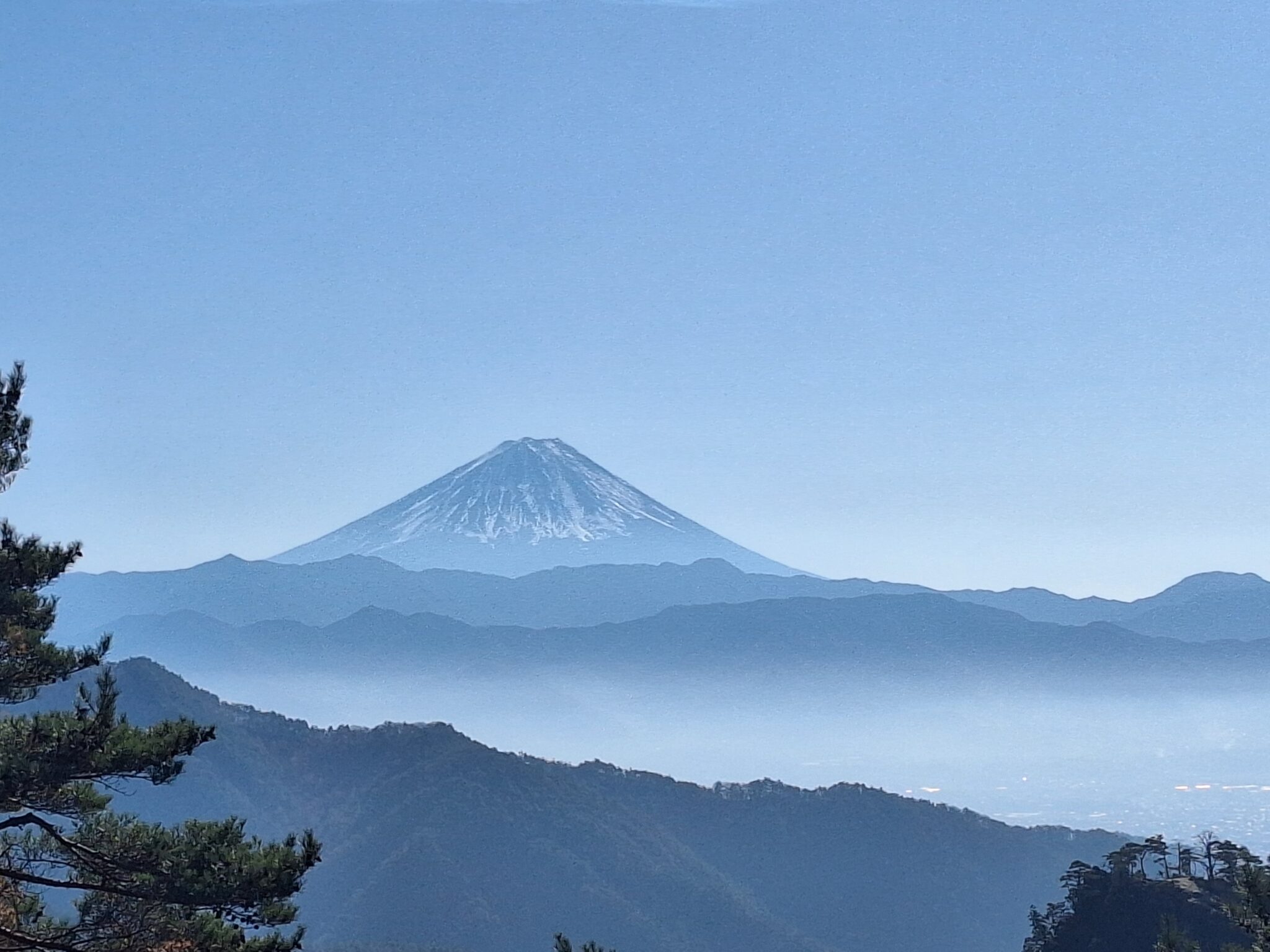 グーグルで「頂上からの眺めがいい」との情報で、武田神社から太良峠へ向かう。途中、道幅狭く(車同士スライドできないほど)路面はガタガタ、小石ジャリジャリ、枯れ枝・枯れ葉いっぱい、「シカ・イノシシに注意」の看板。そしてまだ新しそうな「クマ注意」の看板、我が家の軽自動車では、かなり心許ない感じ。結局頂上付近まで到達するも、展望台や見晴台が見つからず、悪道を登って降りただけだった。(下り路は問題ありませんでした)それでも最後に富士山が見えたから、まあいいか!