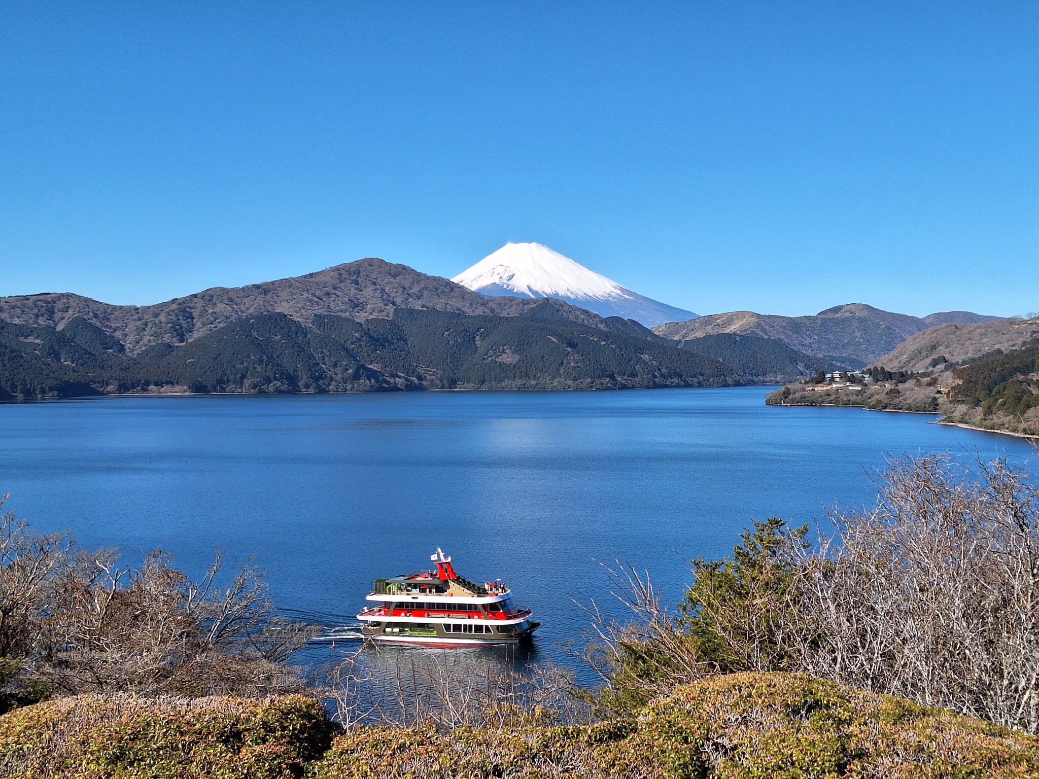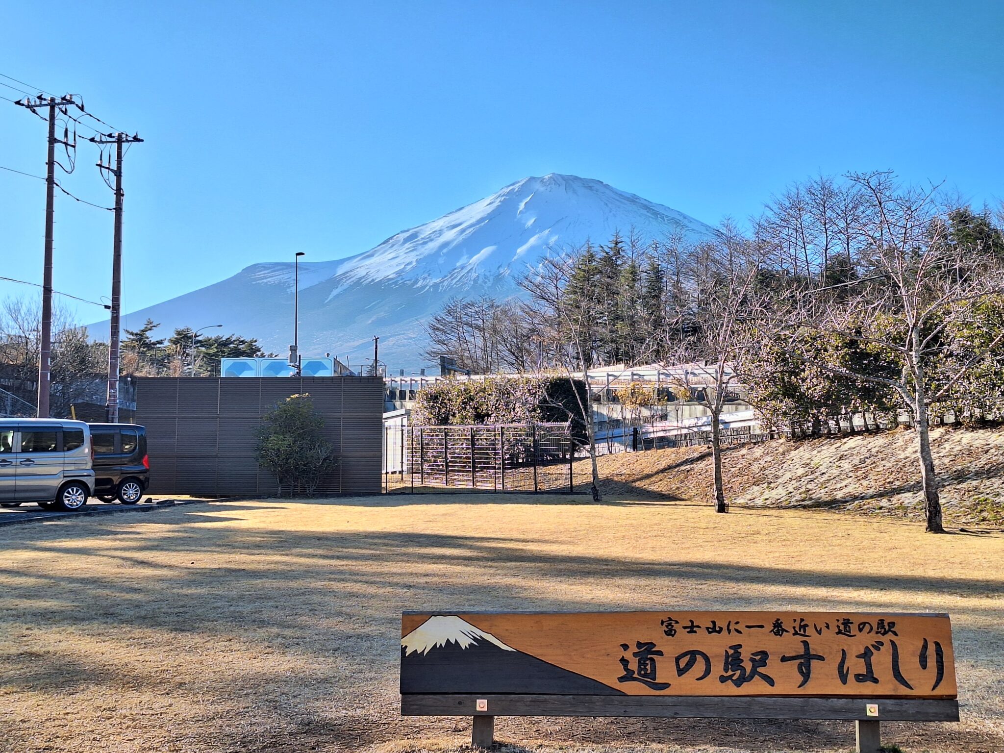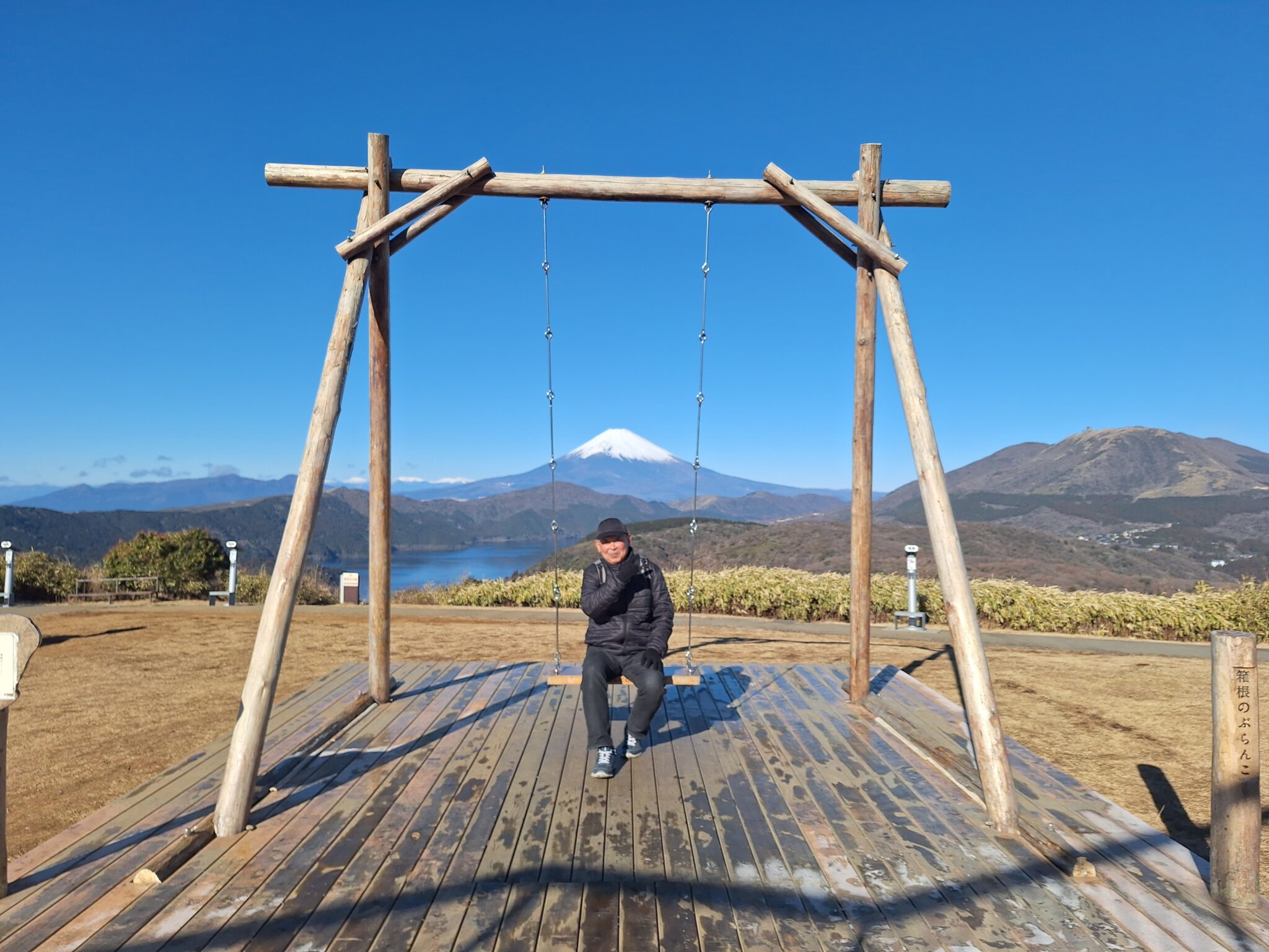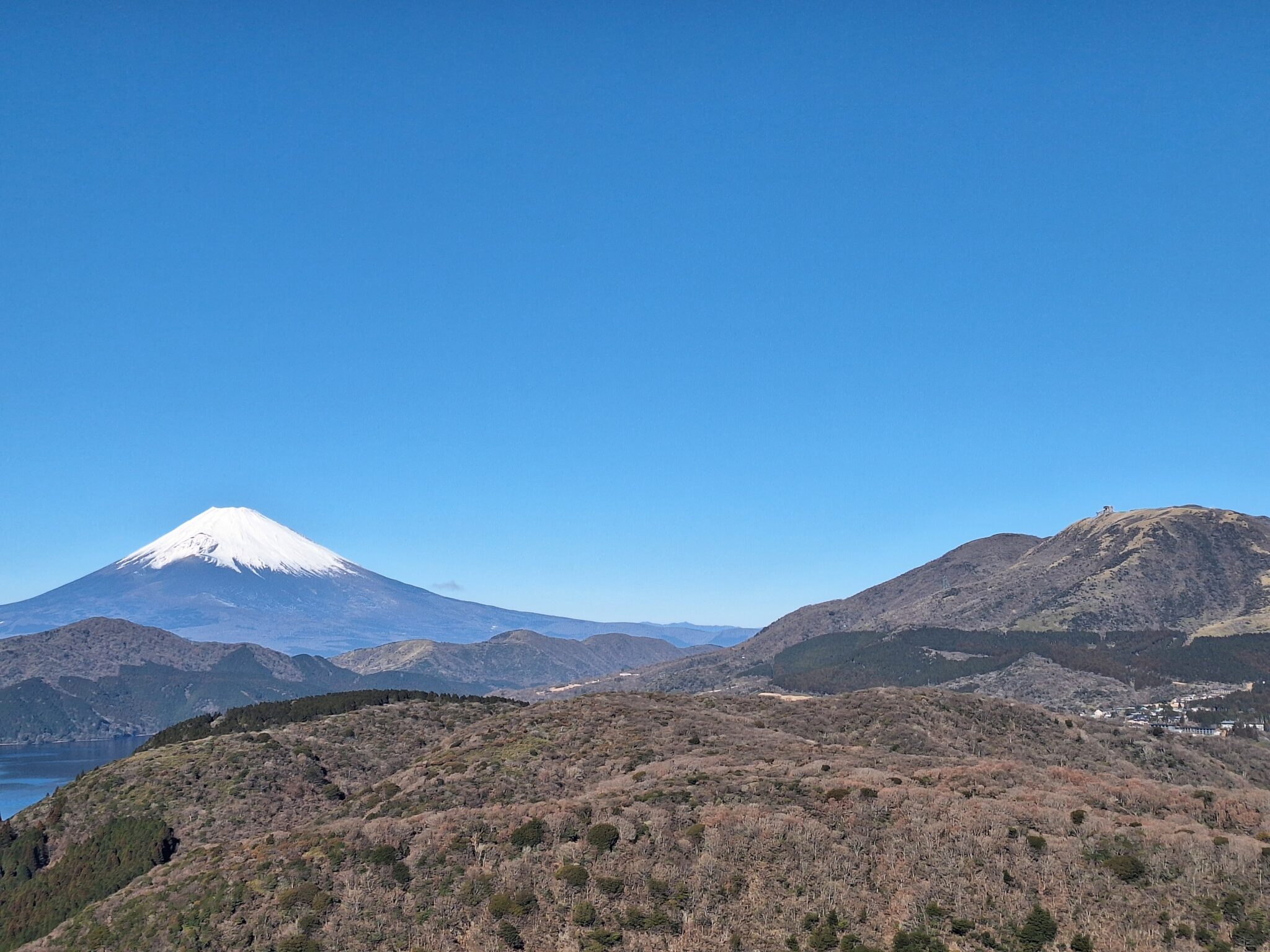 下記写真↓ 駒ヶ岳ロープウェーの駅舎が見える。元旦に訪れた時は雲が多くギリギリで富士山が見えたけど、本日は最高のコンディション。