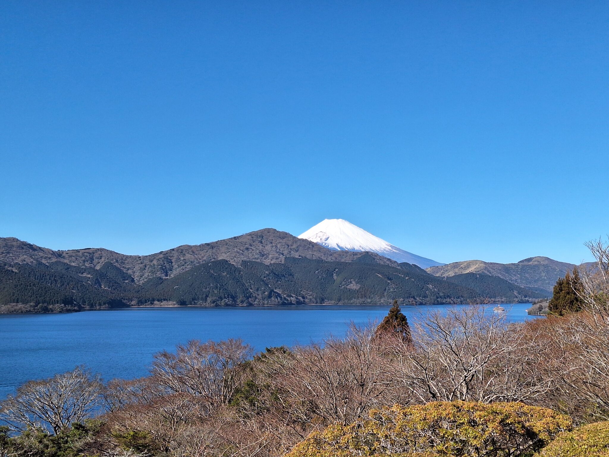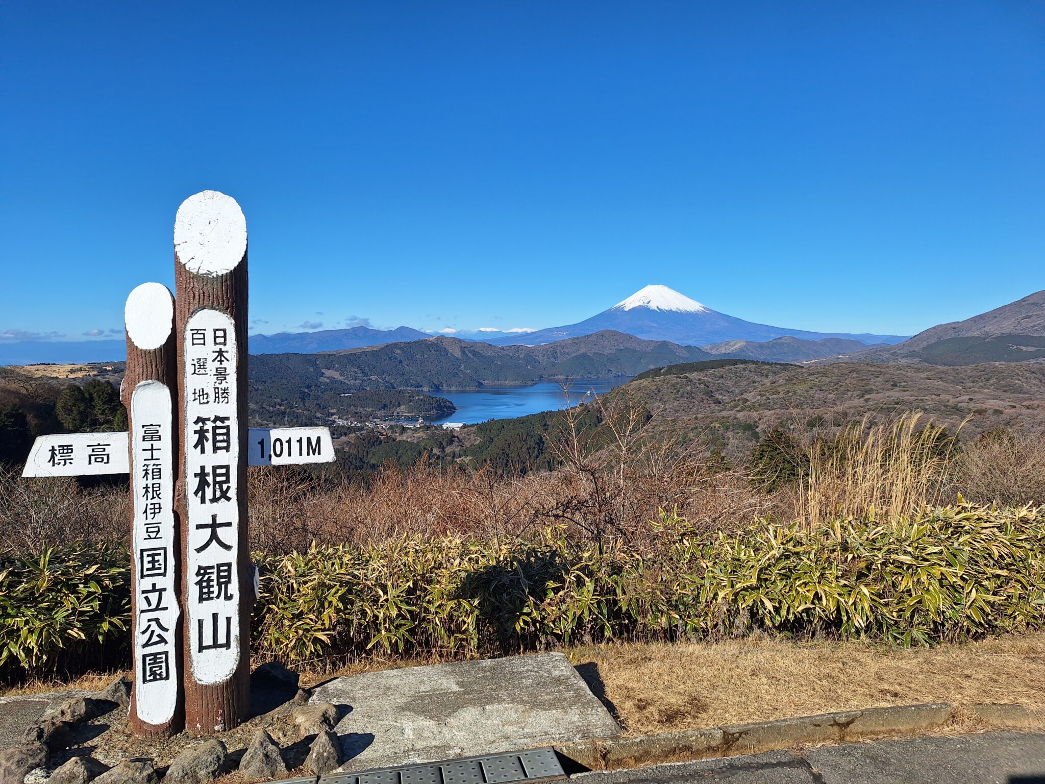 前日は強風、本日は朝から晴れるとの予報で朝から富士山ビュースポットめぐりへ。西湘バイパスからアネスト岩田ターンパイク箱根(通行料900円)で大観山展望台へ。雲一つない最高のコンディションでした。