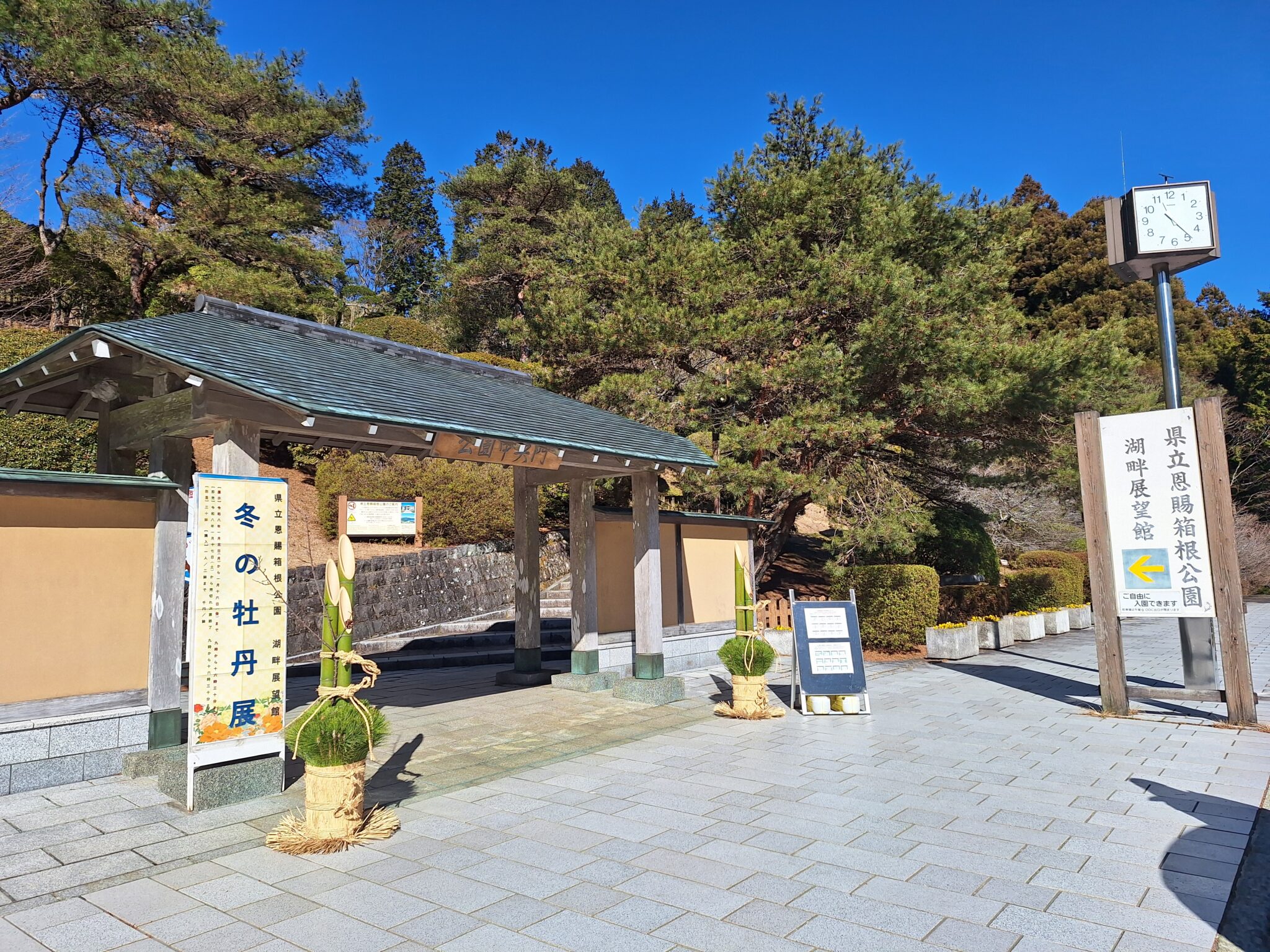恩賜箱根公園へ移動。2022年10月ぶらぶら歩く旧東海道で立ち寄った時は湖畔展望館が改修中でした。