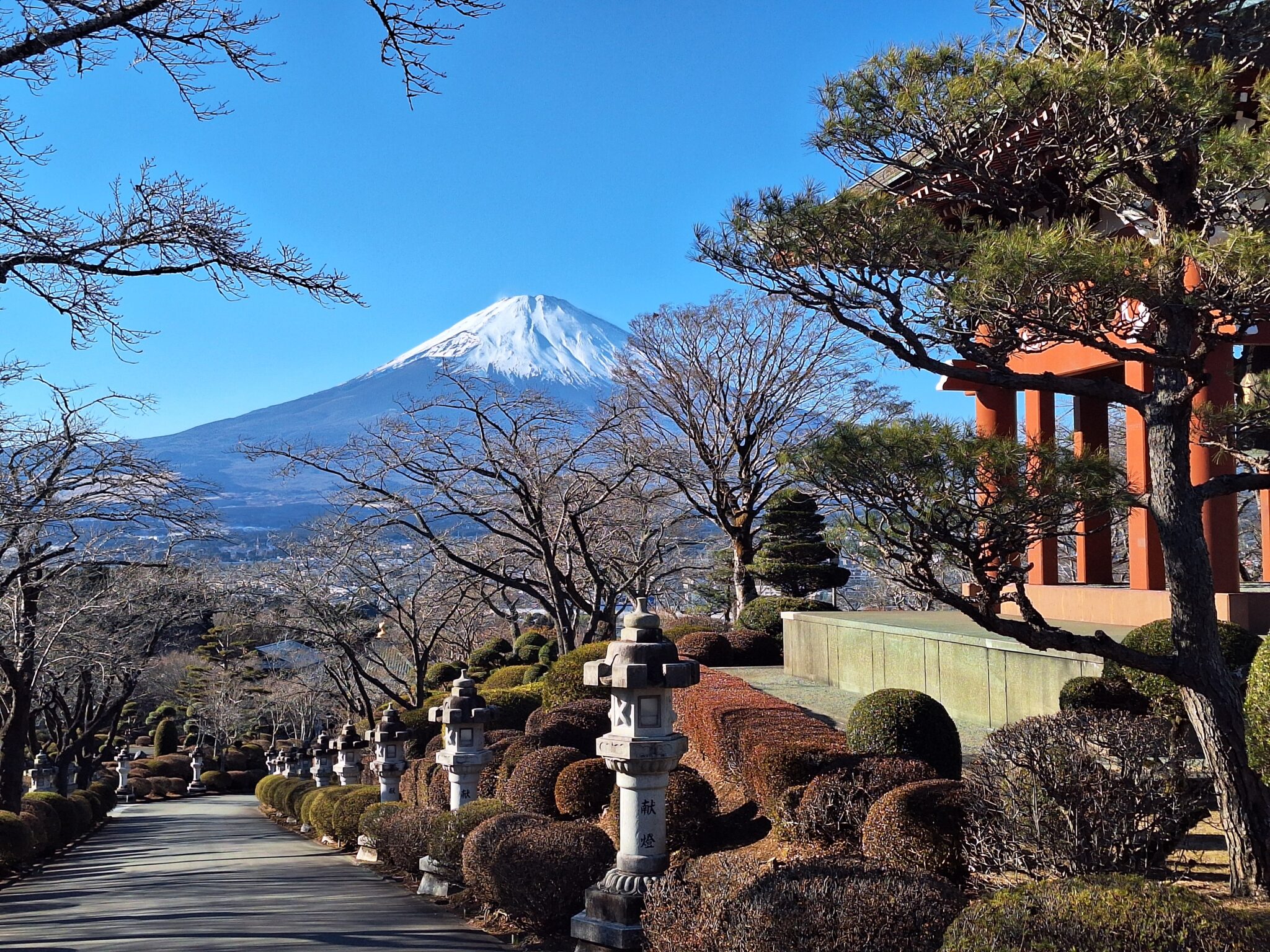 富士仏舎利塔平和公園へ移動。雲一つないコンディションで富士山を見ることが出来ました!