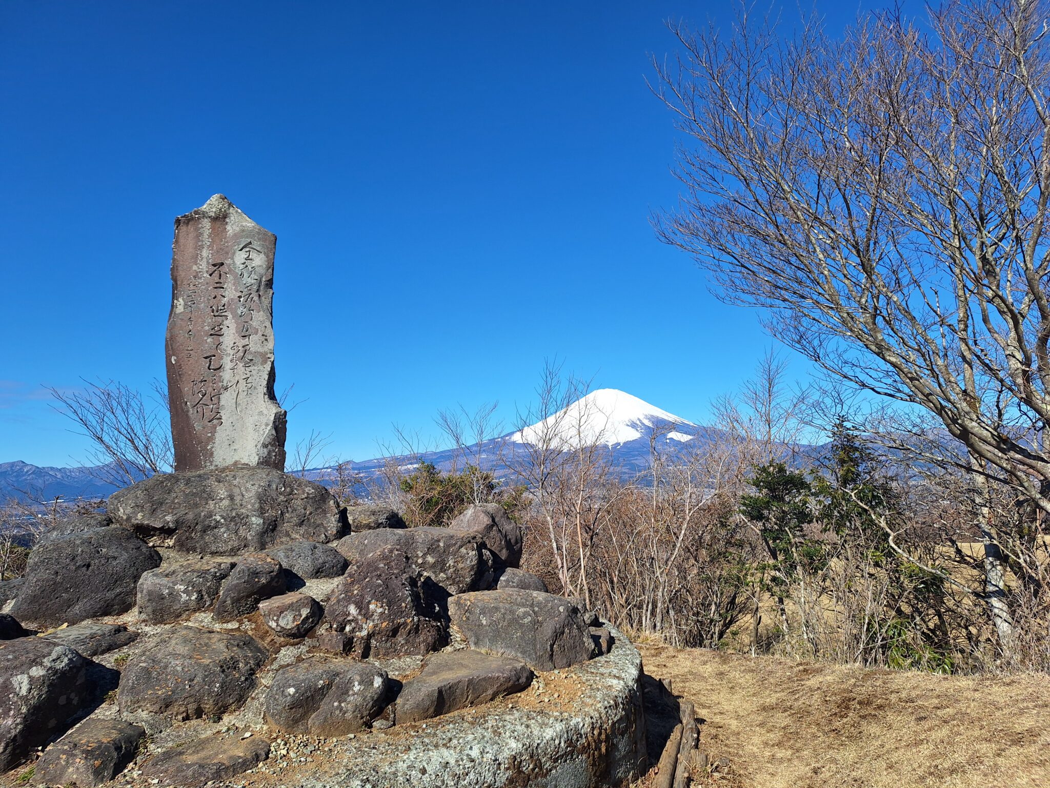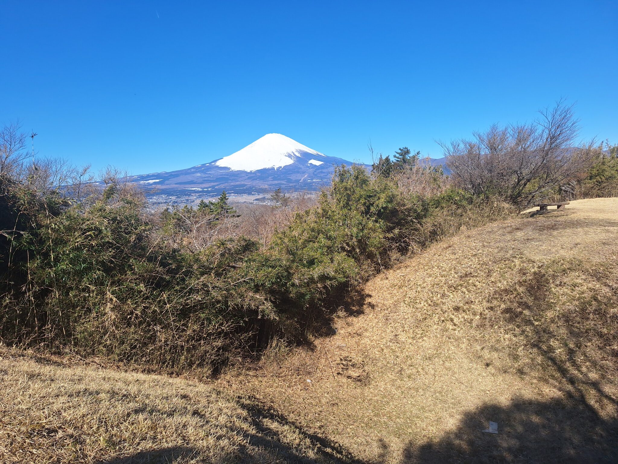 最近、富士山を眺めることにハマっている。この日は足柄城址公園へやって来た。道路を挟んだ手前に無料の駐車場(6台分くらい)あり。階段を登ると広場になっていて超絶景。富士山が一望!