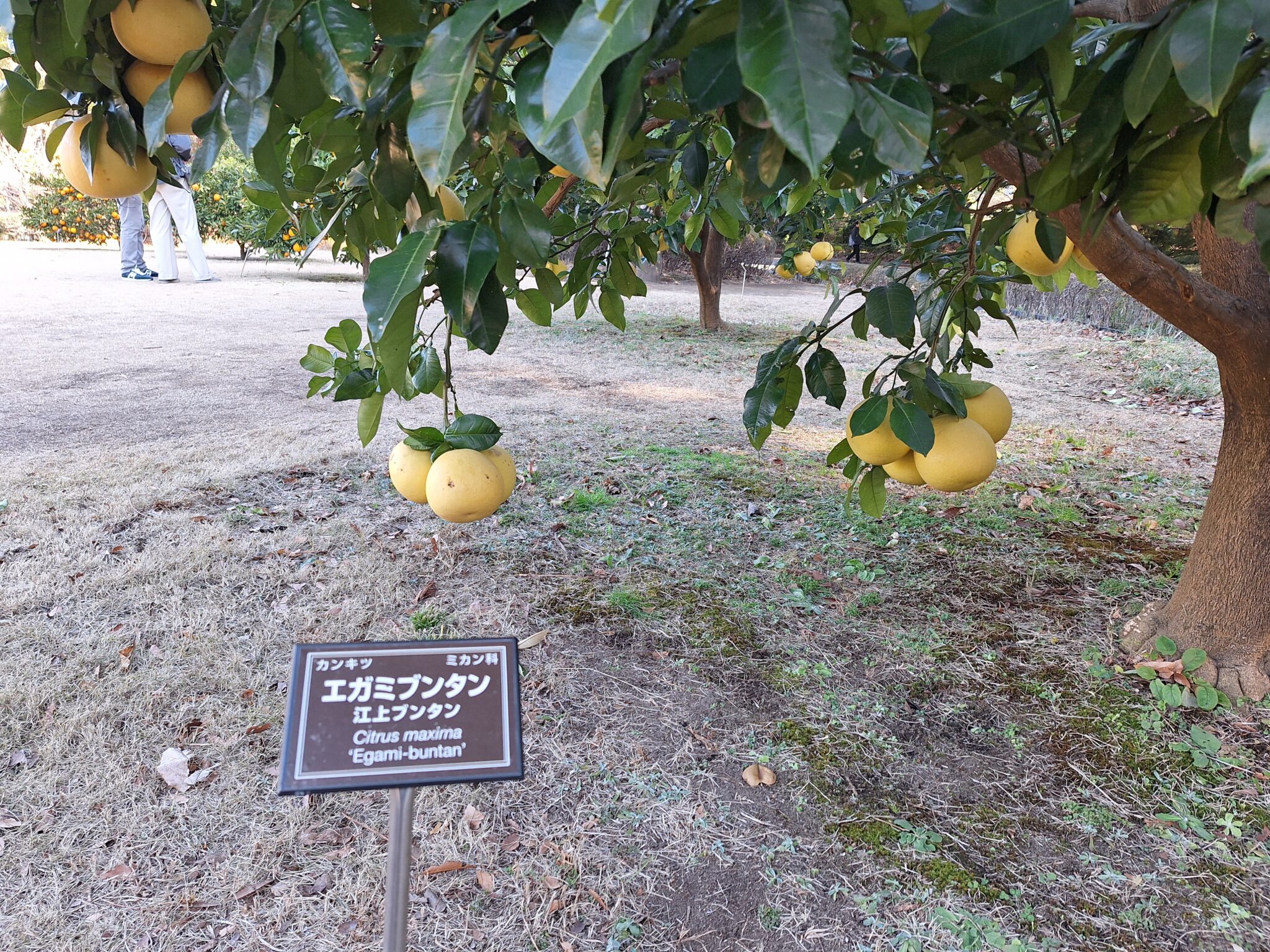 本丸大芝生に生っていたブンタン、食えるのかな?