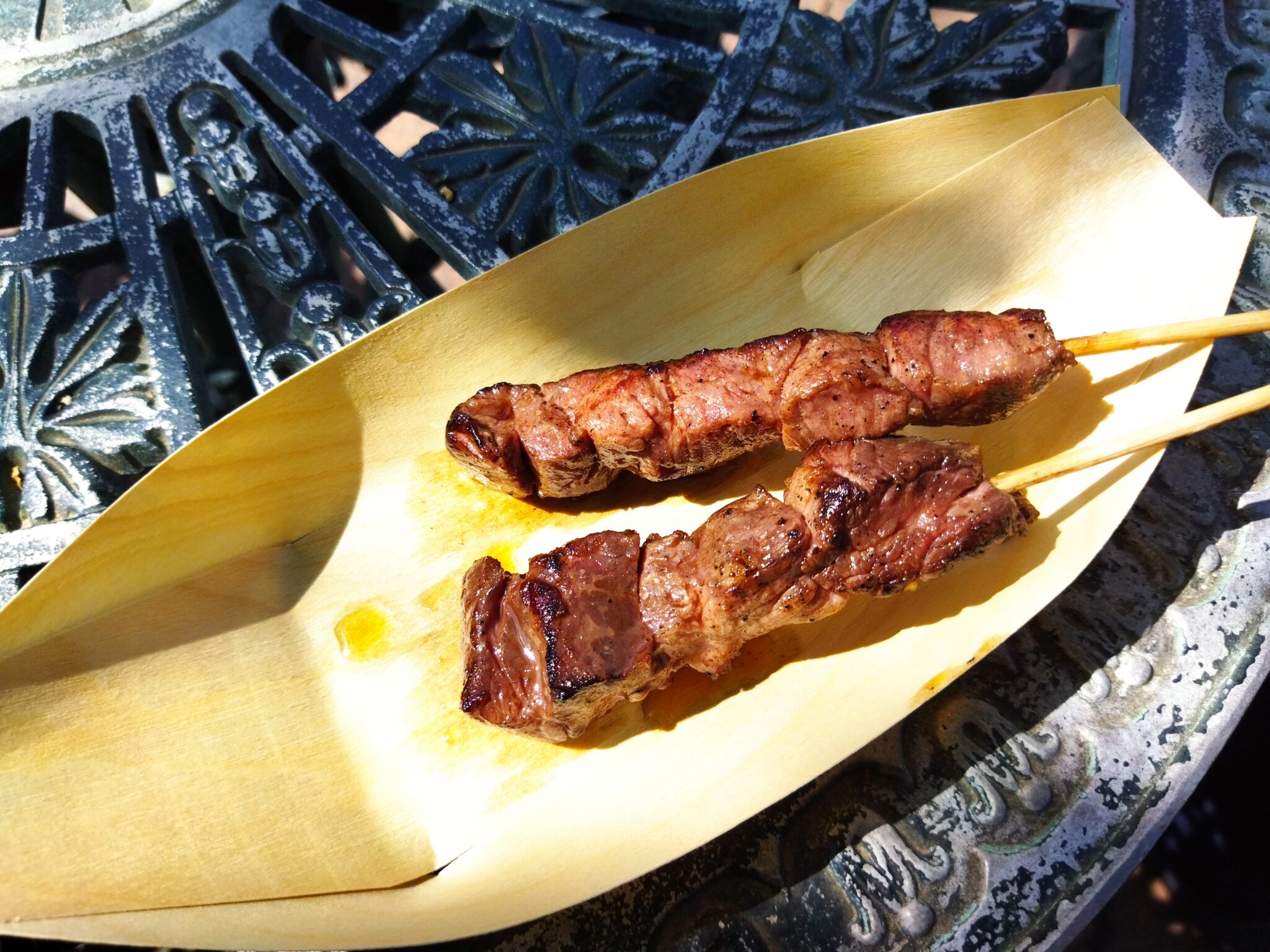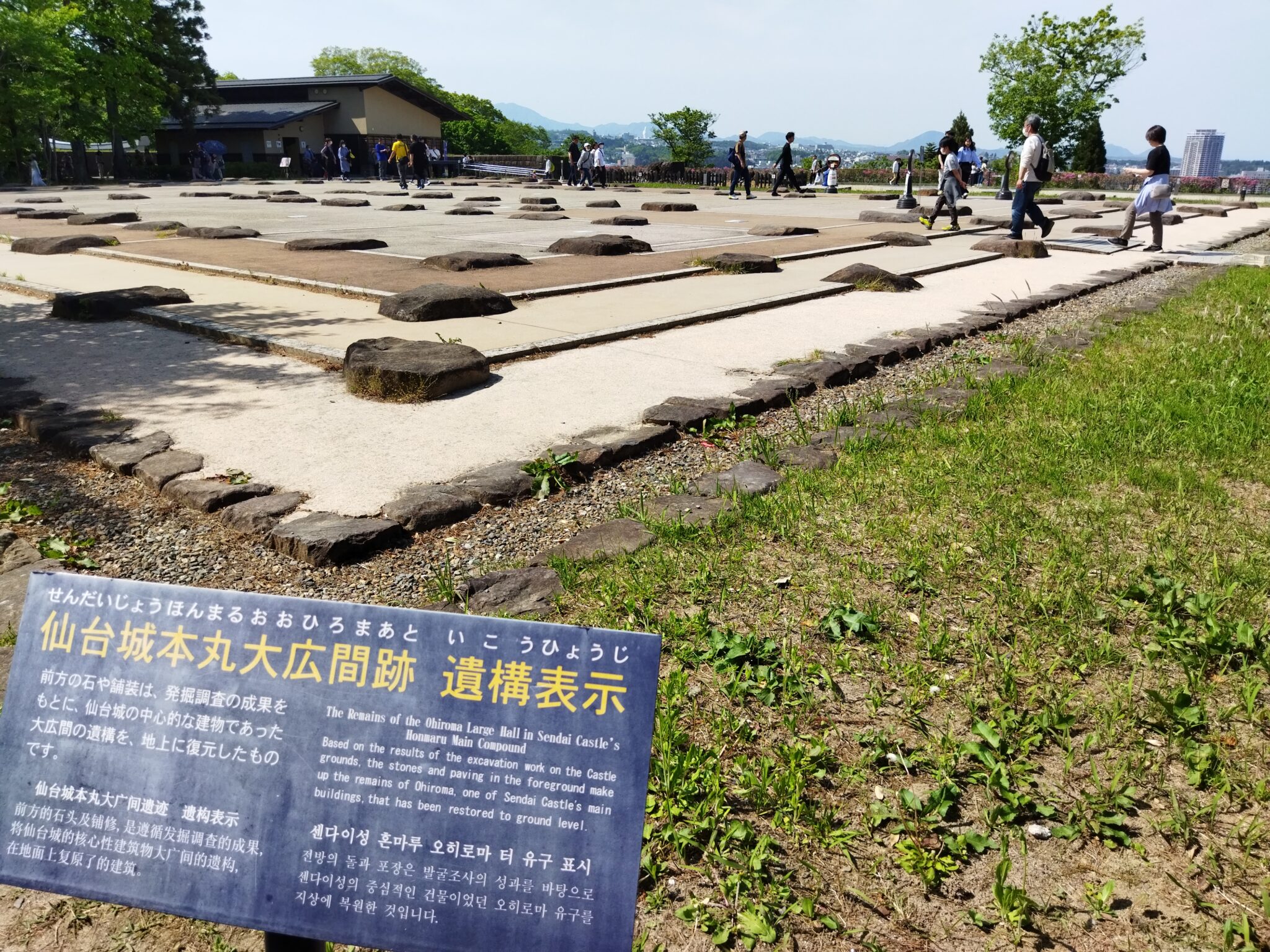 仙台城跡へ。GWでもの凄い人出、牛タンやステーキを提供するレストランは、まだ13時だというのに食材売切れで閉店。フードコートも、もの凄い行列。仕方ないので串団子5本セットと牛串焼きA5ランクで昼食代わりに。牛串焼きは小さかったけどうまうまでした。