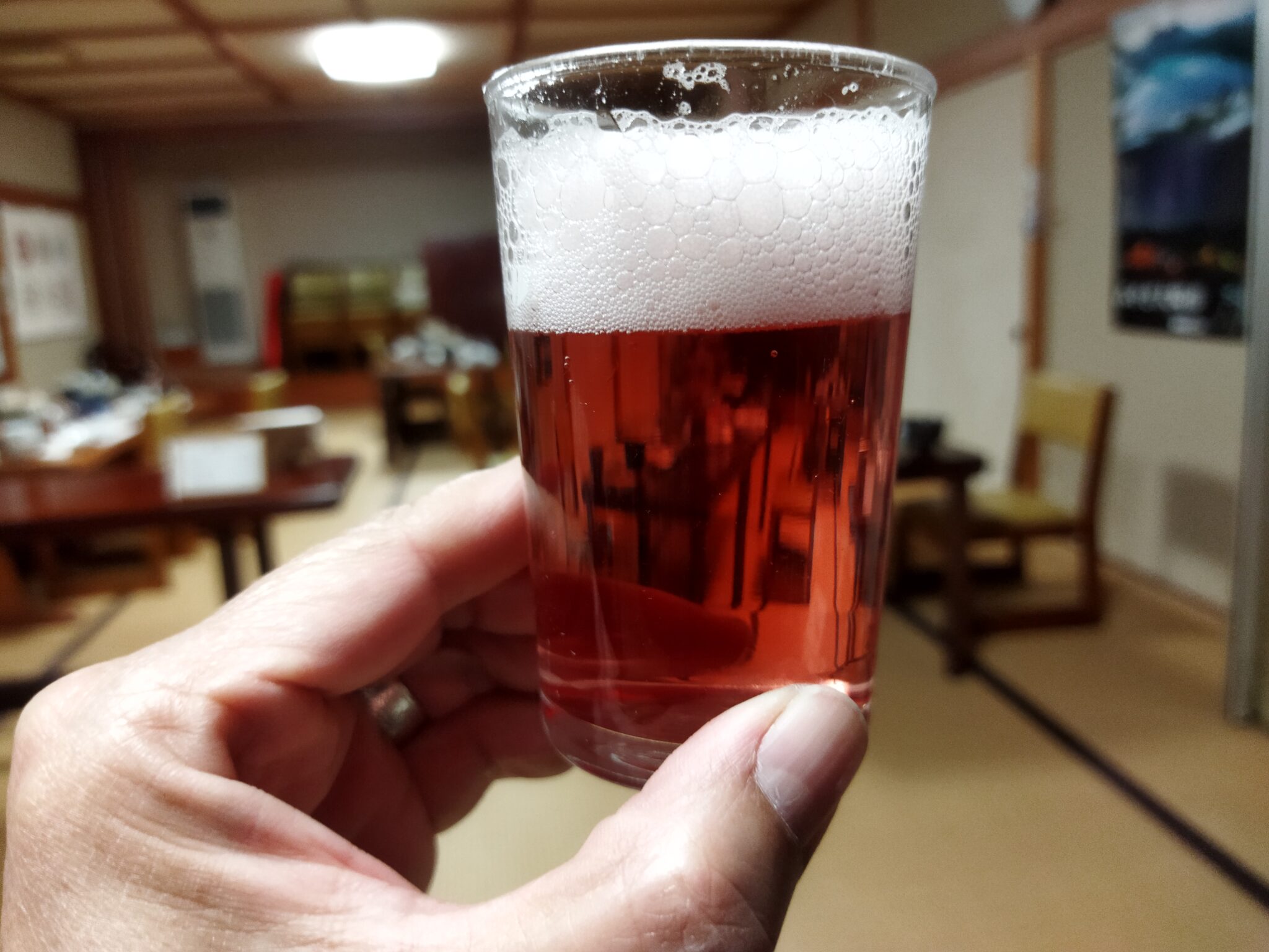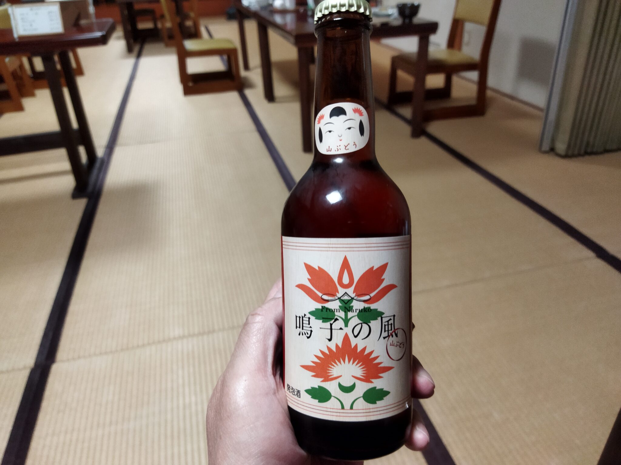 地ビール「鳴子の風」山ぶどう果汁が入っている。ワイン色でフルーティーうまうまでした!