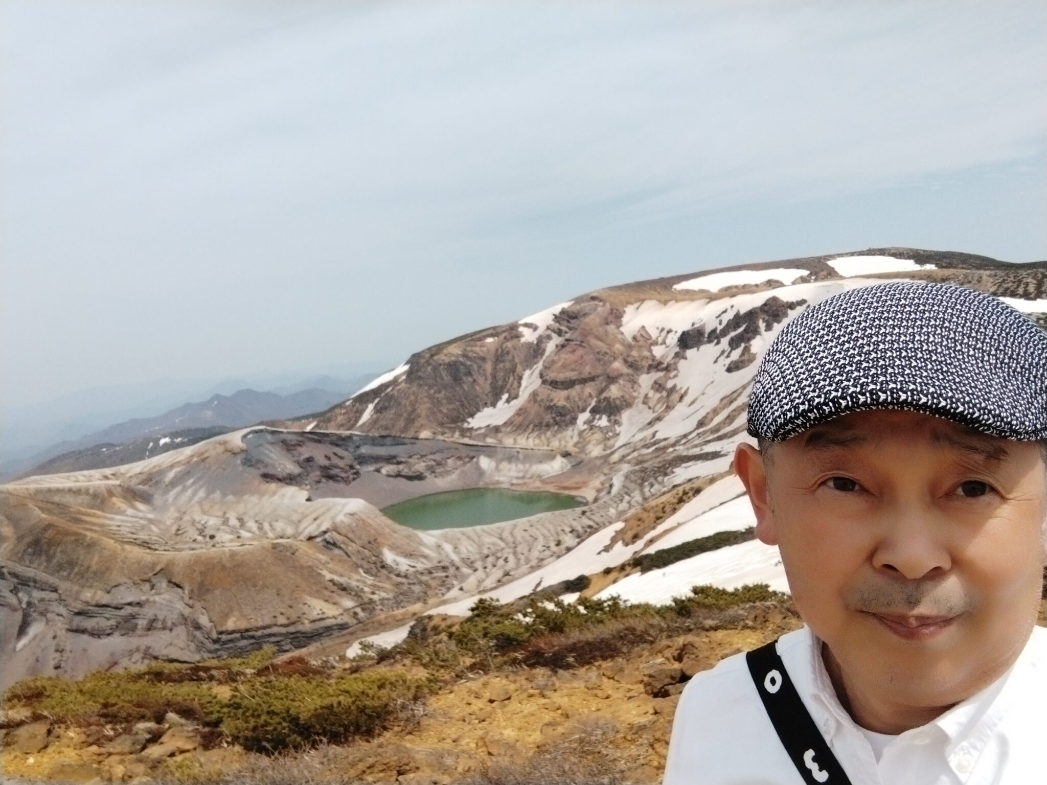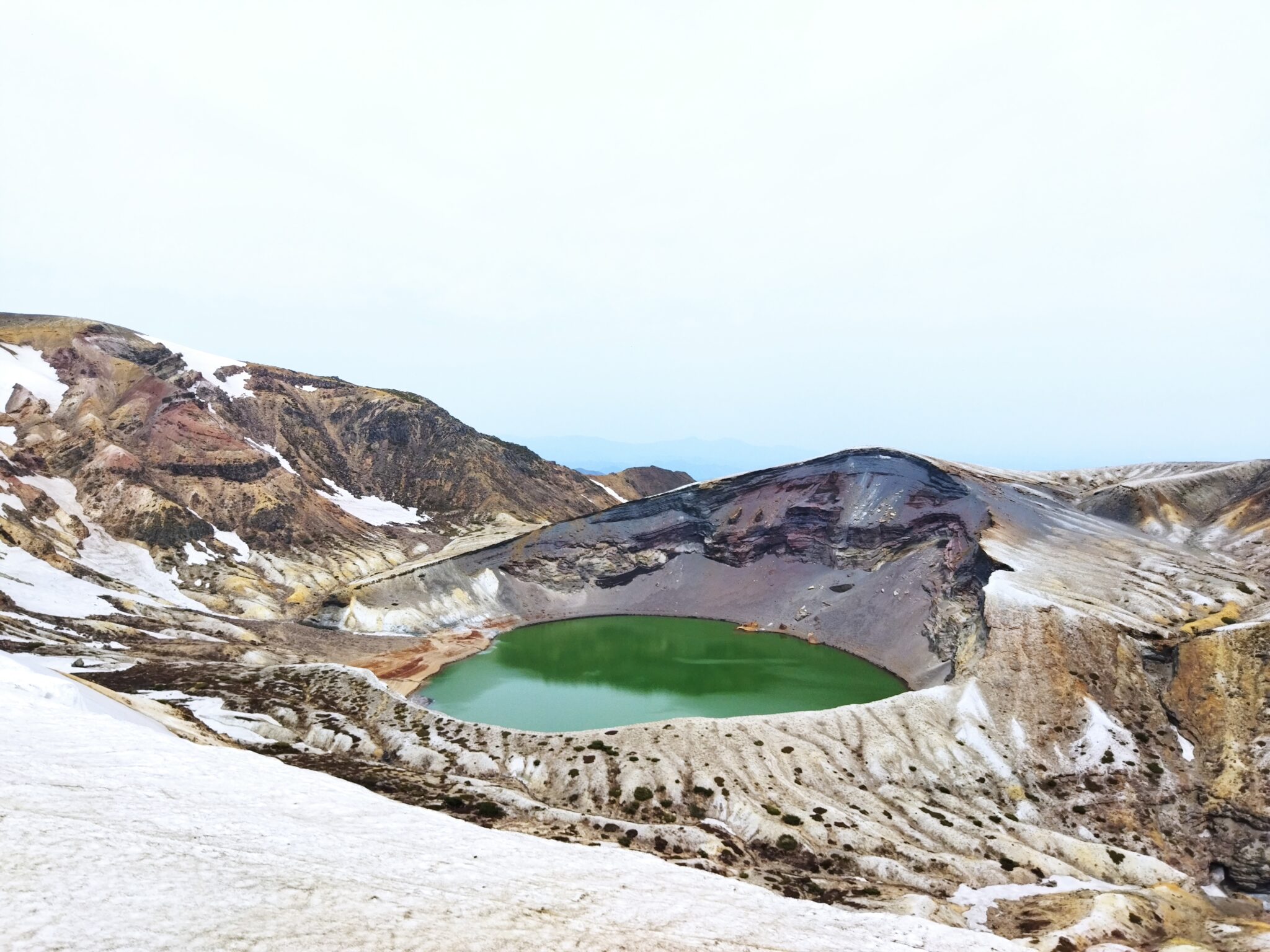 刈田嶺神社(かったみねじんじゃ)より御釜を望む。