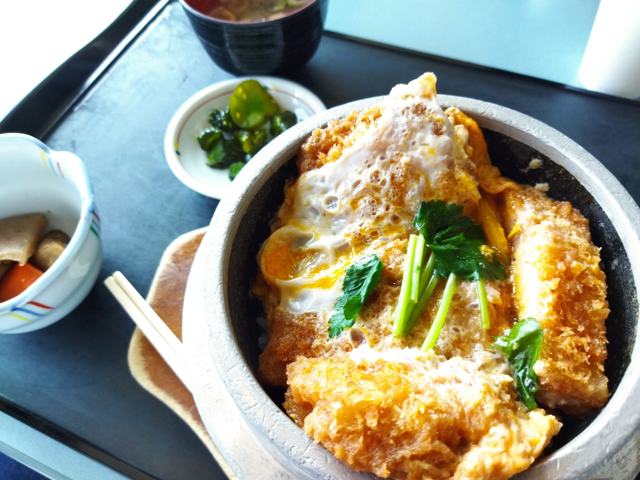 蔵王山頂レストランで「釜カツ丼」セット。カツが分厚くてうまうま。
