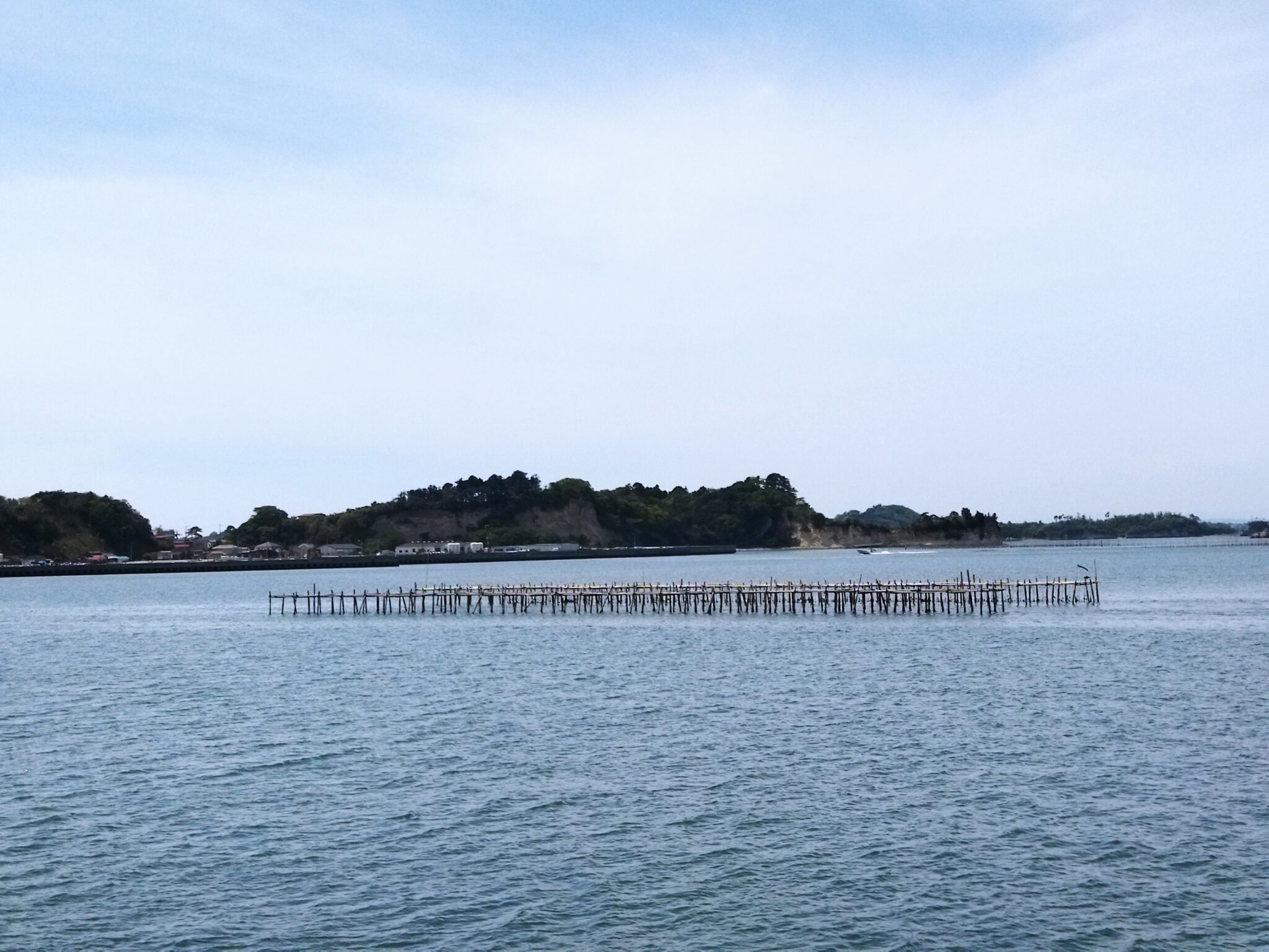 木の柵は牡蠣棚。ランチは俺の大好物、牡蠣にしよう!