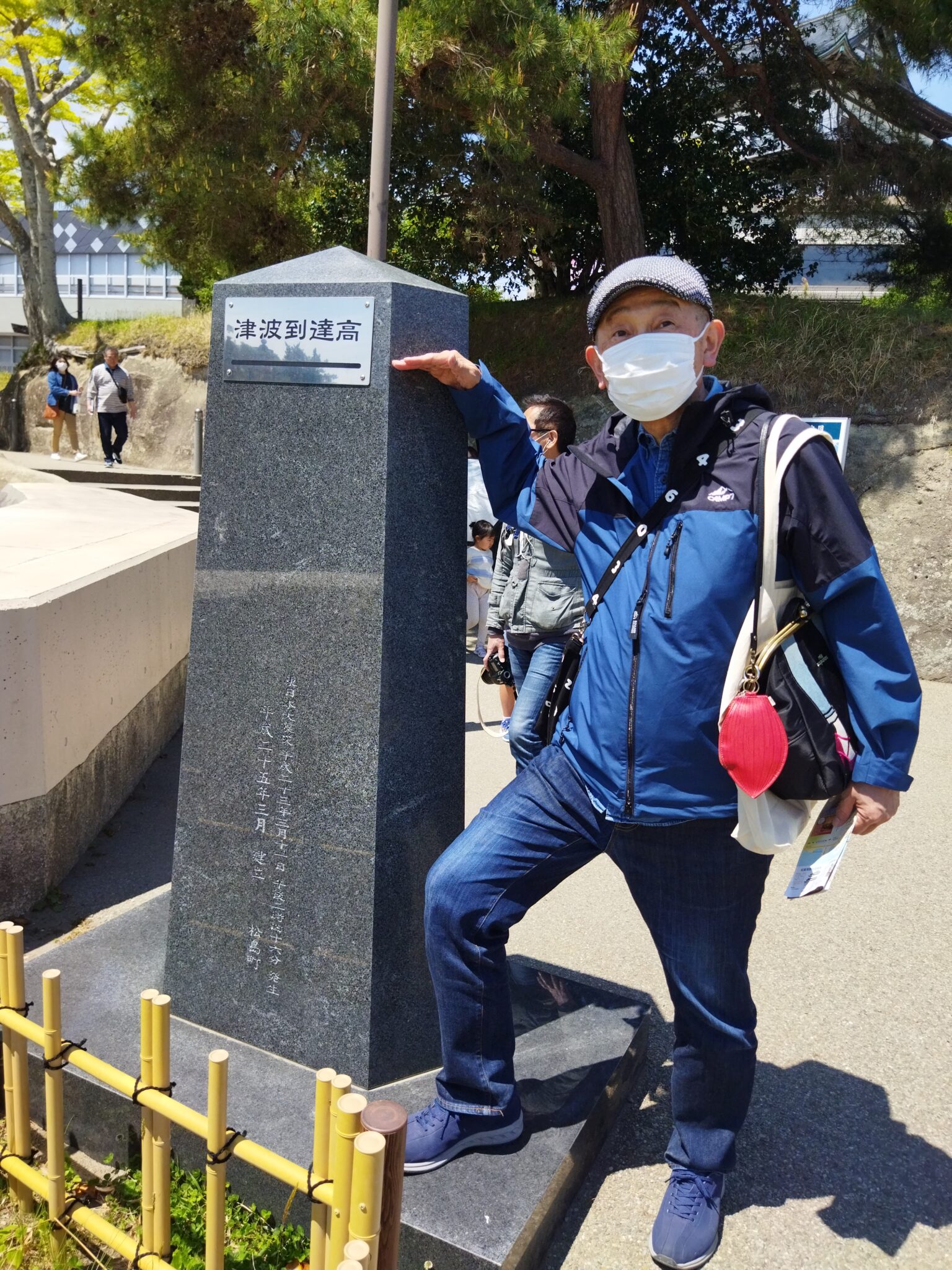 東日本大震災慰霊記念碑がありました。裏側に津波到達高が記されていました。