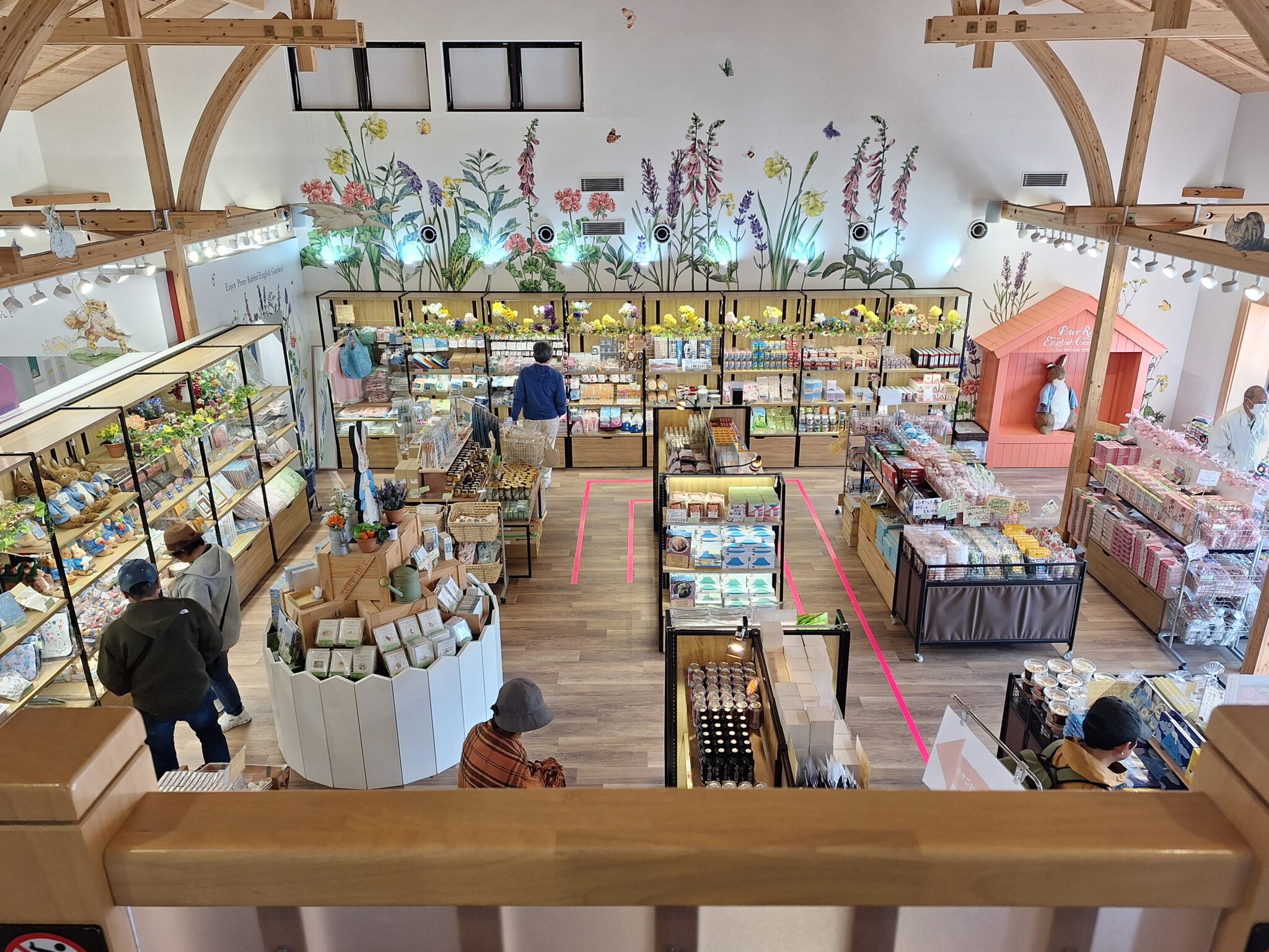 ピーターラビットの展望塔?なんか不思議に思っていたら、階段を降りていくとピーターラビットのショップに誘導される。商売上手!