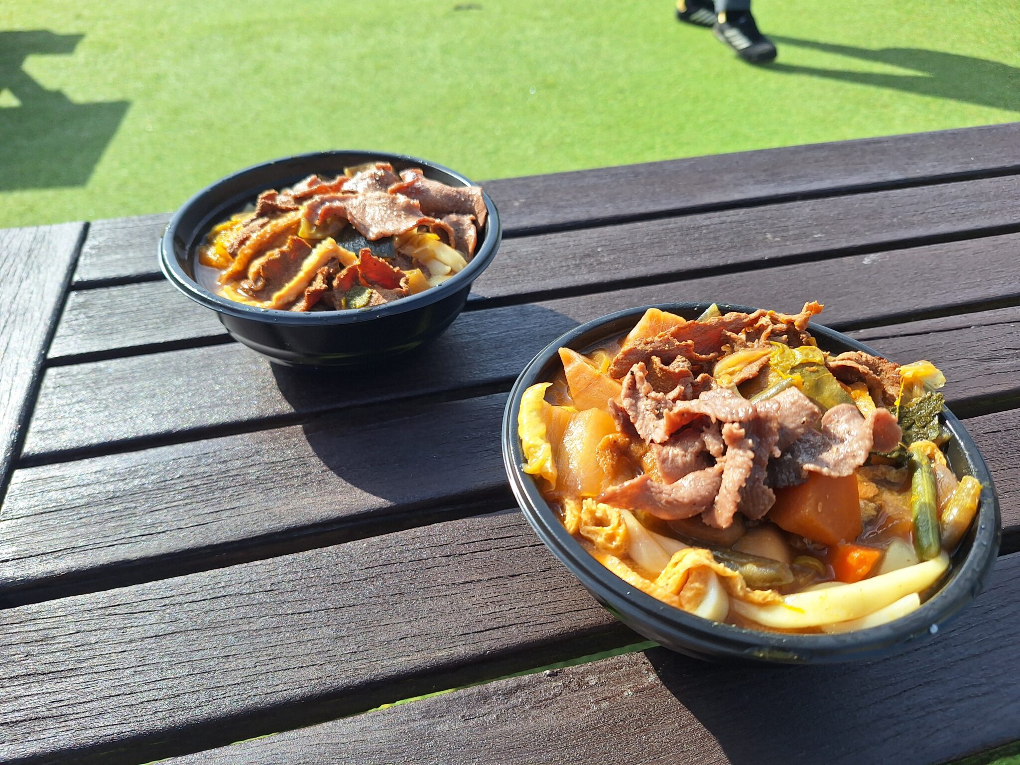 8時過ぎ、天気予報は「本日晴れて暑くなる」少し薄着で来たのでかなり寒い。やはり富士山のお膝元、朝はまだ寒いので行かれる時にはご注意を。朝メシは温かいほうとう。