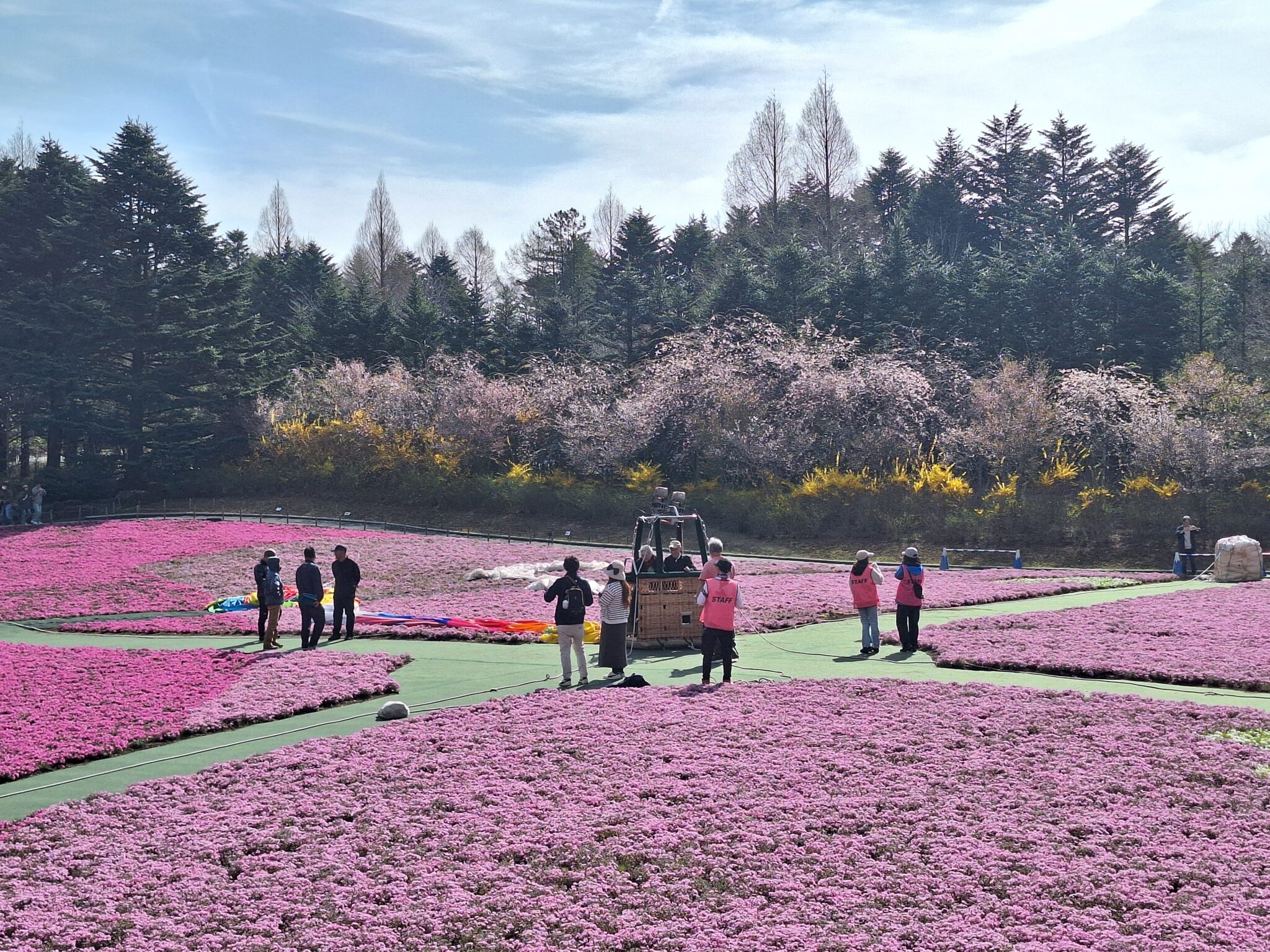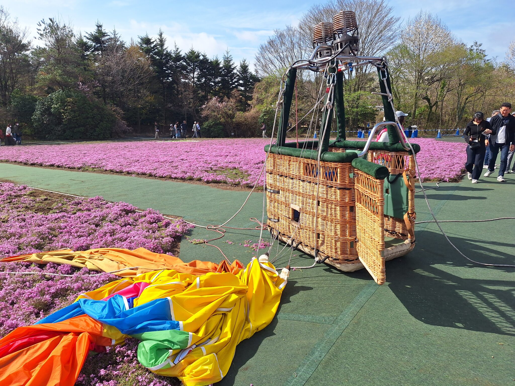 またまた富士山見物!「富士芝桜まつり」へ。この日は「絶景 気球体験」が出来る初日ということで朝イチでやって来たが「本日強風のため気球体験中止」残念。