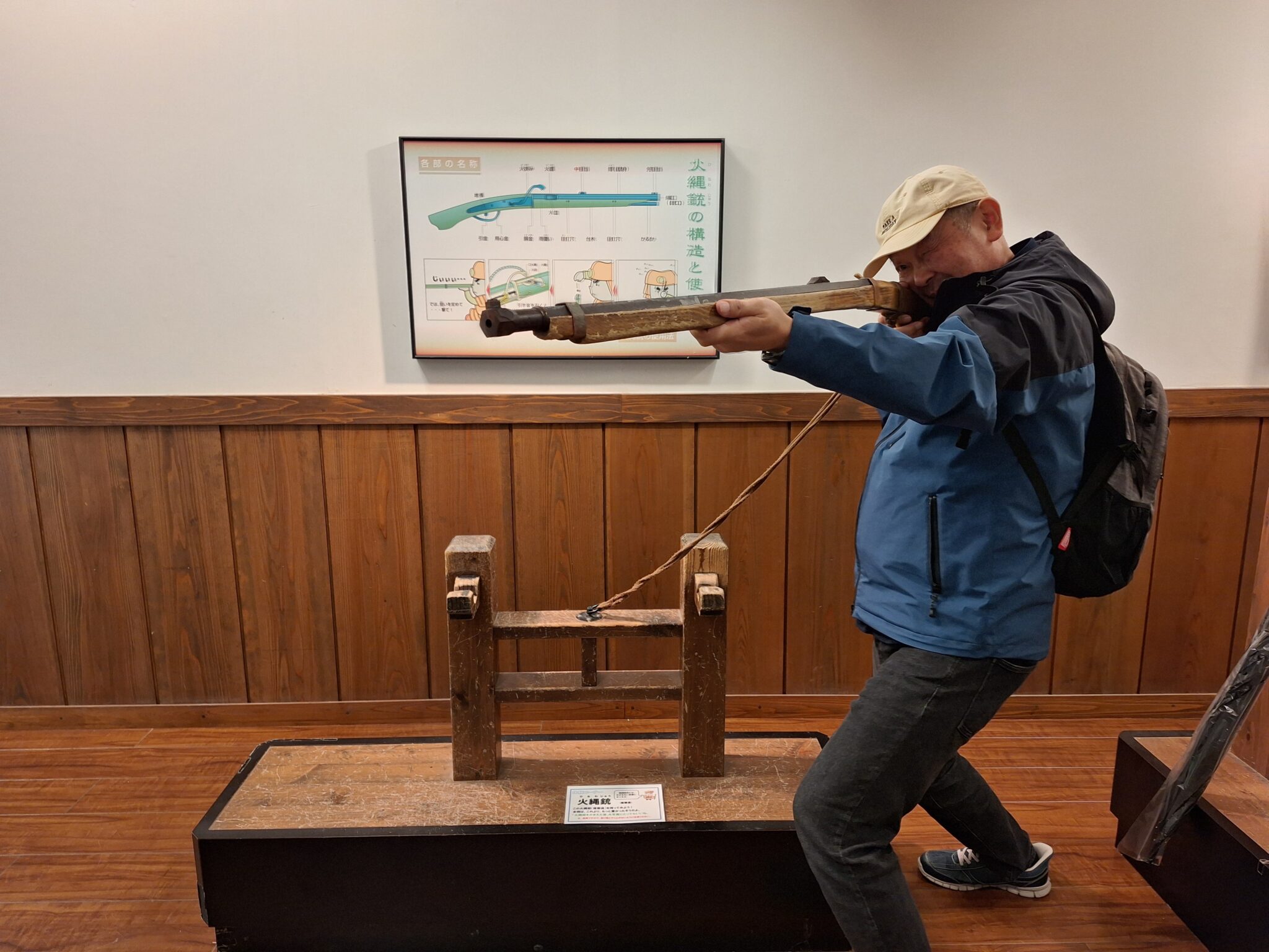 天守内の資料館 火縄銃を持ってみようコーナーにて。