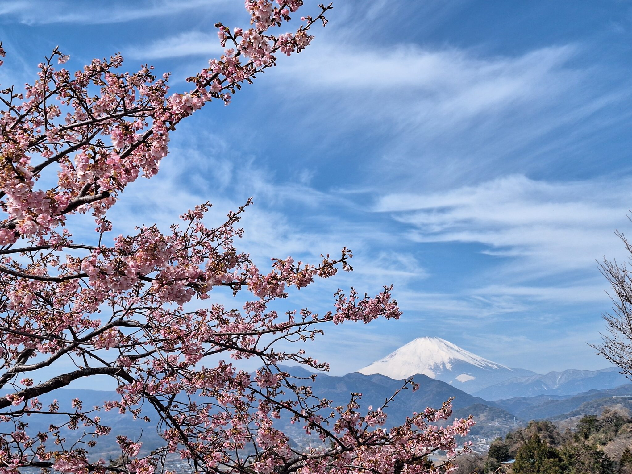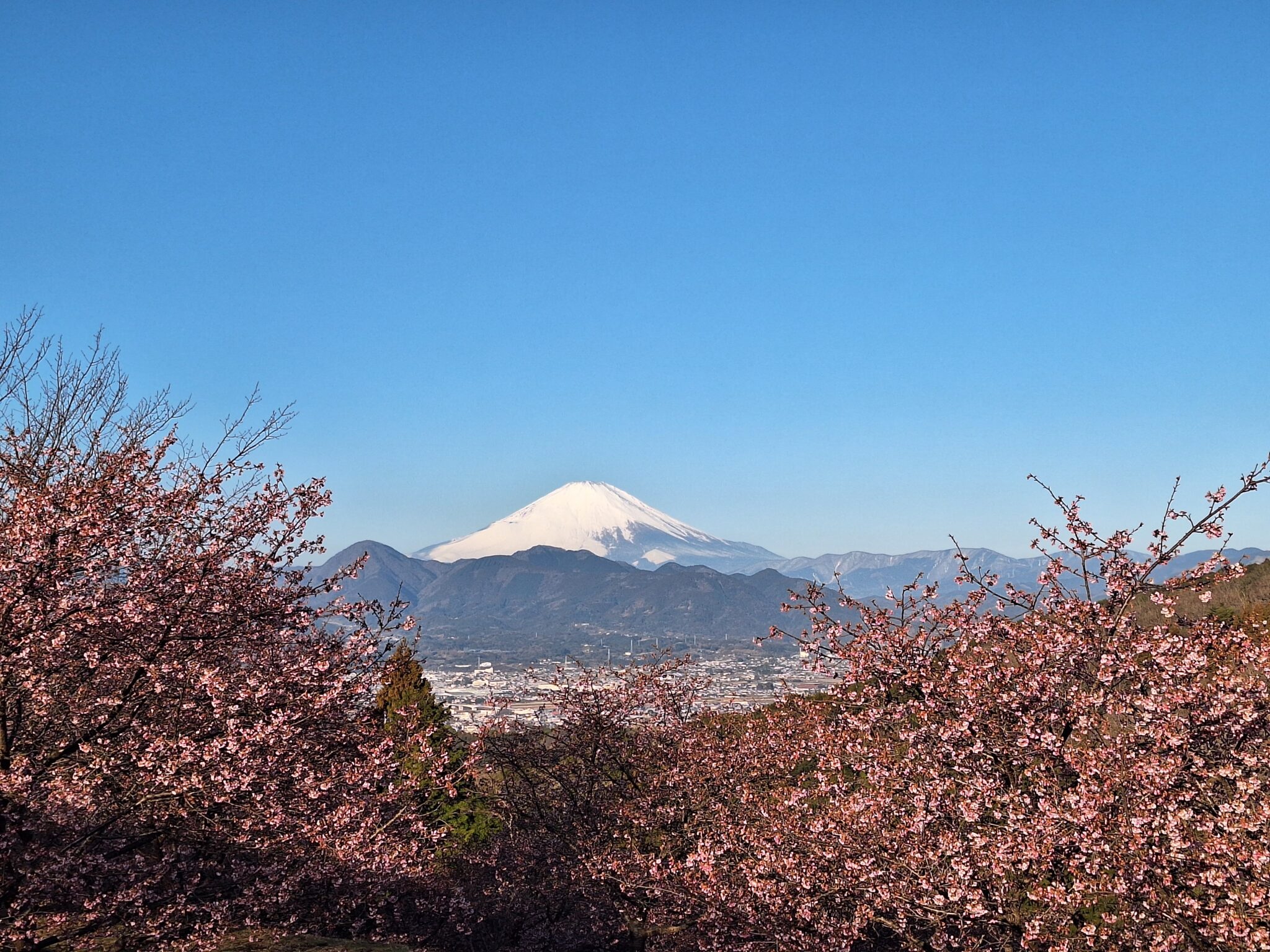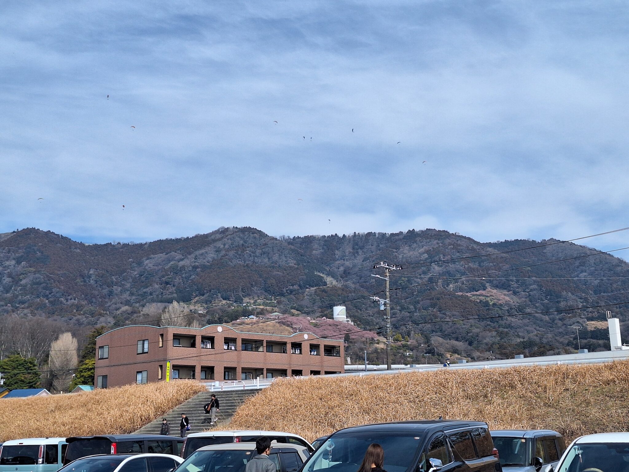 河津桜と富士山のコラボ見物へ。1カ所目はおおいゆめの里、かなりいい感じで河津桜が咲いて富士山とのコラボ写真が撮れました。グーグルのクチコミによると、里山花まつり期間中は隣接する野球場が臨時駐車場となります。土日祝日は有料で8時半から駐車料金が徴収されるそうです。