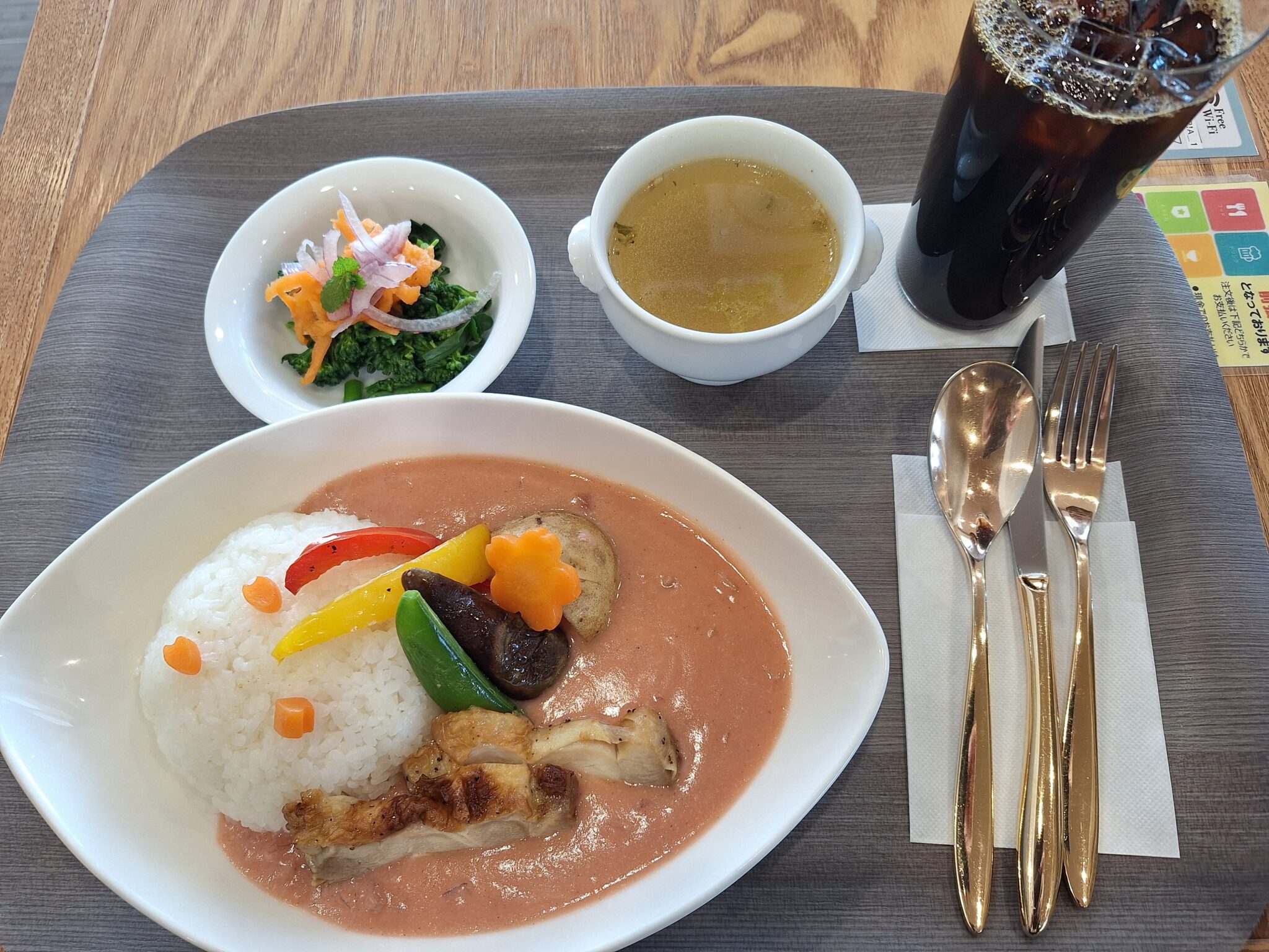 さくら色(ピンク)のカレーだけど案外辛い。うまい!