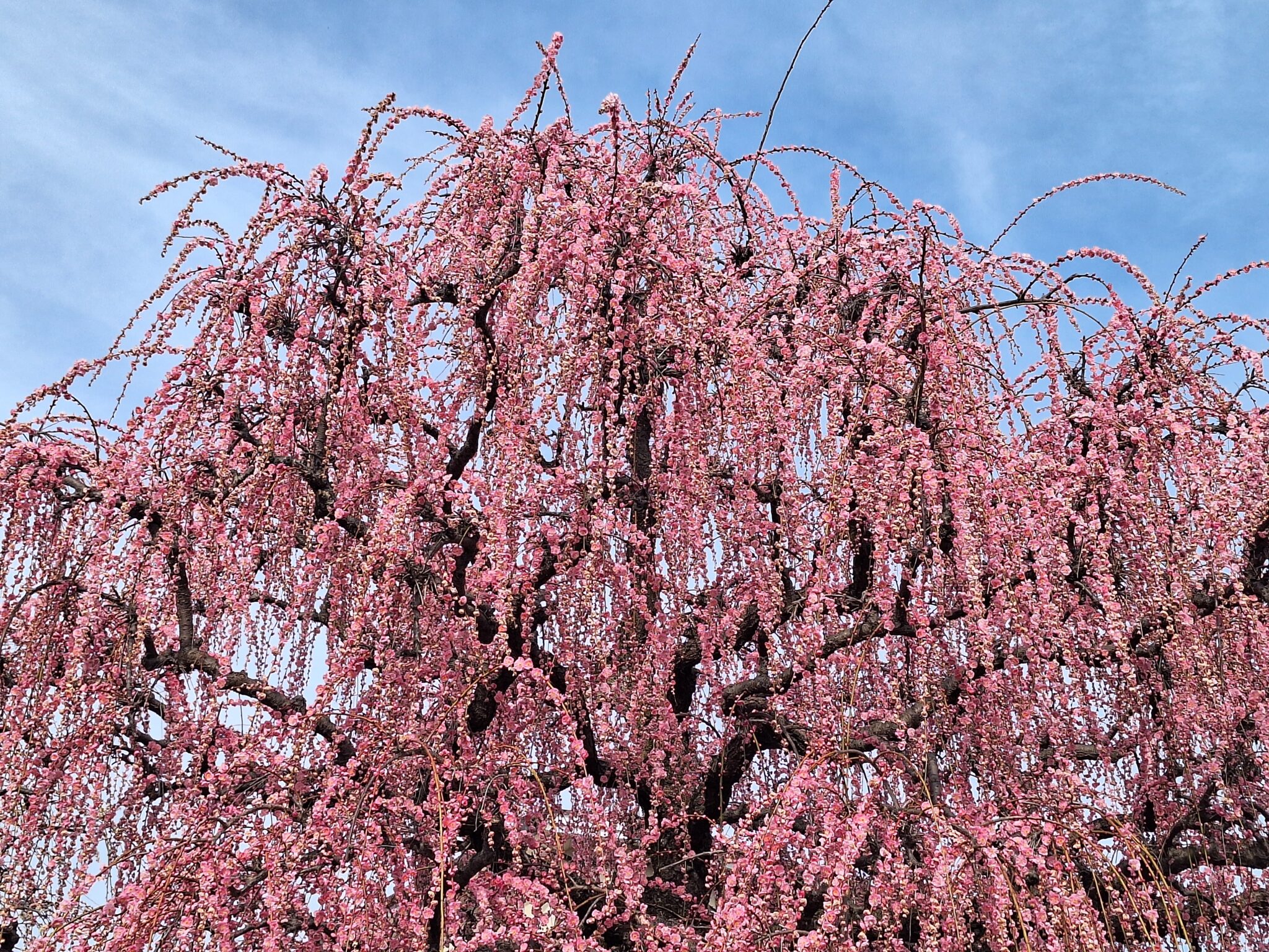 アイス工房前の道路を挟んだ向かいの個人宅の枝垂れ梅。こちらのお宅の梅がこの辺りで一番綺麗でした。