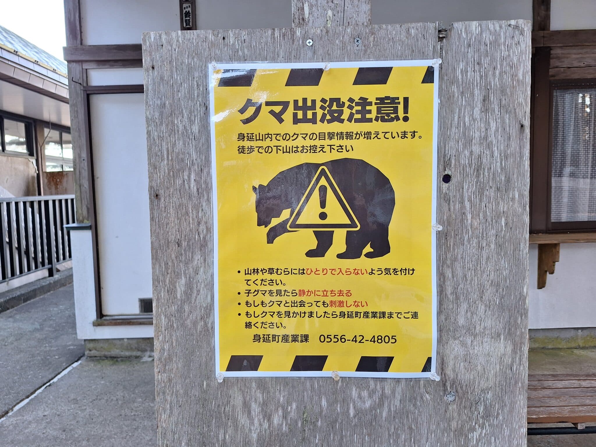 身延山内ではクマの目撃情報が多いようです。おれ「ぶらっくま」を称してますがビビリーなので一人では絶対に行きません。