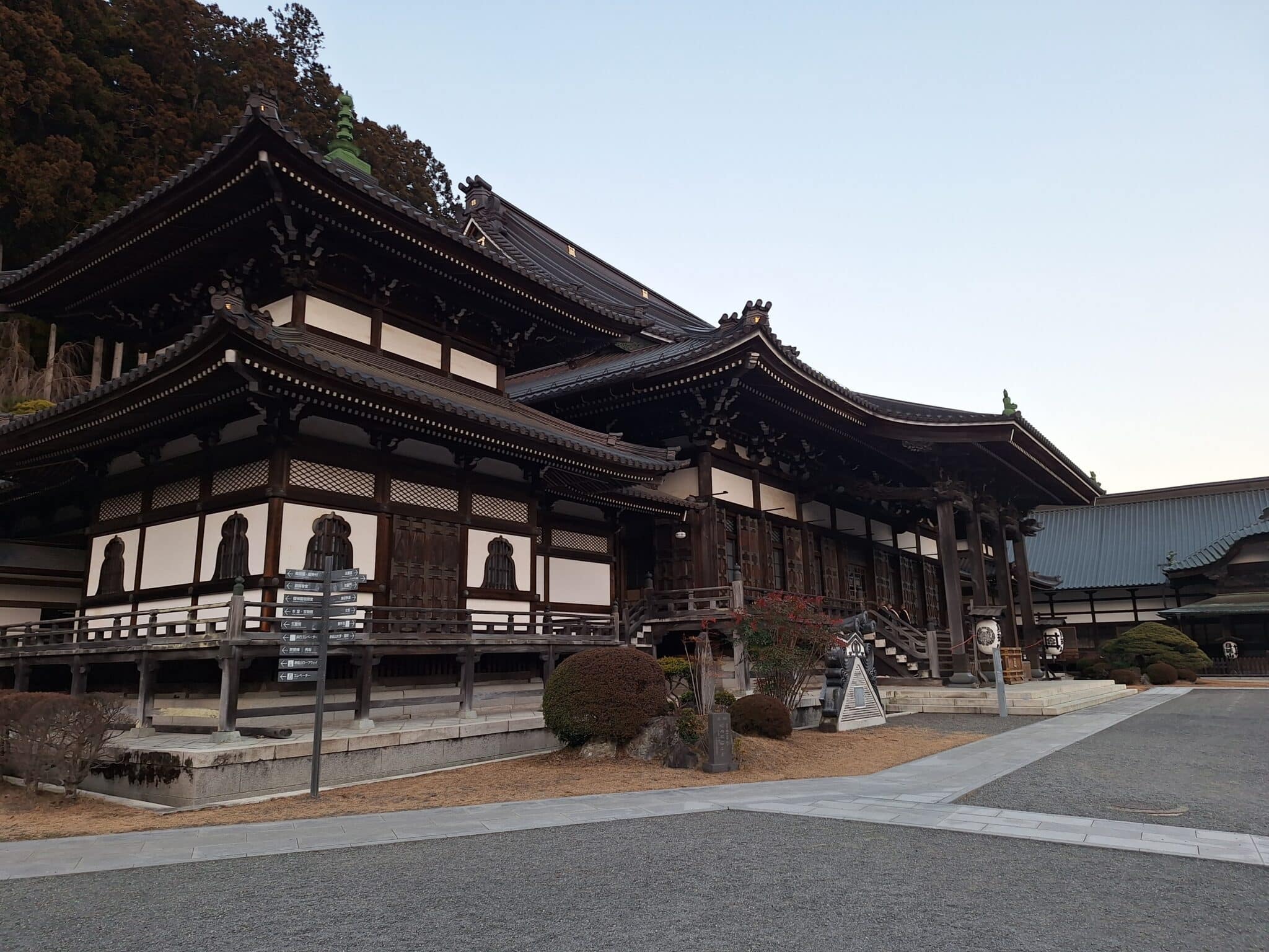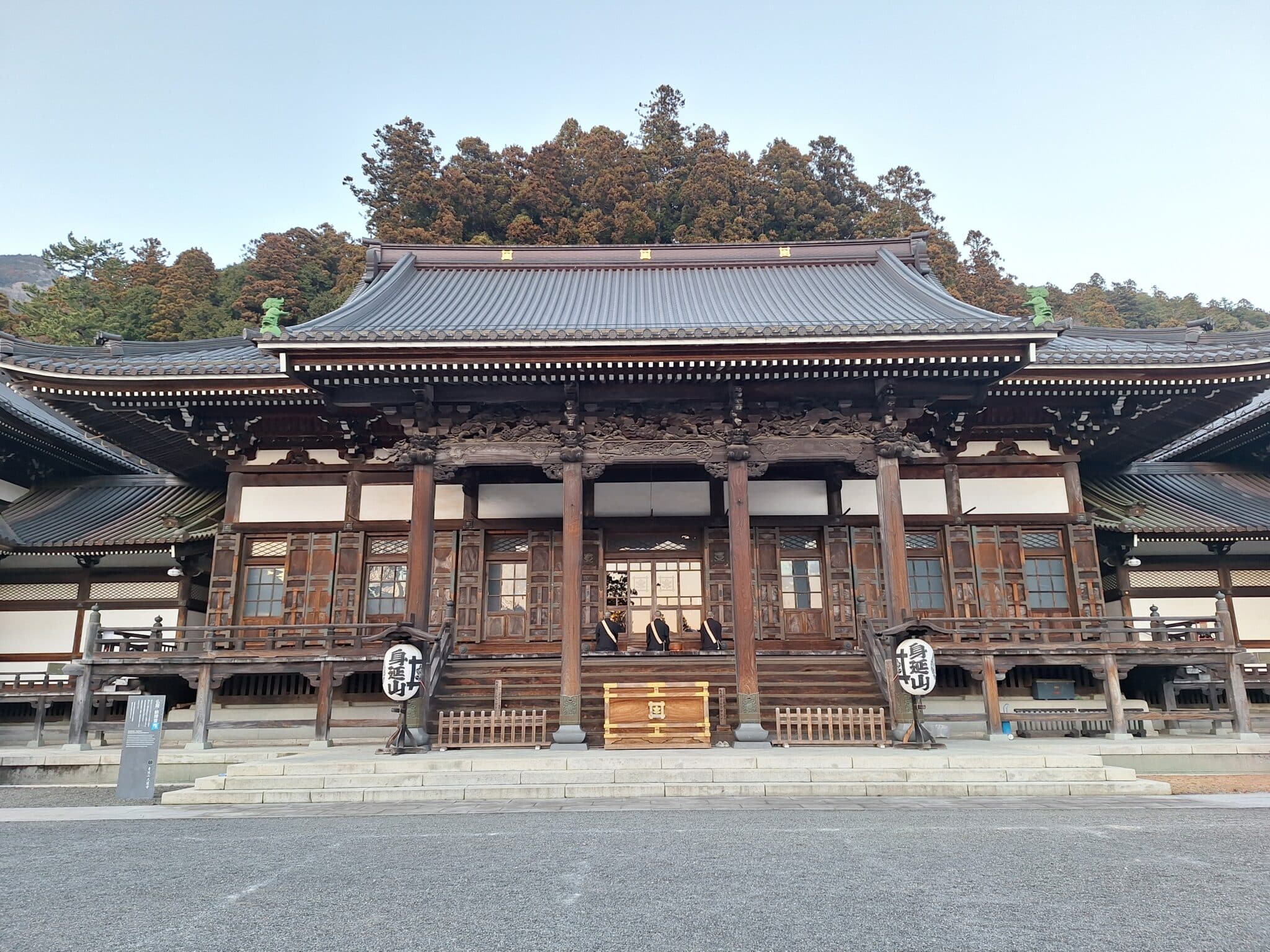 終発のロープウェイで下山、久遠寺境内を散策。17時近いので参拝客もごくわずか。広い境内、荘厳な建物、さすが日蓮上人が奉ぜられているお寺です。