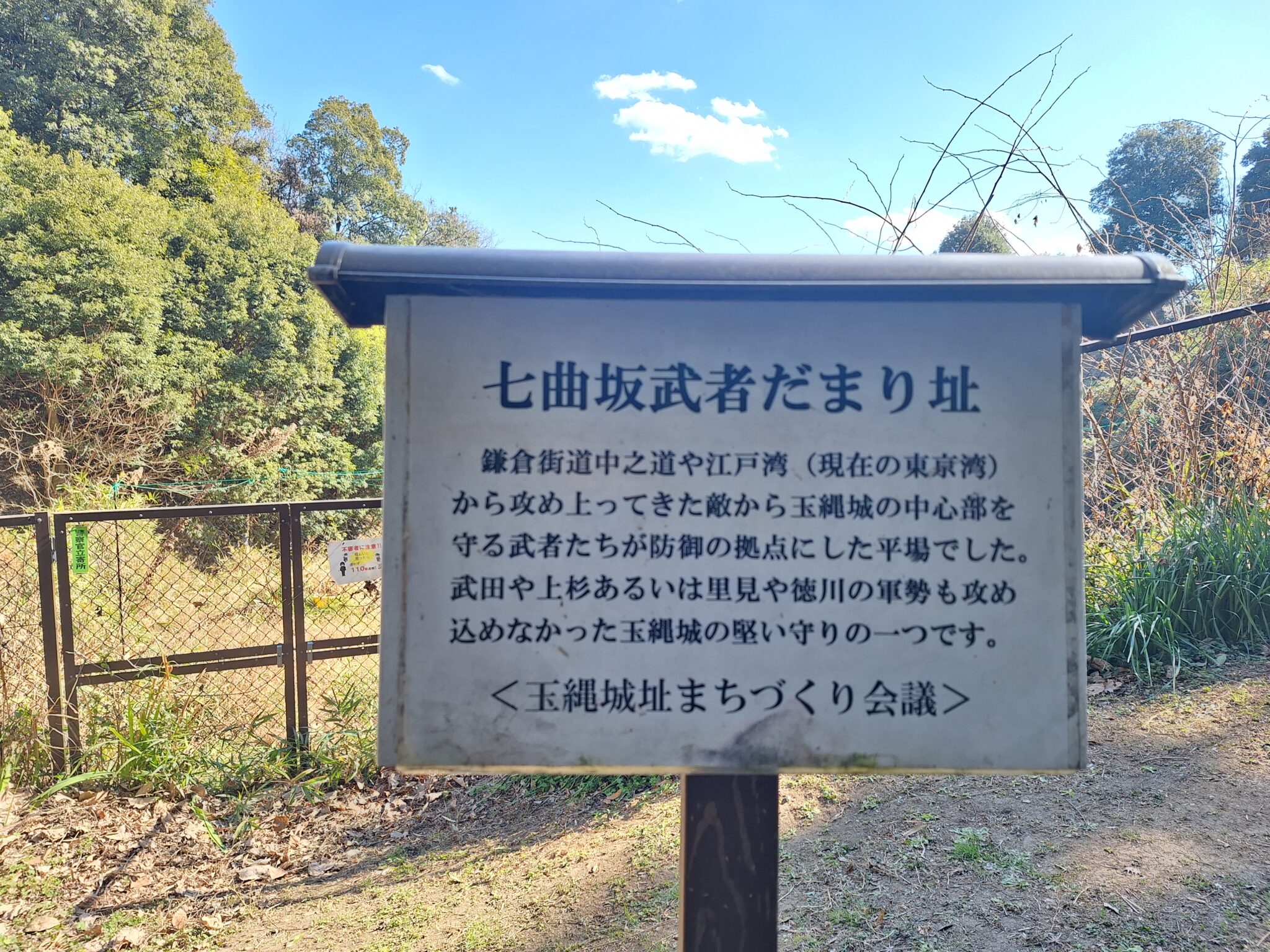 七曲坂を登り切った南側に太鼓櫓が建っていたとされる遺構や堀切があったのを帰宅後に気付く。寄れなくて残念!