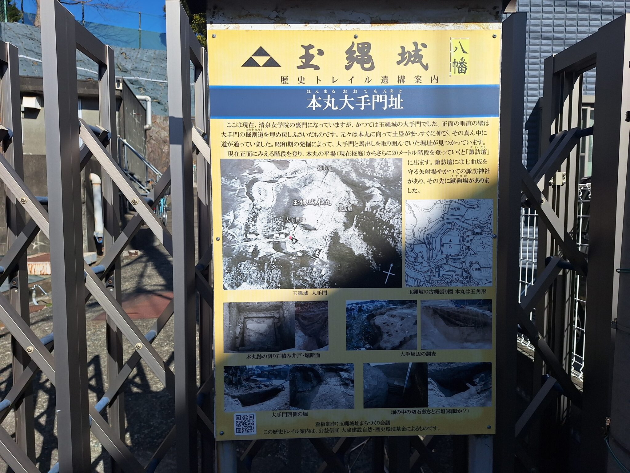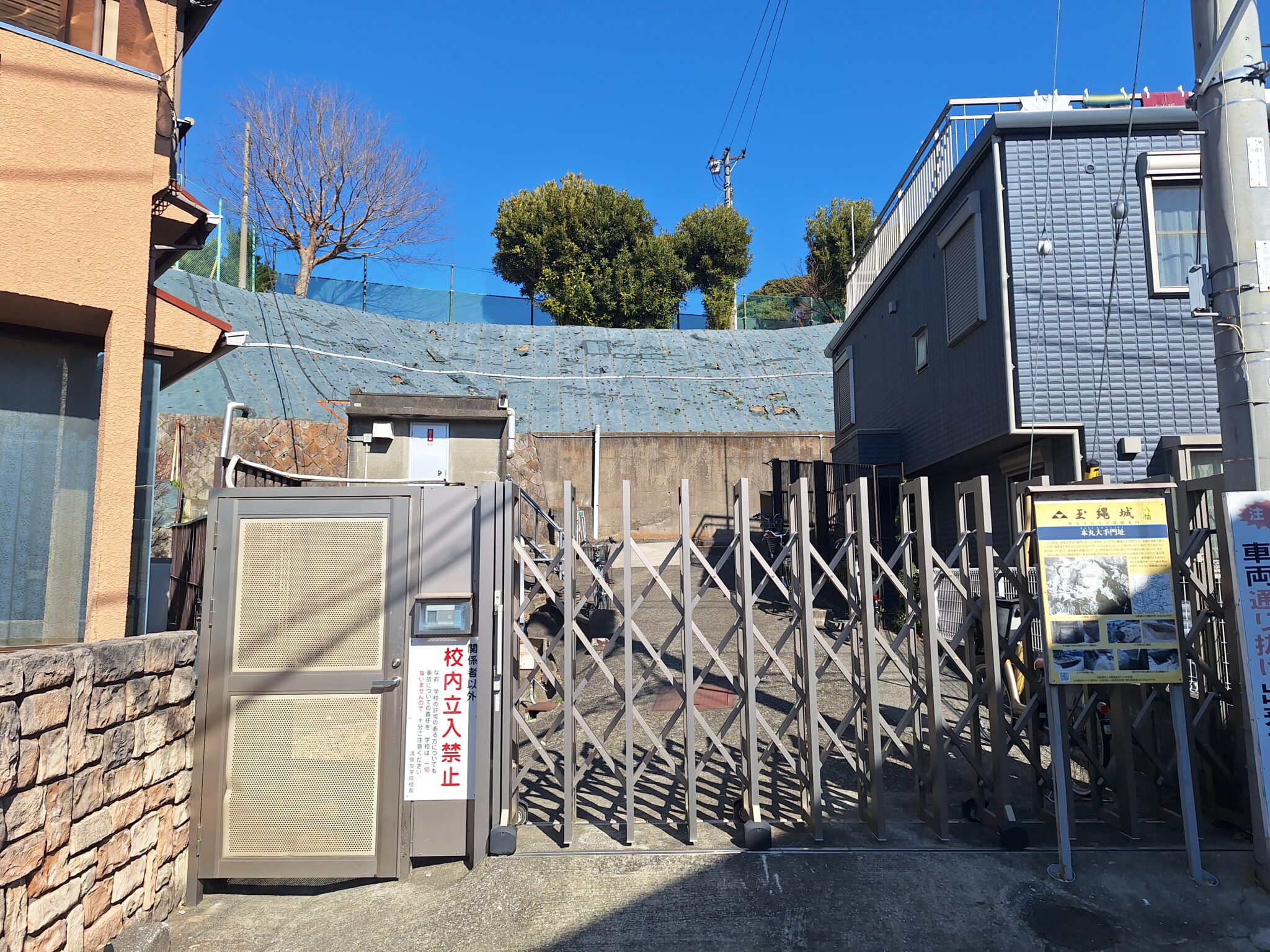 清泉女学院裏門が本丸大手門址。本丸跡地は現在学校の敷地となっていて遺構はほとんど残っていないそうです。難攻不落の玉縄城でしたが、女子高となった現在ではおじさんの俺には絶対難攻不落となりました。清泉女学院のホームページに諏訪壇(玉縄城の象徴的な場所)が掲載されてます。