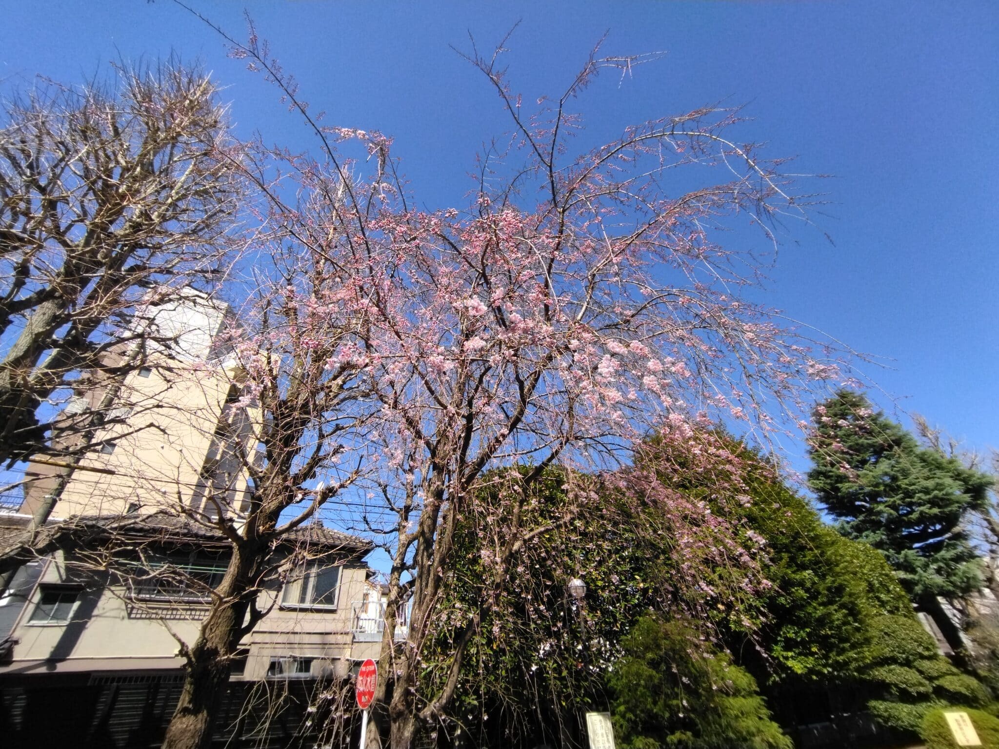 六義園から歩いて約15分、吉祥寺。ここの参道も枝垂桜の並木が有名ですが、満開にはもう少し。