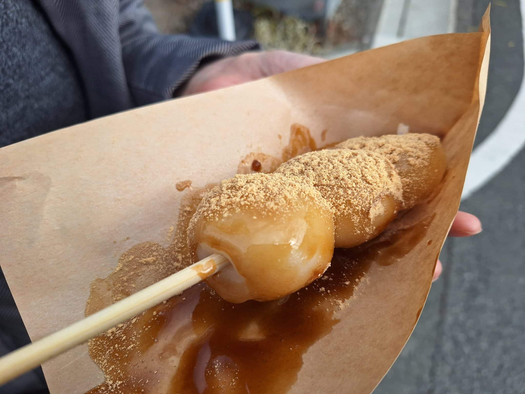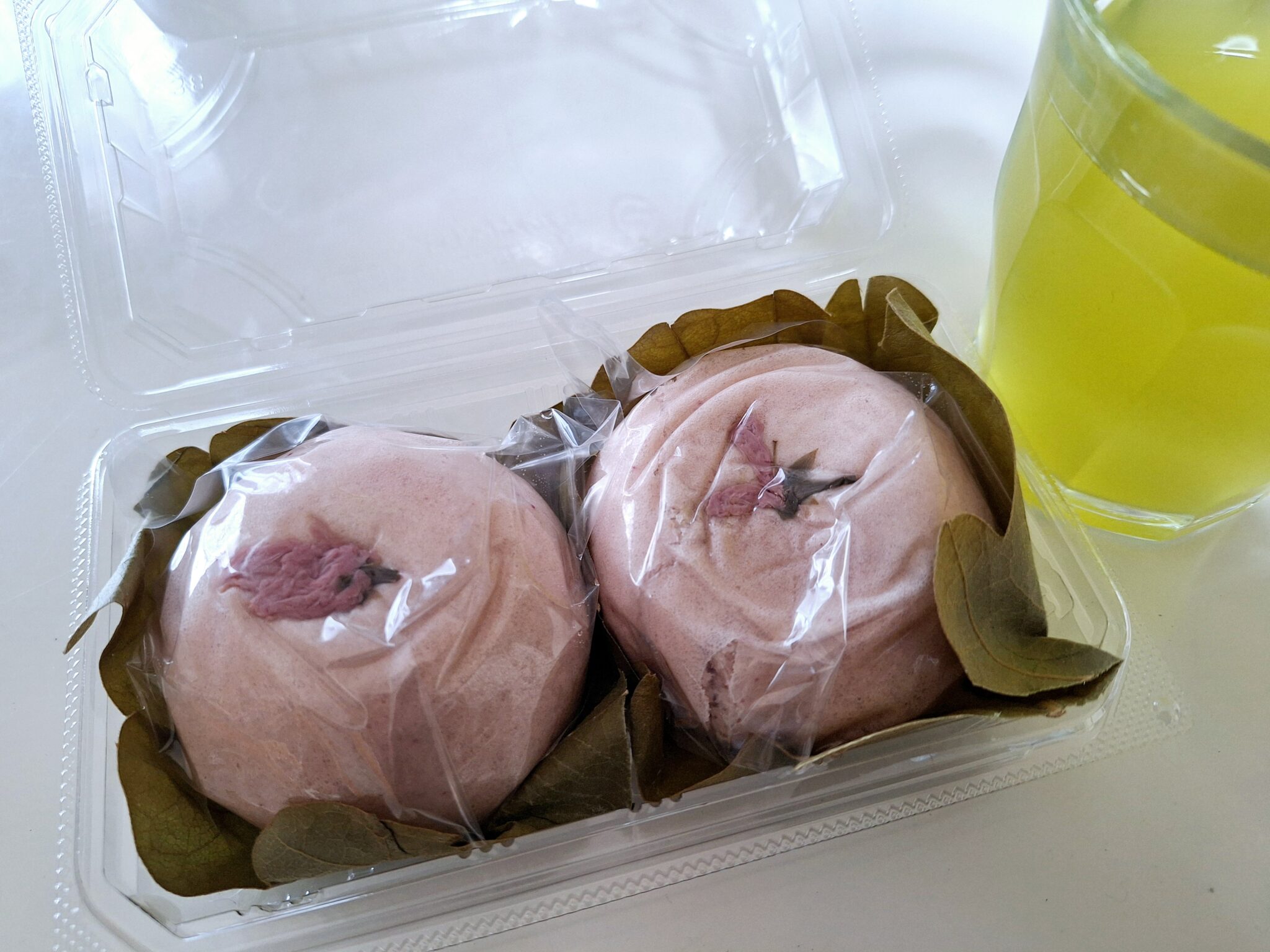 早速、まんじゅう 麦柏(桜あん)(500円)を購入。こちらはおみやで持ち帰る。ステーキ串(800円)、オム焼きそば(500円)を食する。