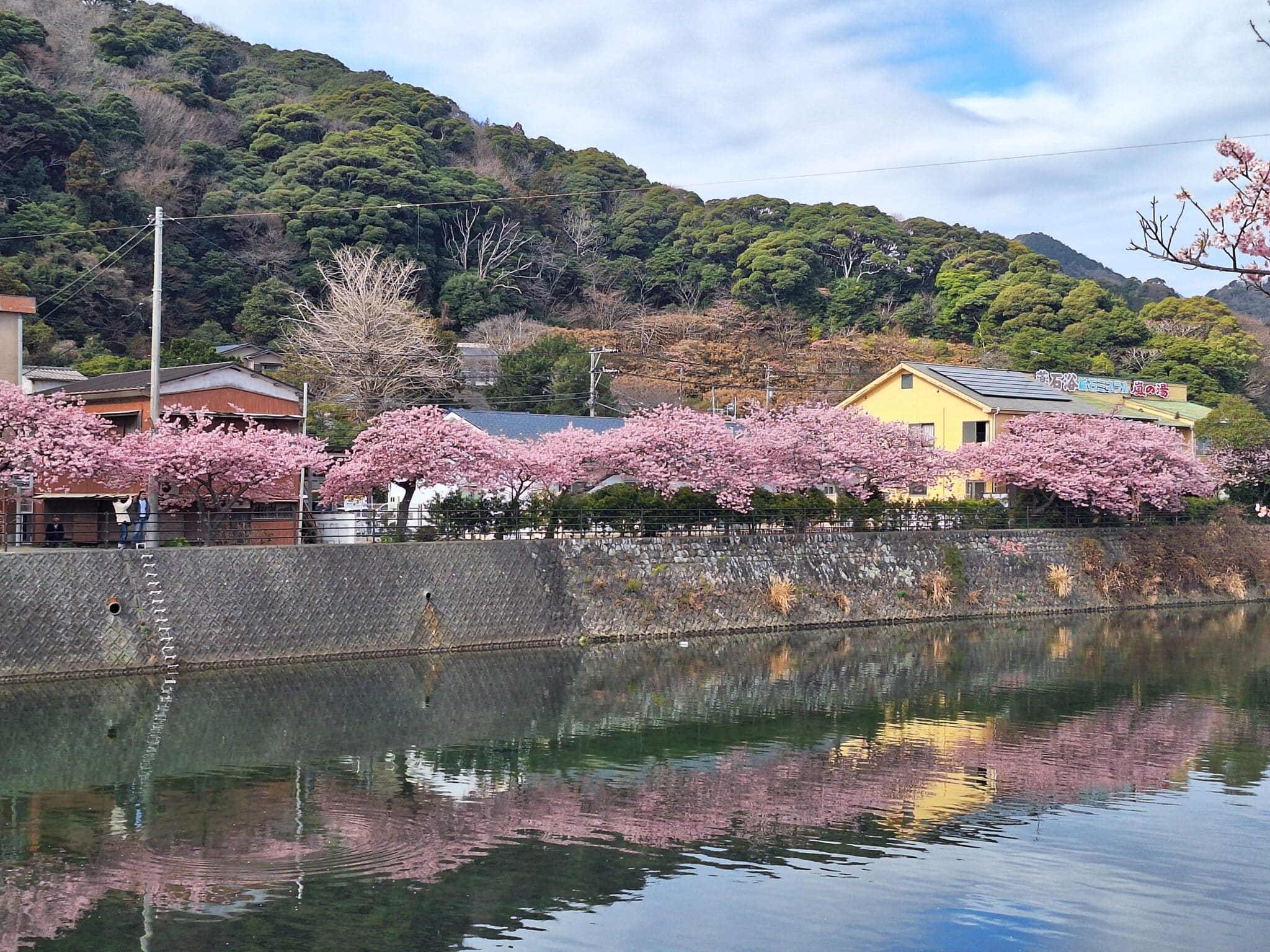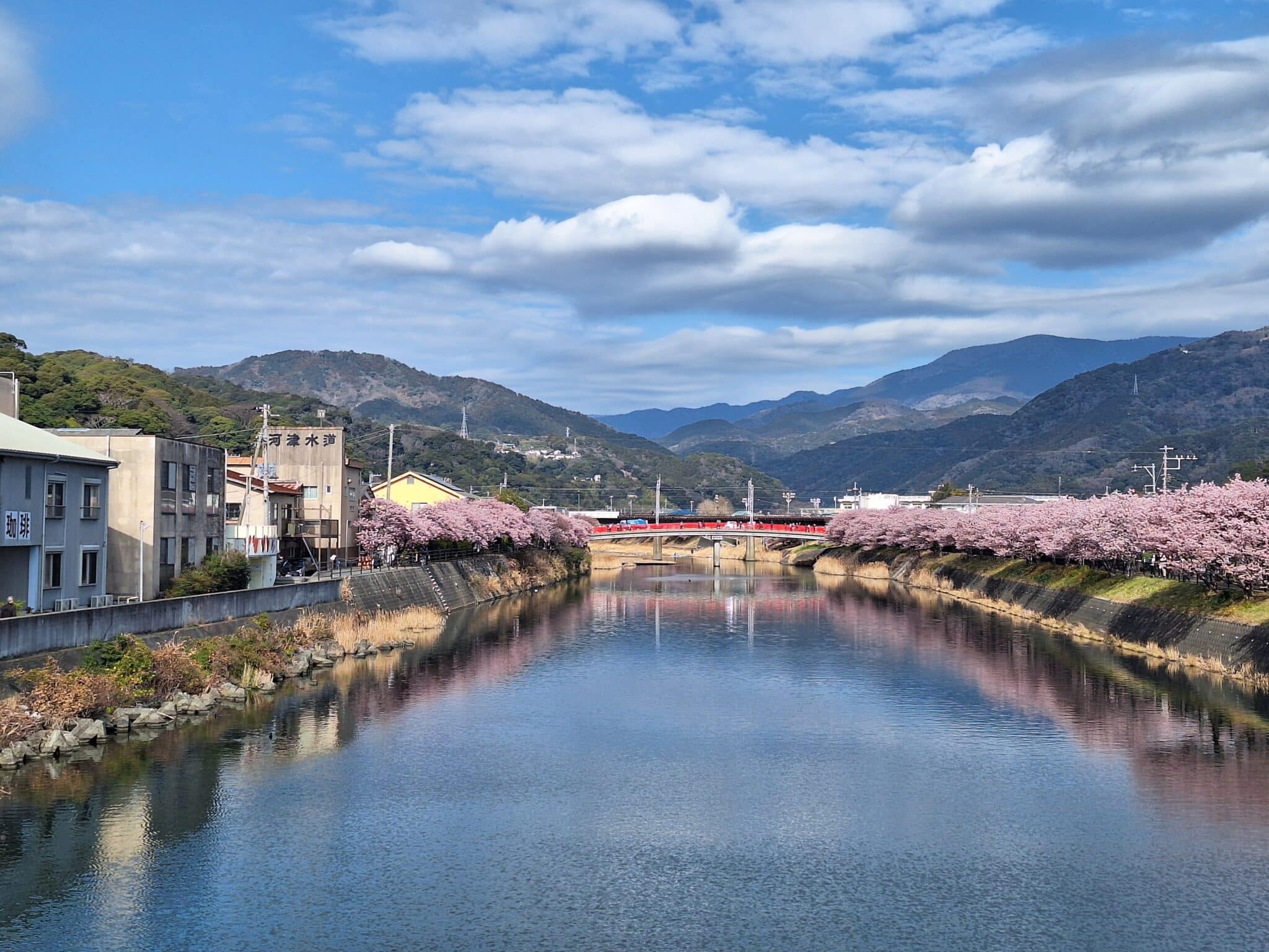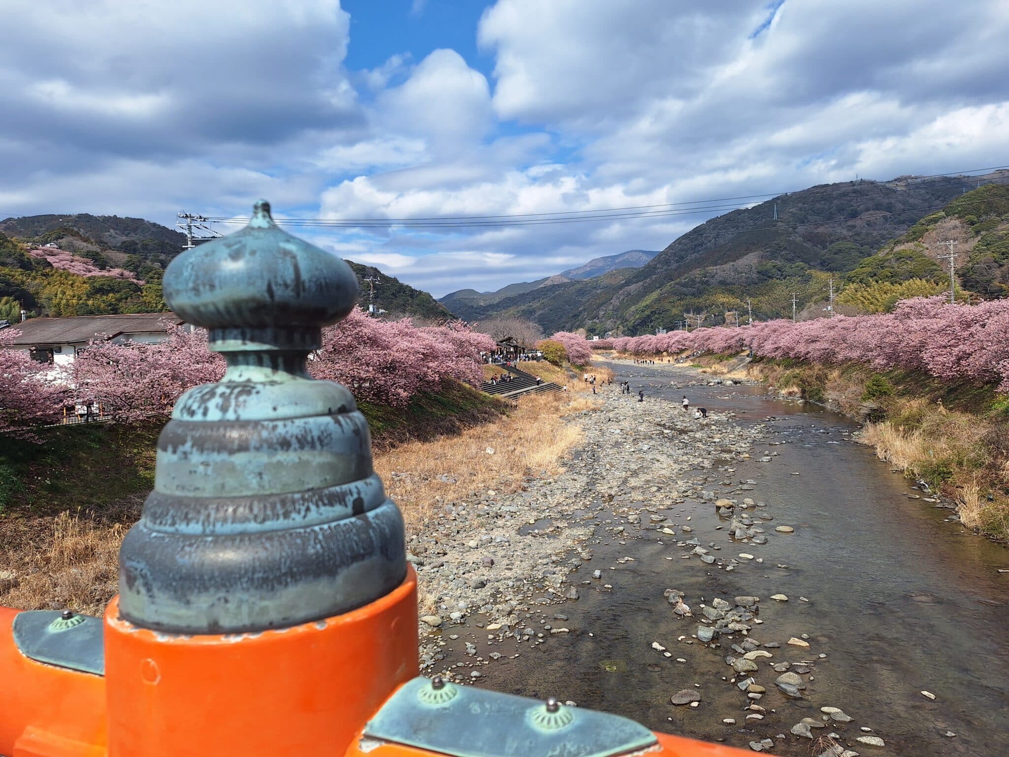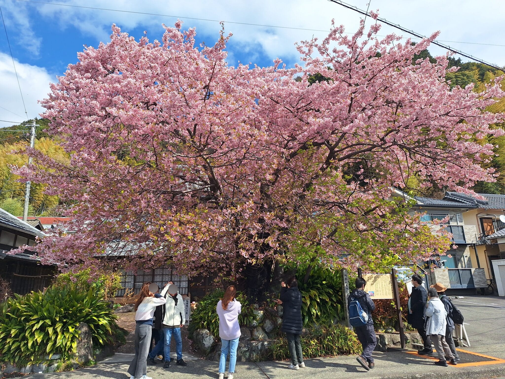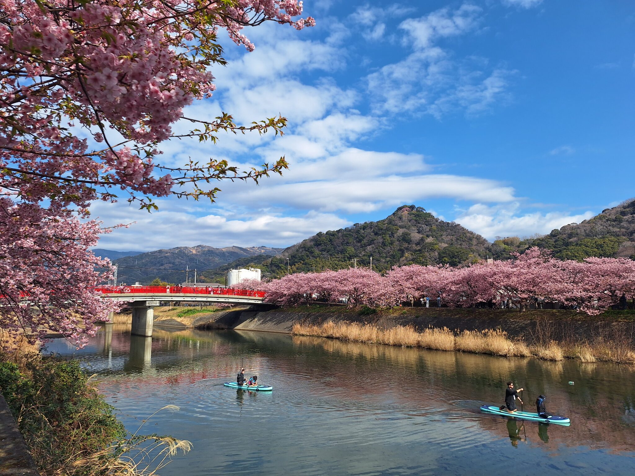 「河津桜まつり」公式ホームページによると、河津桜の開花予想は非常に立てづらく、ツアー観光客泣かせの桜とも言えるそうです。訪問する際はよく確認を。