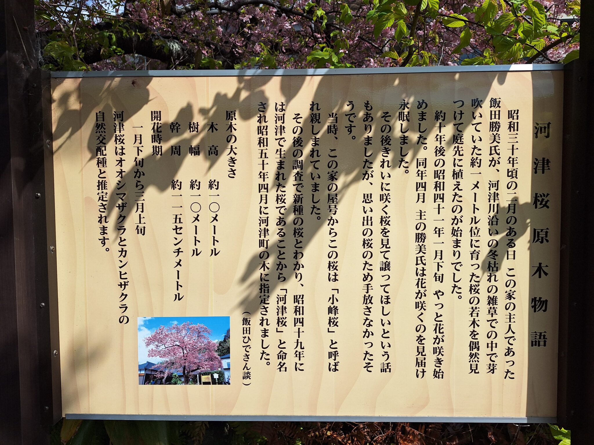 伊東市に住む勝又光也氏が、昭和43年頃からこのサクラを増殖し、河津桜の普及に大きく貢献しました。