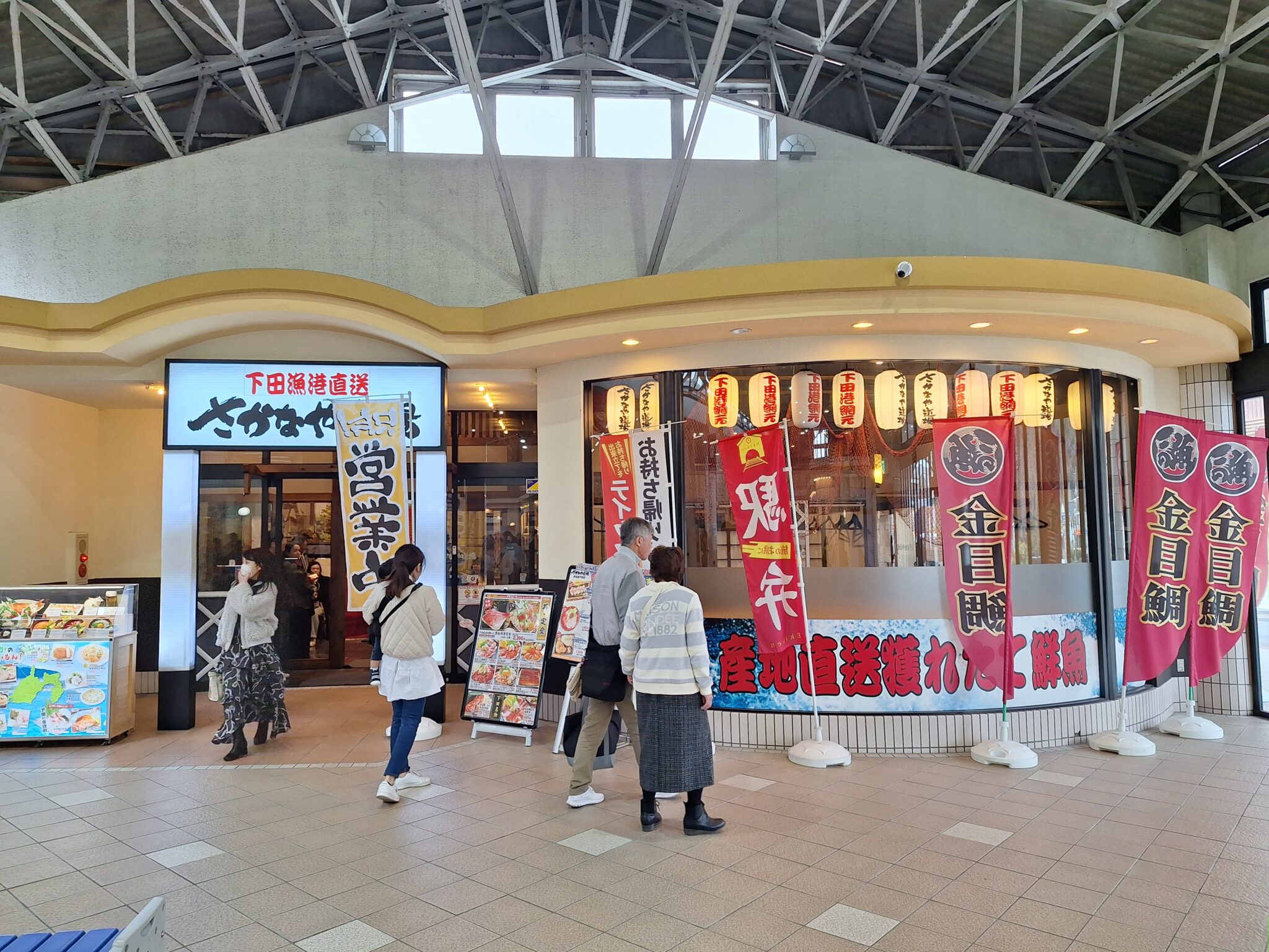 河津駅前にはあまり飲食店がない。せっかく伊豆まで来たのだから、海鮮丼でもと考え下田駅へ。河津駅から下田駅まで3駅、下田駅は始発駅だから帰り座れそうだし!