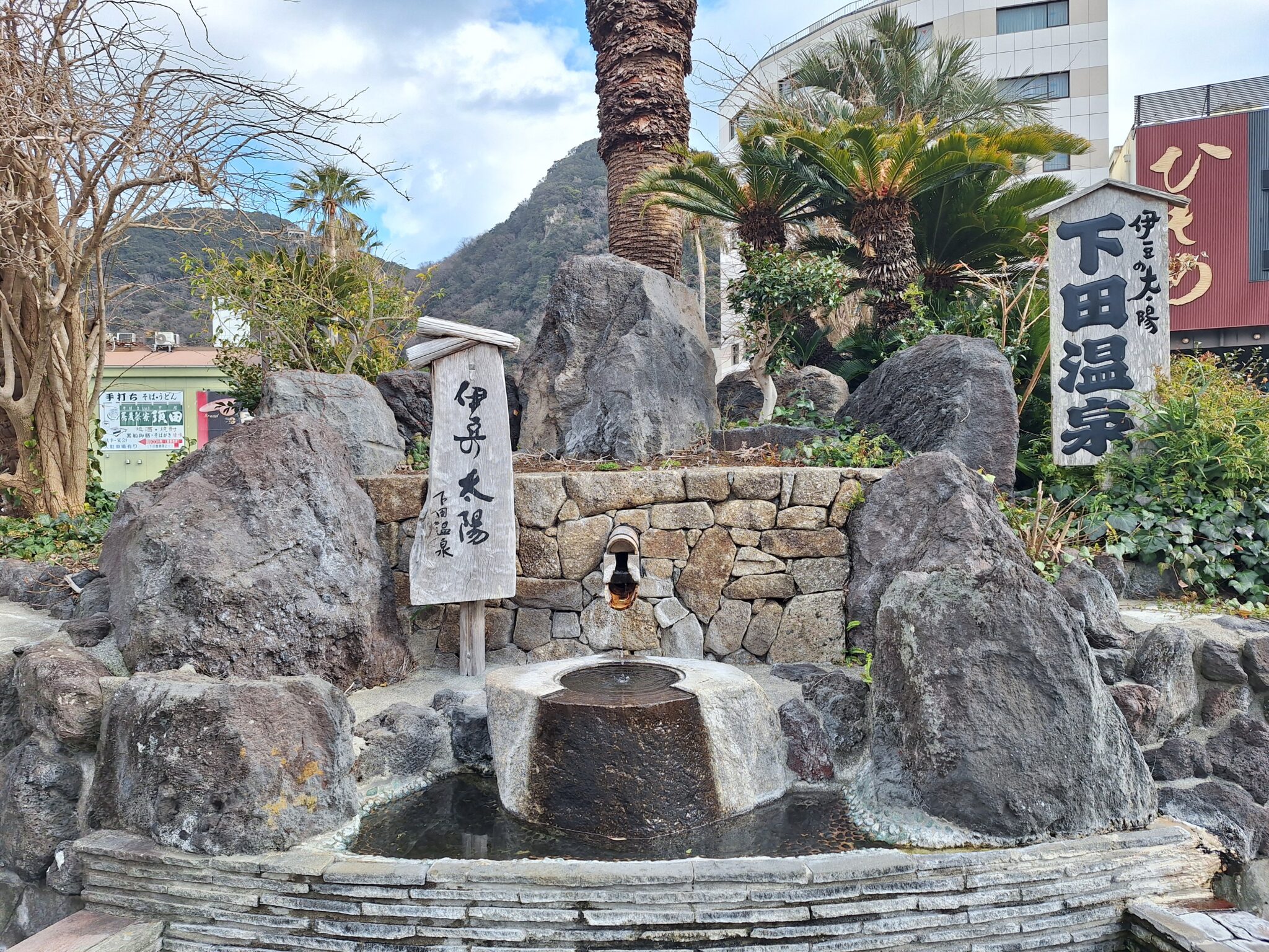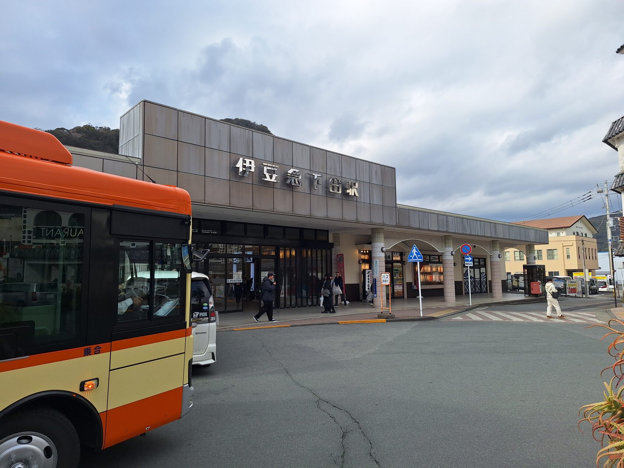 自宅を5時過ぎに出発、横浜経由で東海道線「熱海駅」で乗り換え、伊豆急行(直通)下田行き「河津駅」に8時40分頃の到着。電車では座れたけど約3時間半、長いな~!座って乗っているだけなんだけど疲れる。