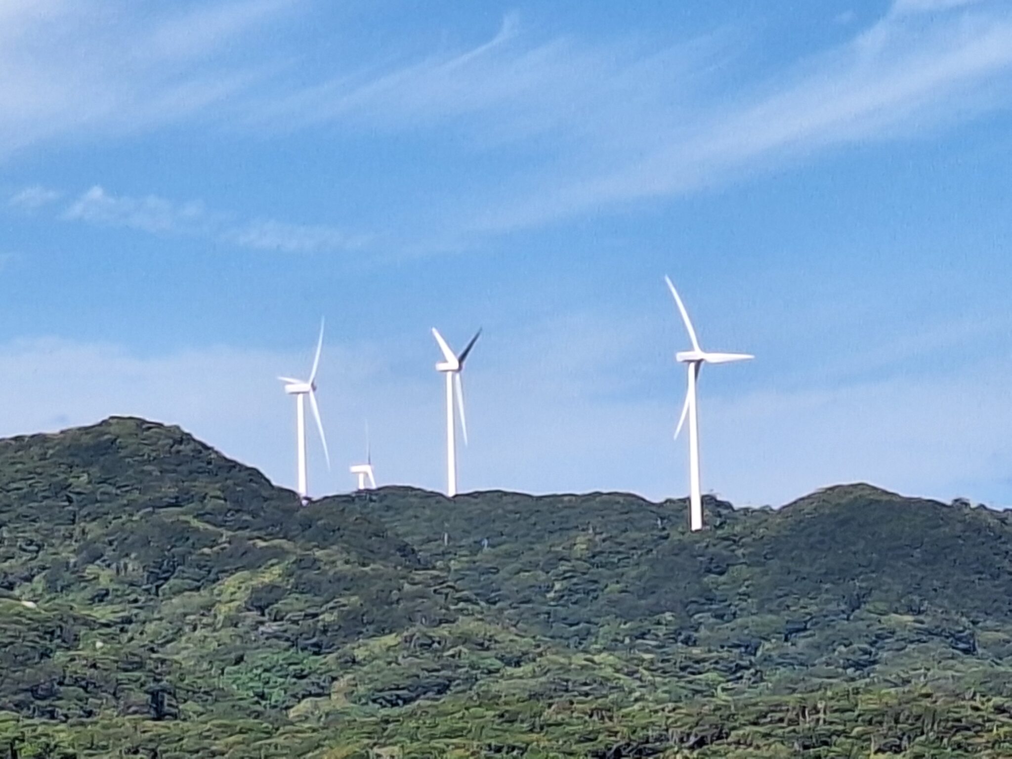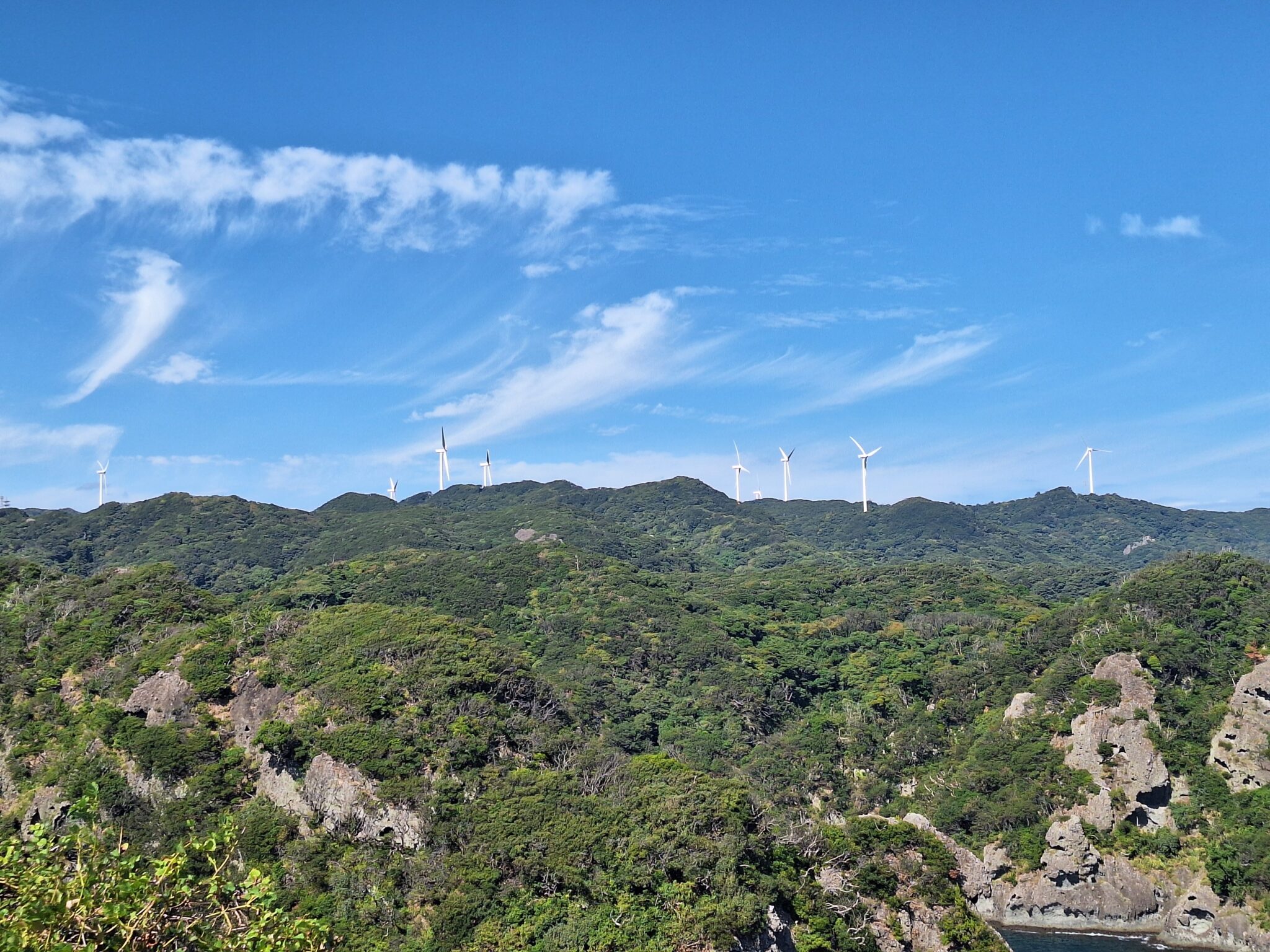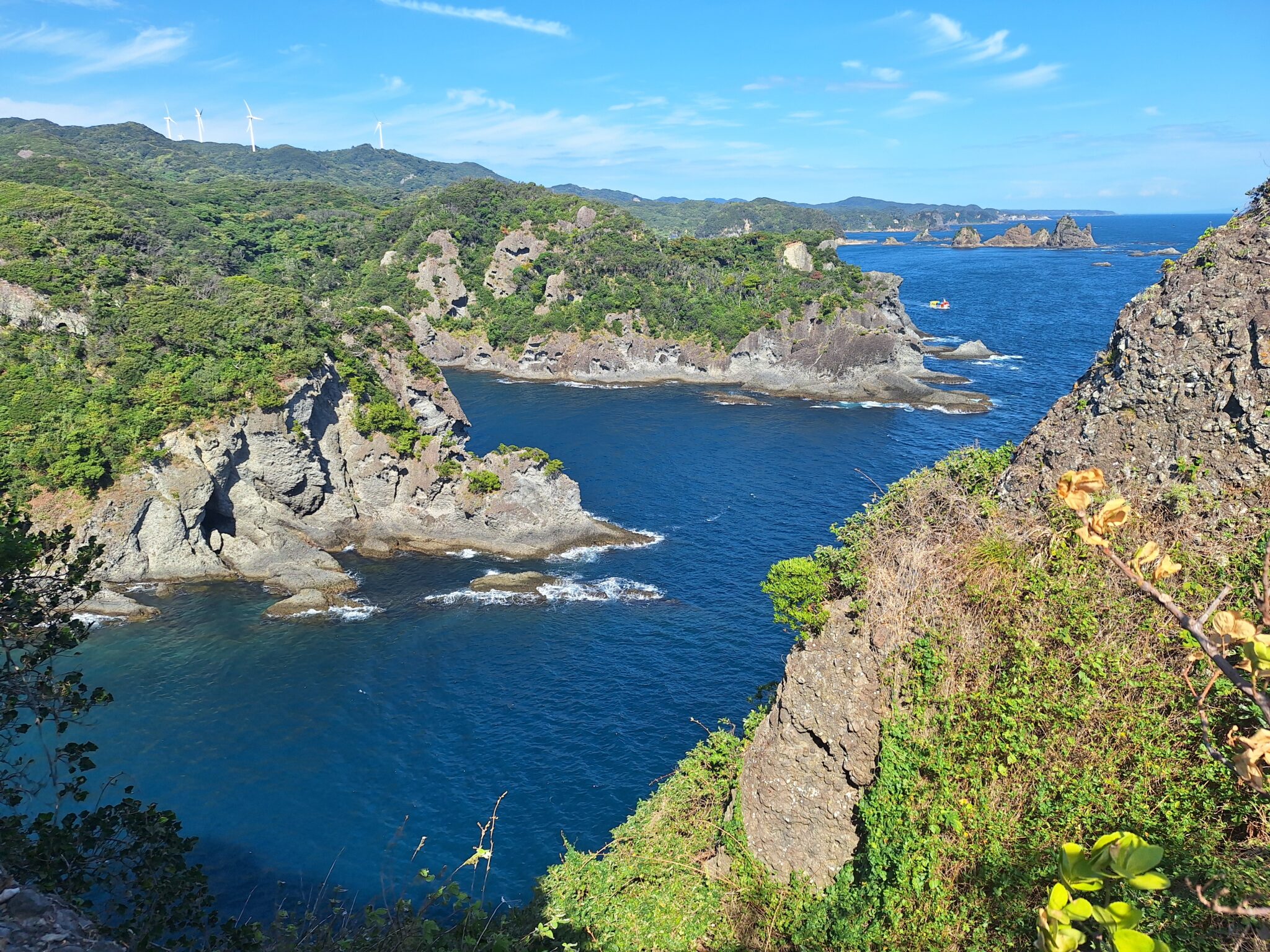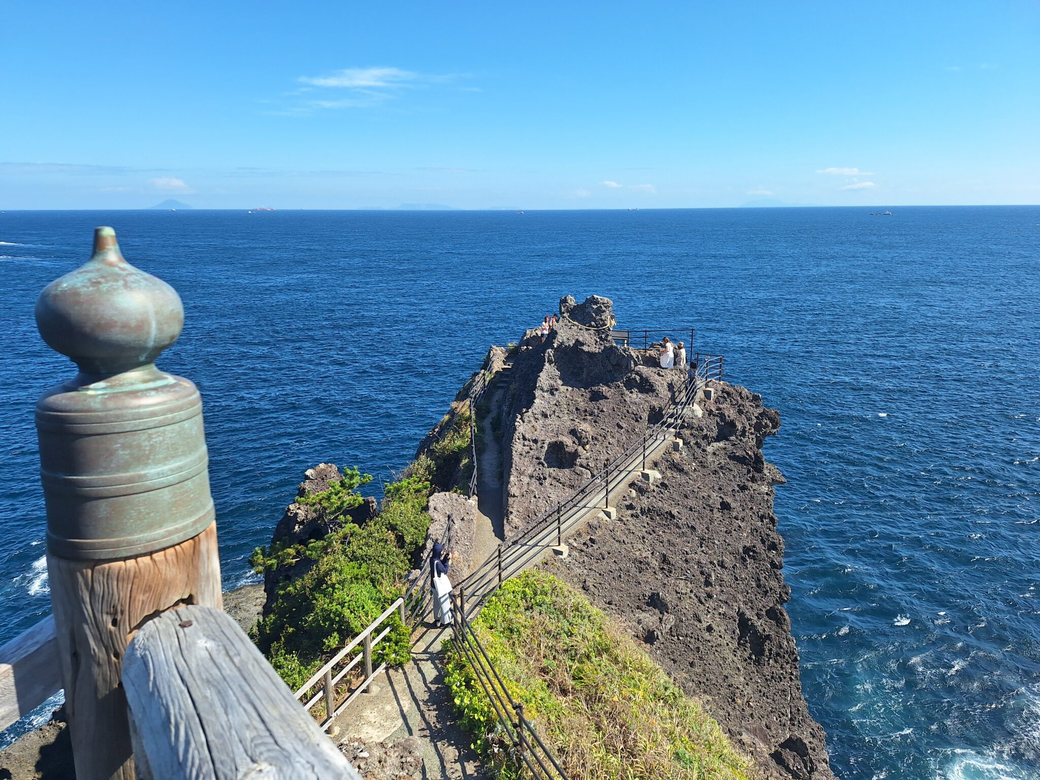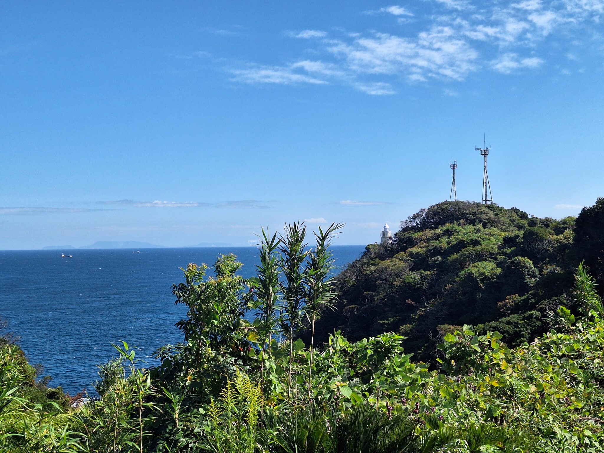 休憩所脇の通路からの眺め。空も海も青くテンション上がる!