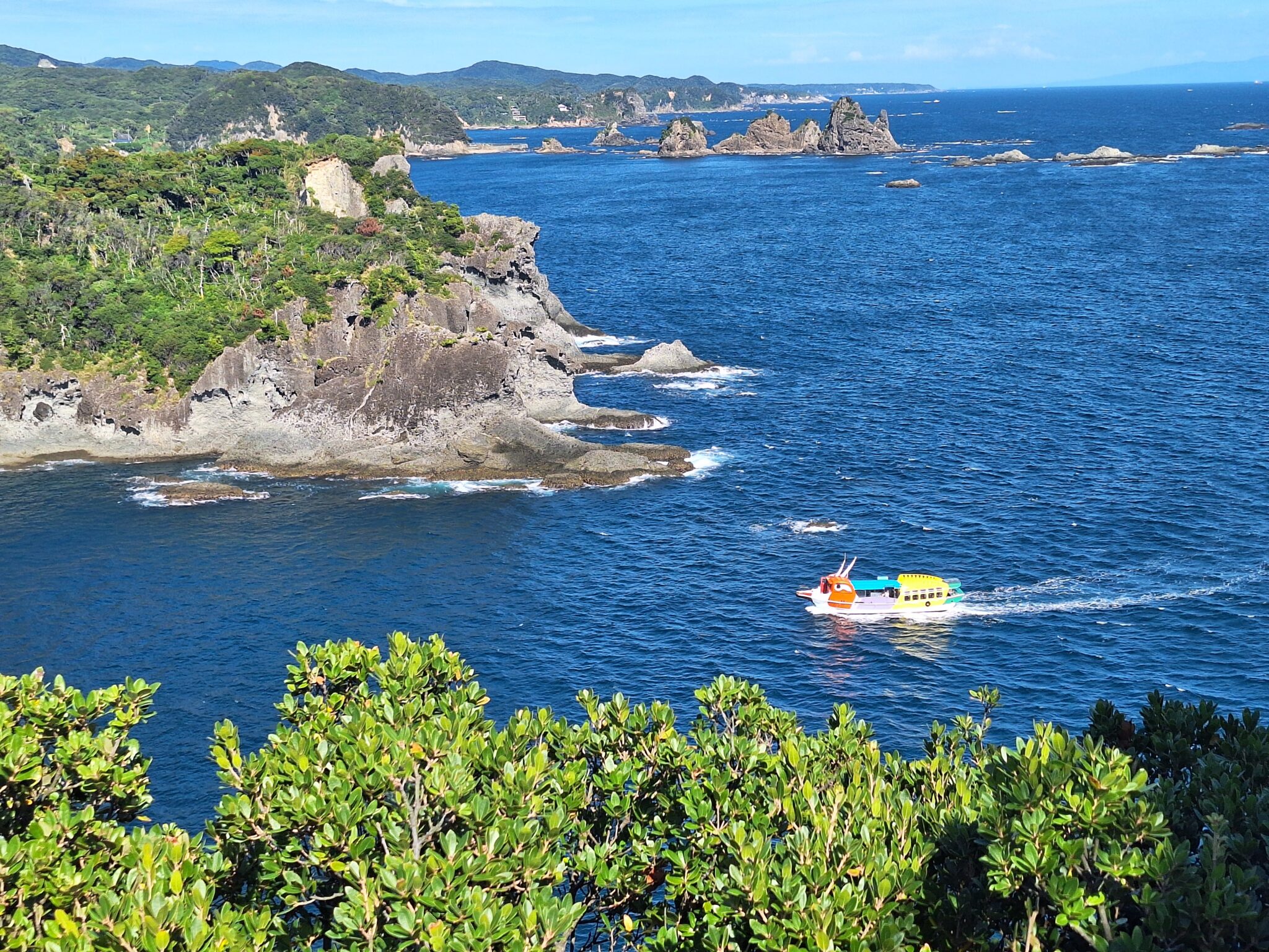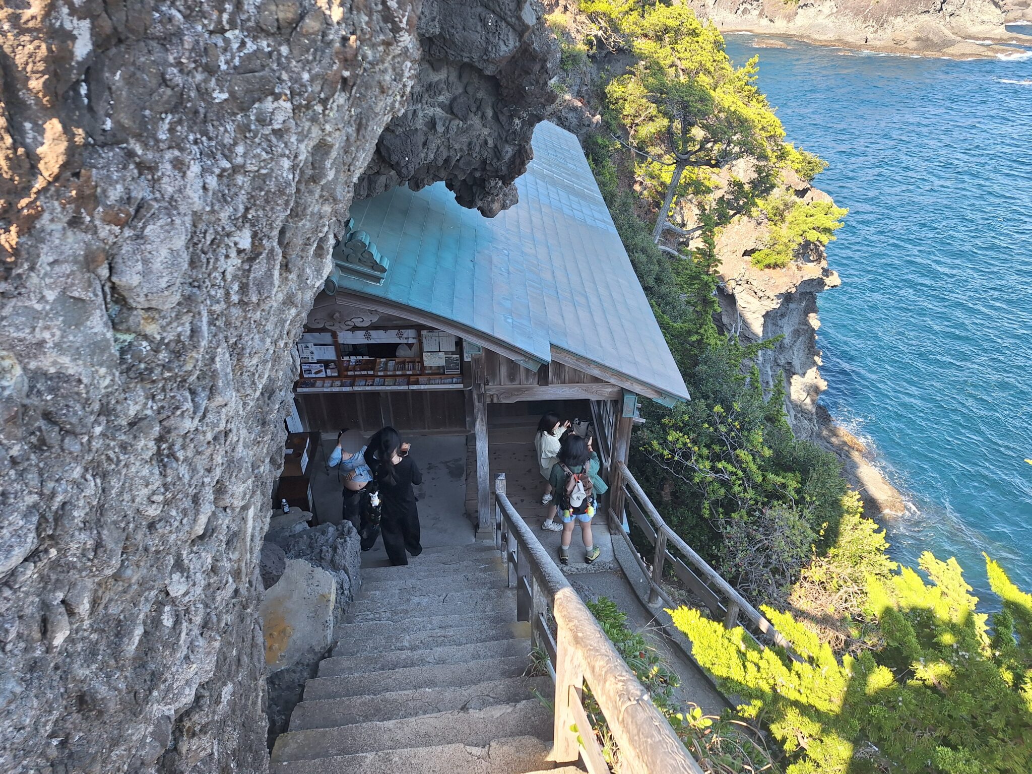 伊豆半島最南端の石廊崎へ。伊東・伊豆高原・白浜海岸・下田と東エリアは何度も訪れたことはあるが、石廊崎へ来たのは初めて。駐車場(料金500円)の向かいが石廊崎オーシャンパーク休憩棟。ジオパークセンターが併設されていて、お土産販売や食事も提供されているオシャレな施設。