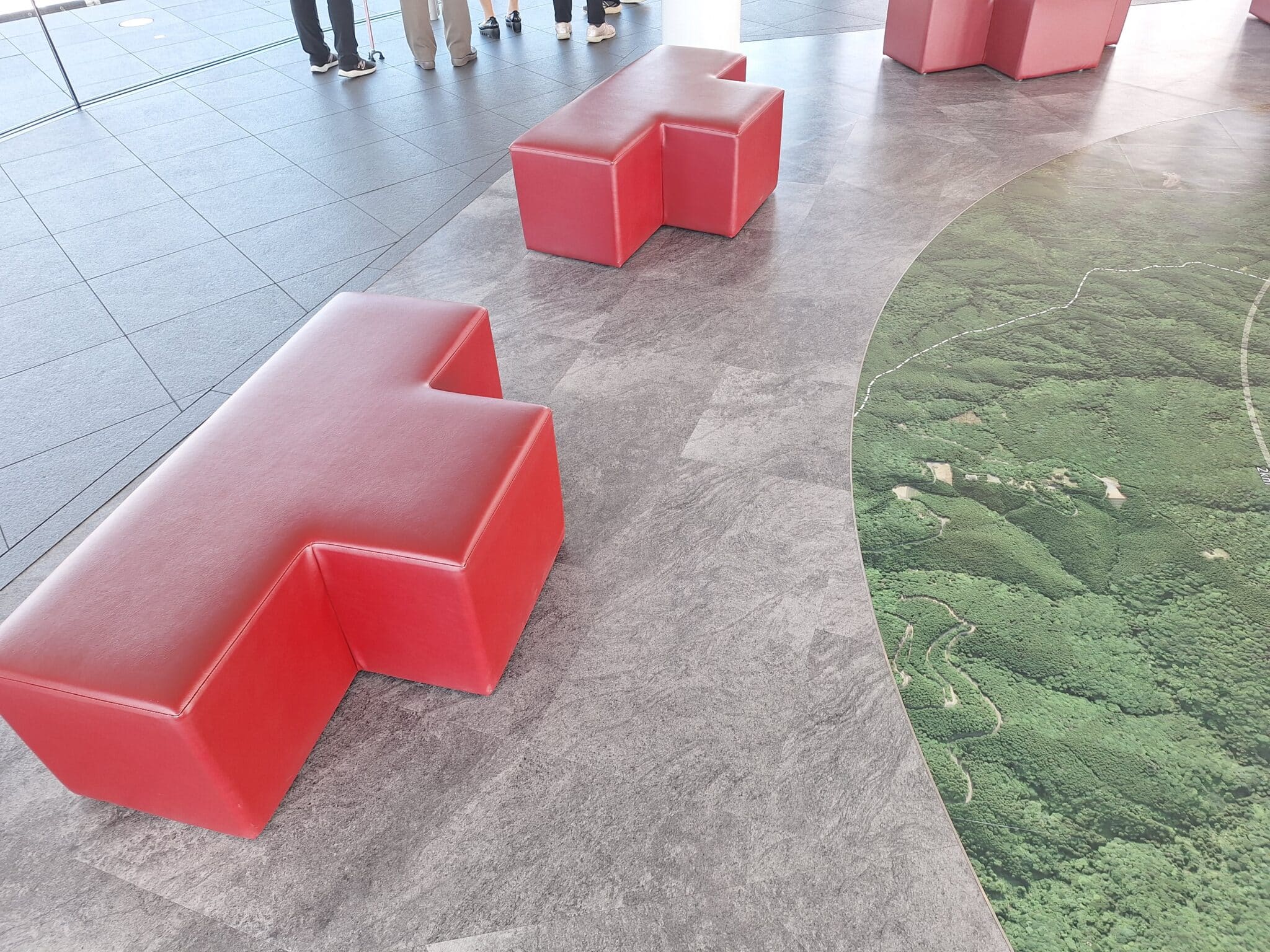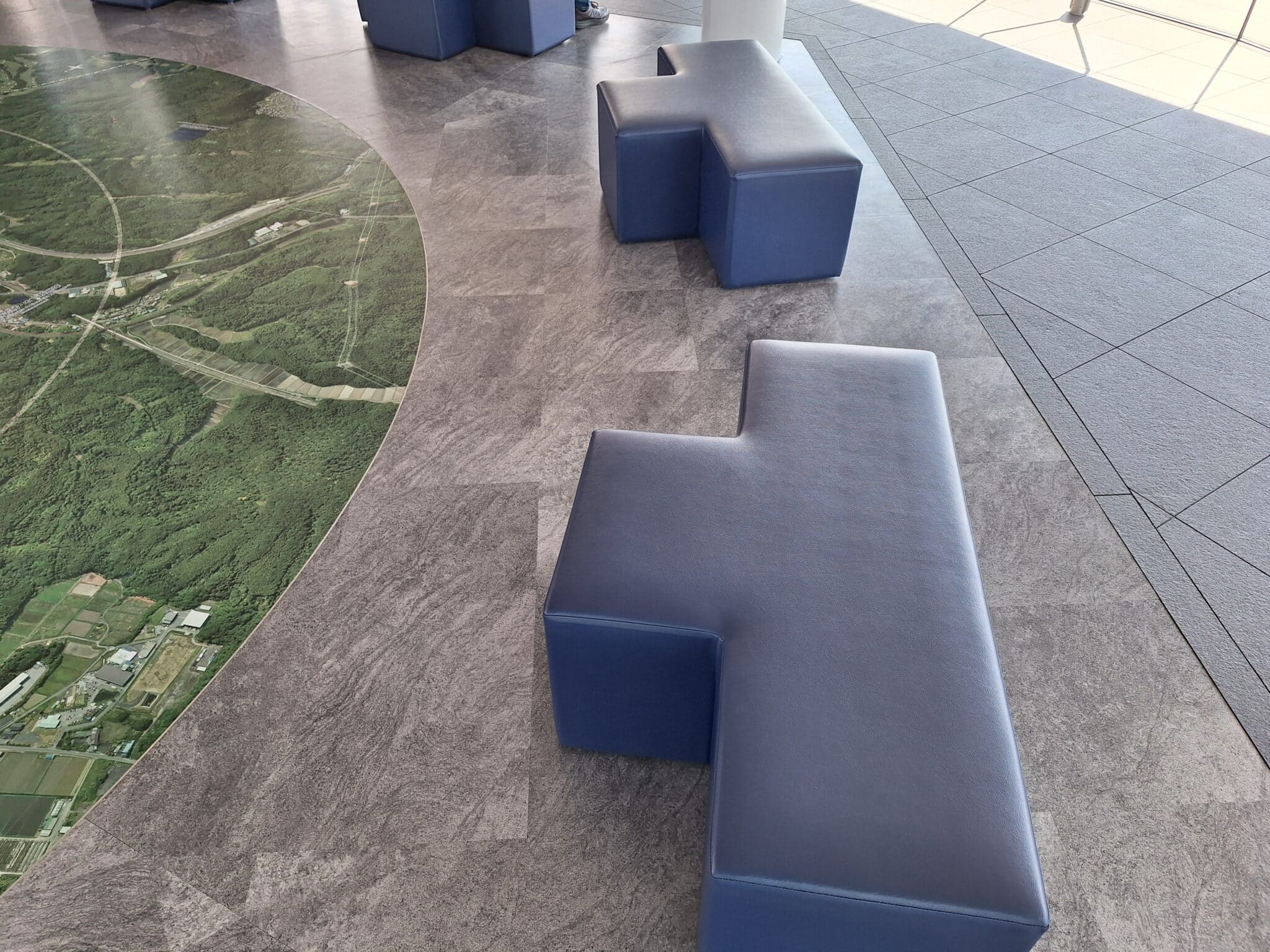 5Fの展望室は眺望良好。椅子は陣駒のデザイン。