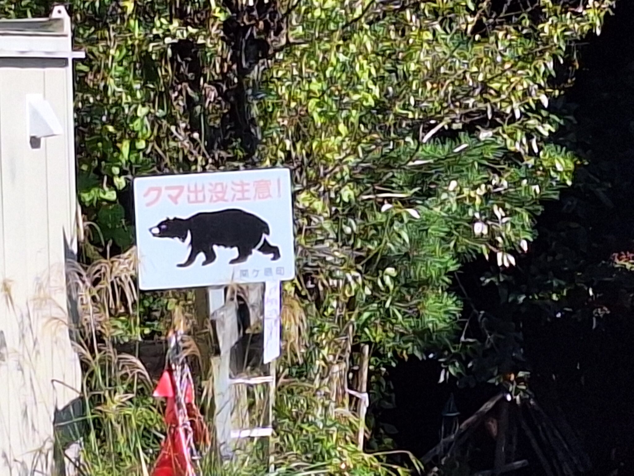 クマ出没注意!の看板、速攻で引き返す。俺も「ぶらっくま」なんだけど注意たってムリだよな。