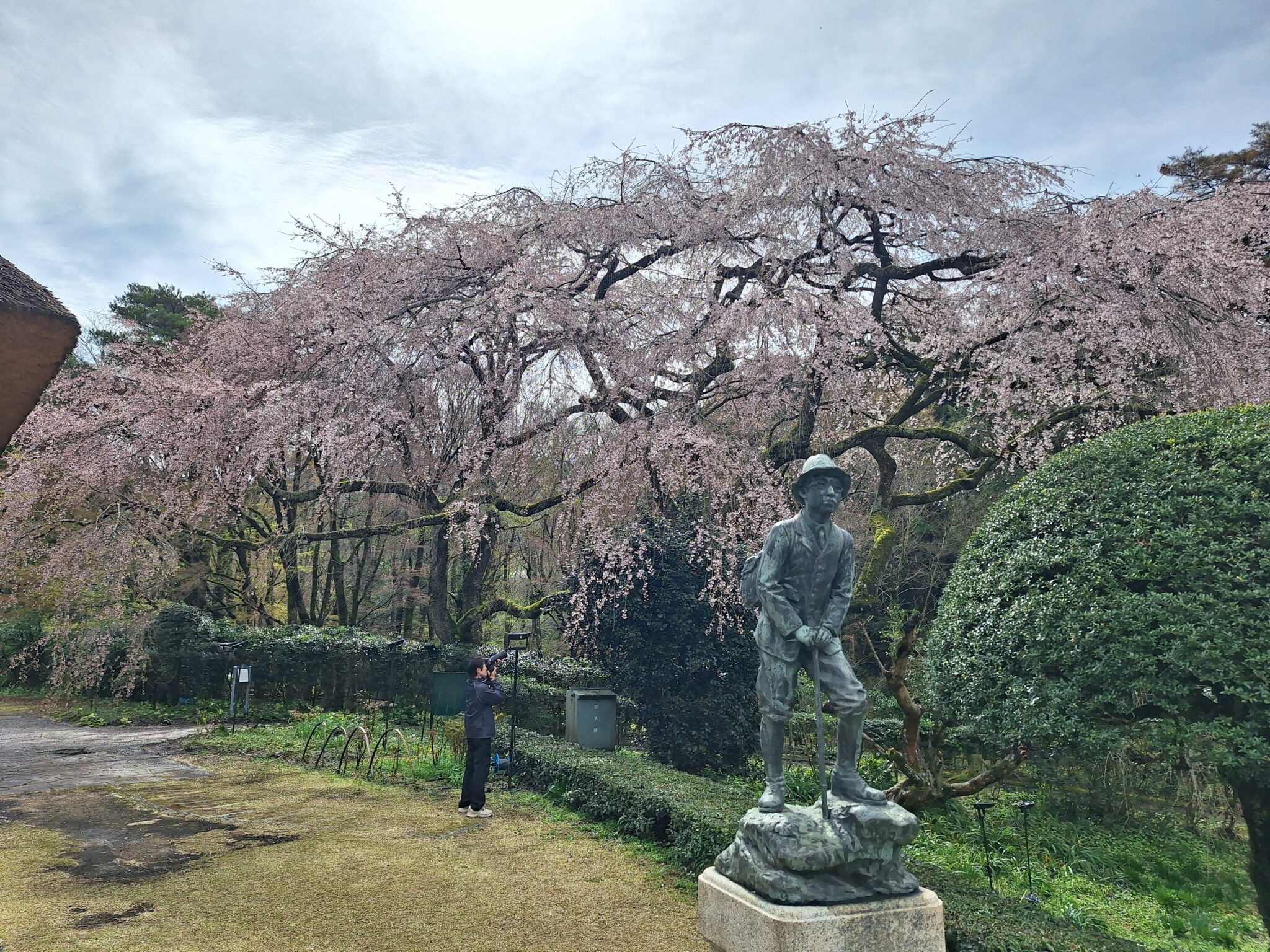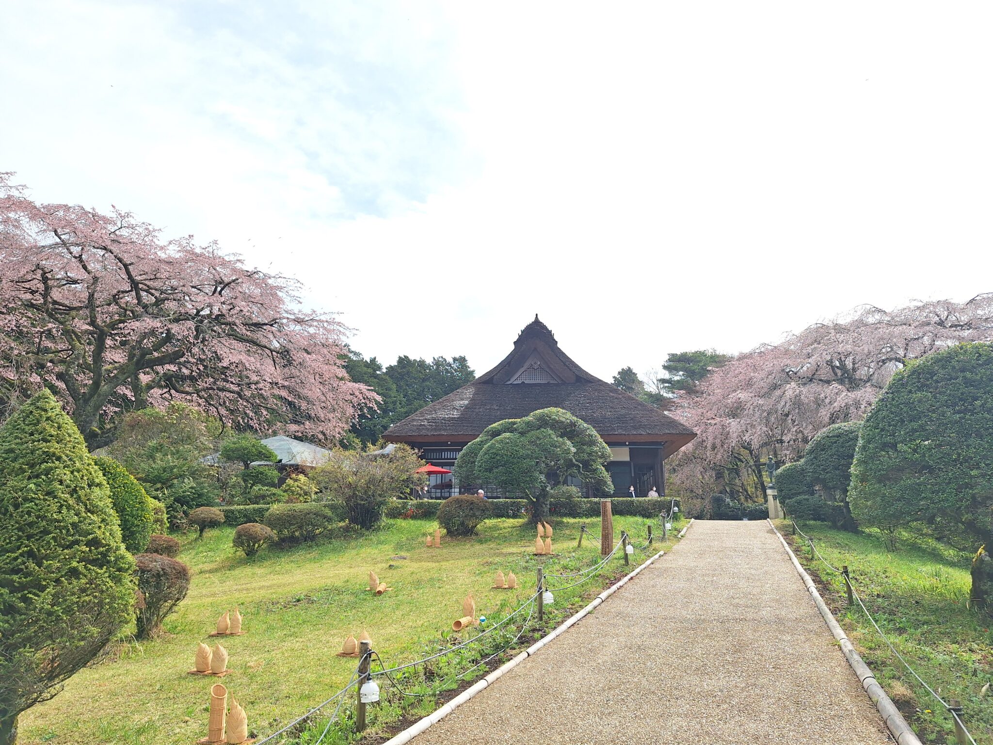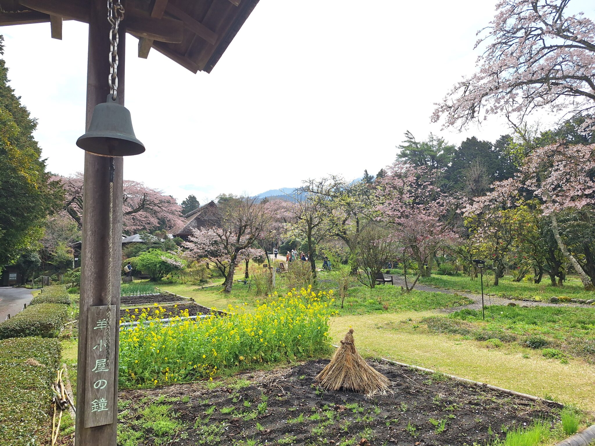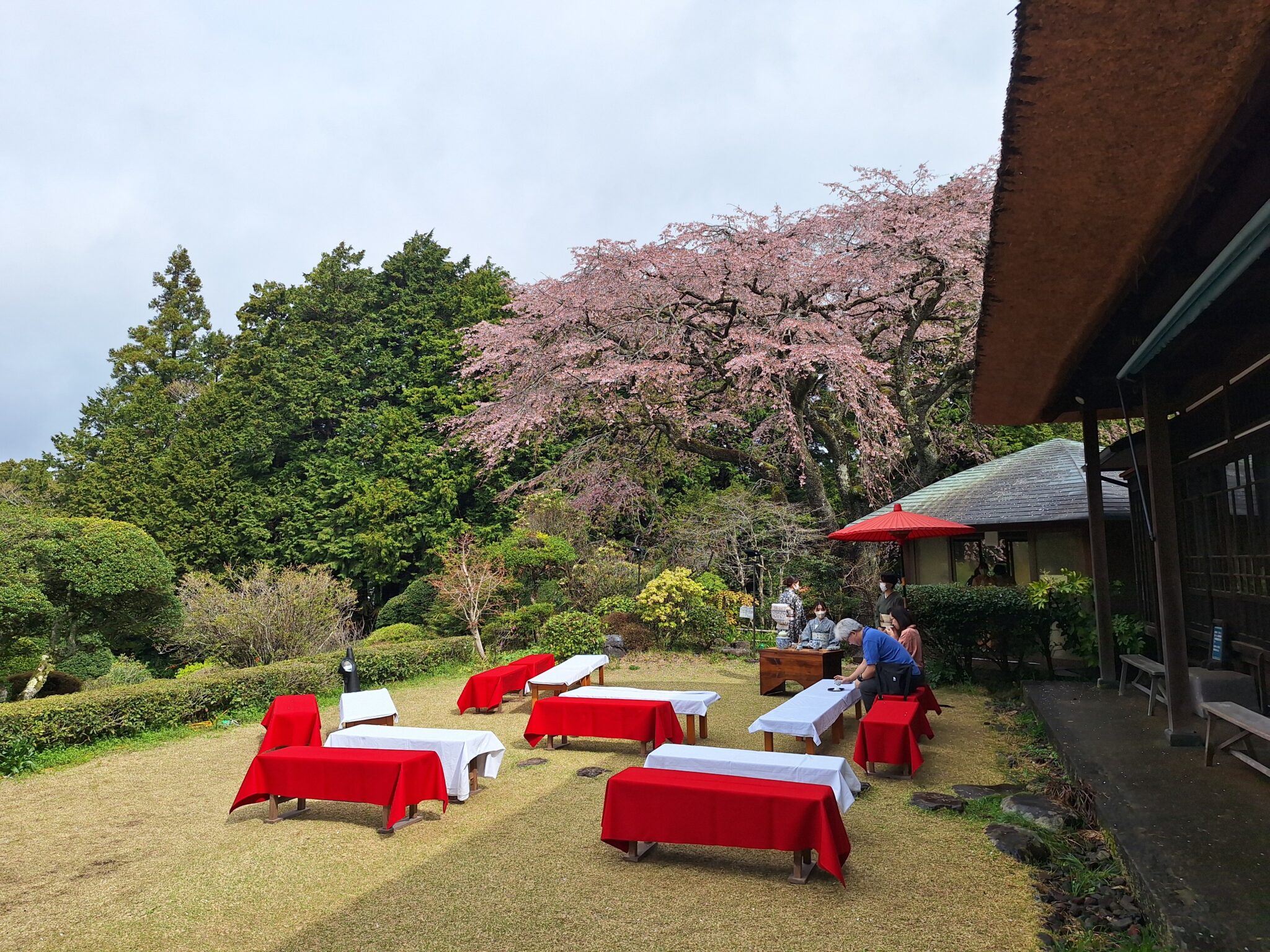 母屋周辺のしだれ桜は散り始め。それでも見応え充分でした。