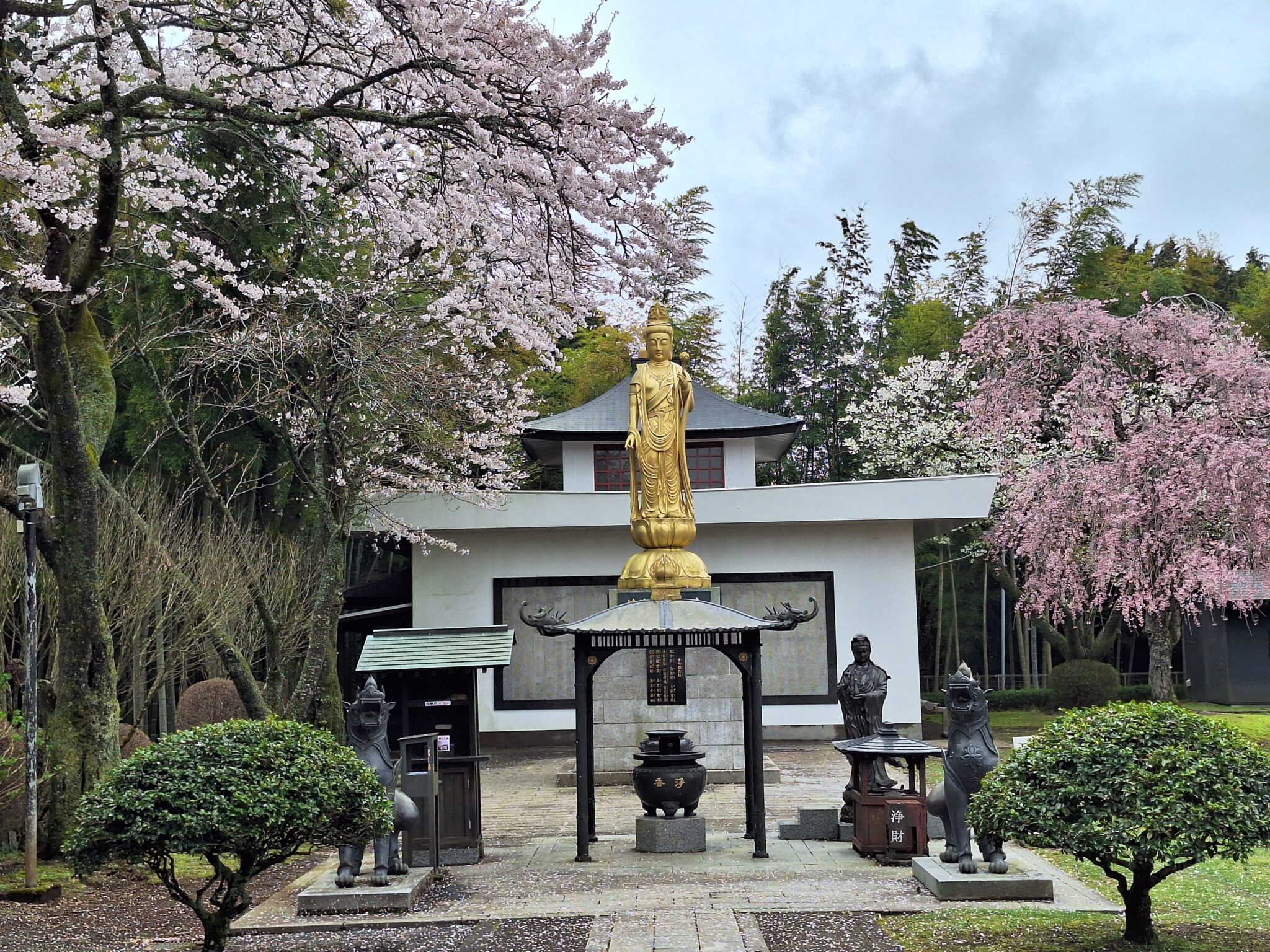 富士仏舎利塔平和公園へ移動。雨こそ降らないものの富士山の姿は拝めず残念。