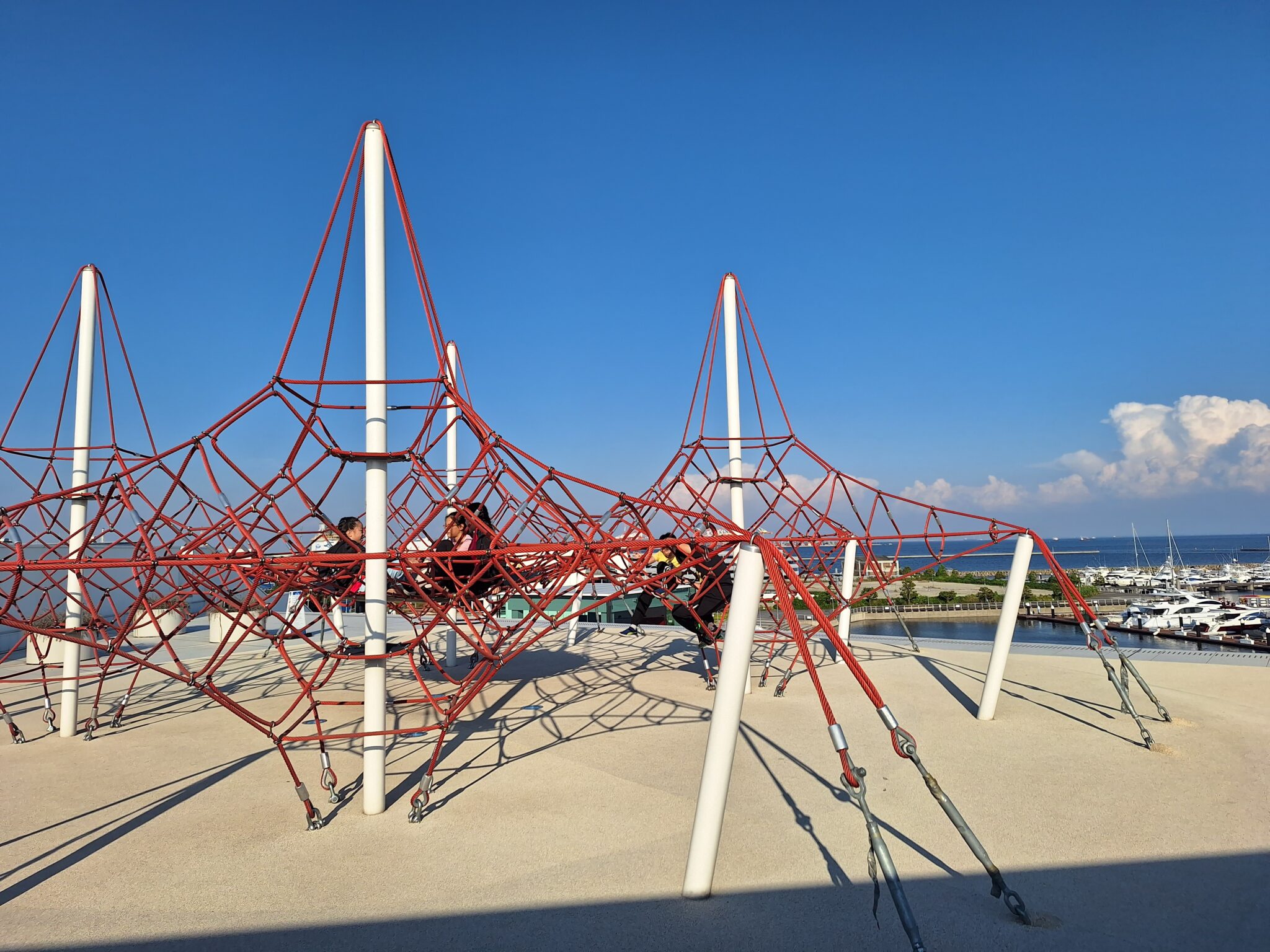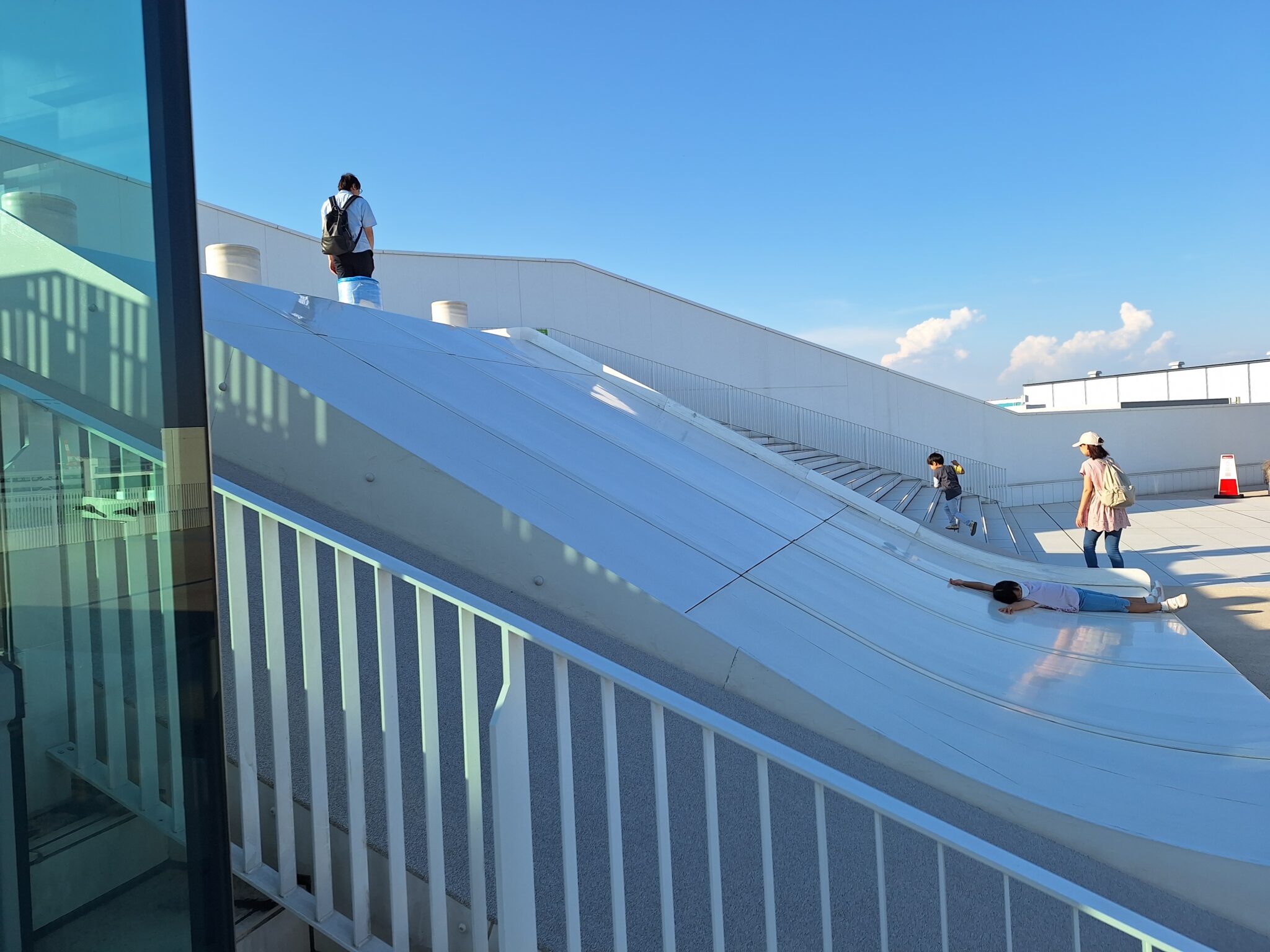 ユニクロパークの屋上には子どもが喜ぶ遊具が多々。