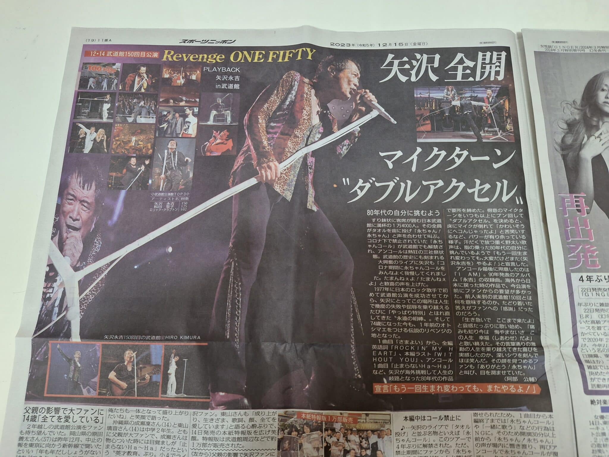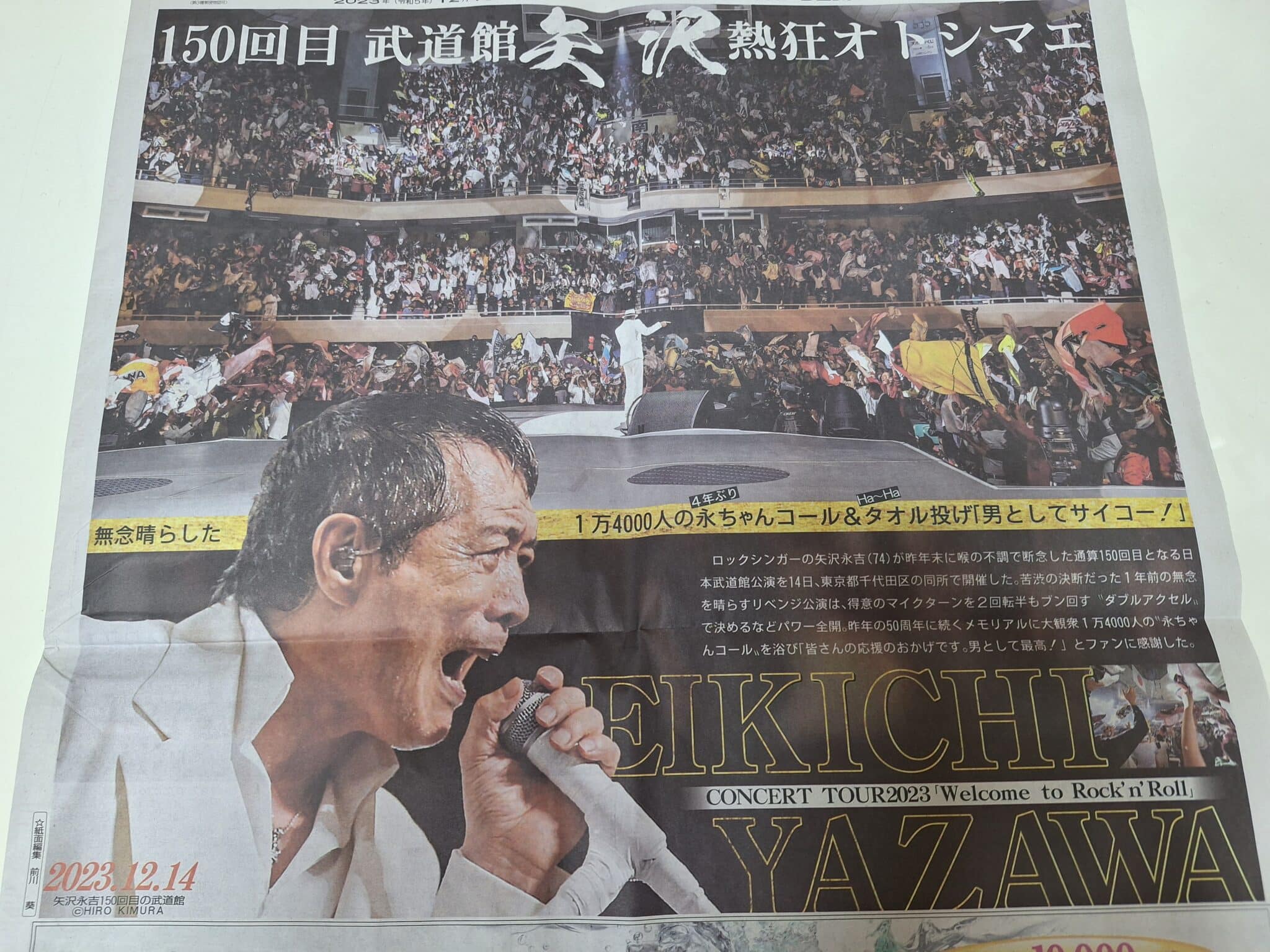芸能面で14日の150回目武道館の記事が掲載。たいした記事ではなかった。バックナンバーを1部160円で、いい商売するなあスポニチ。
