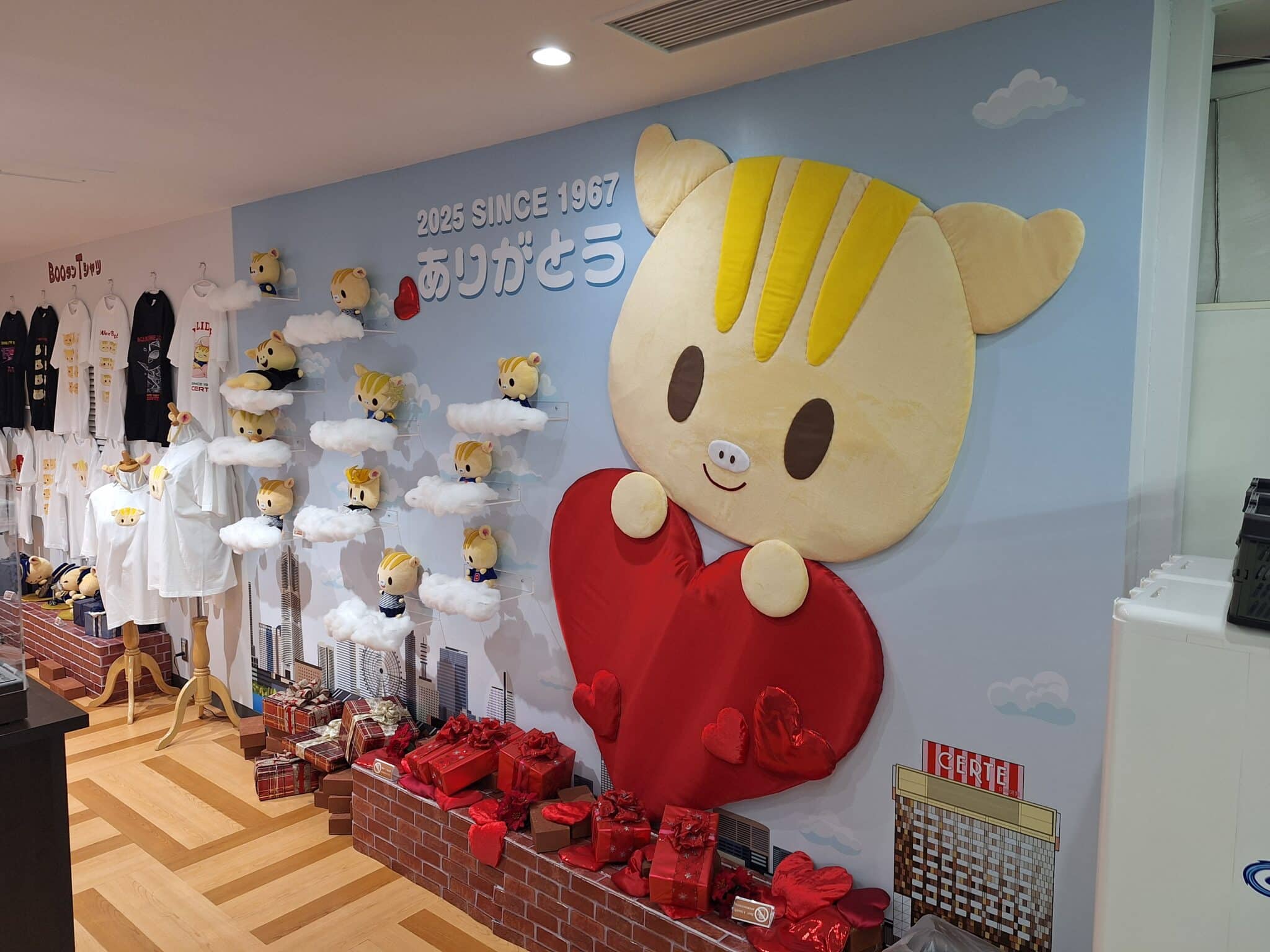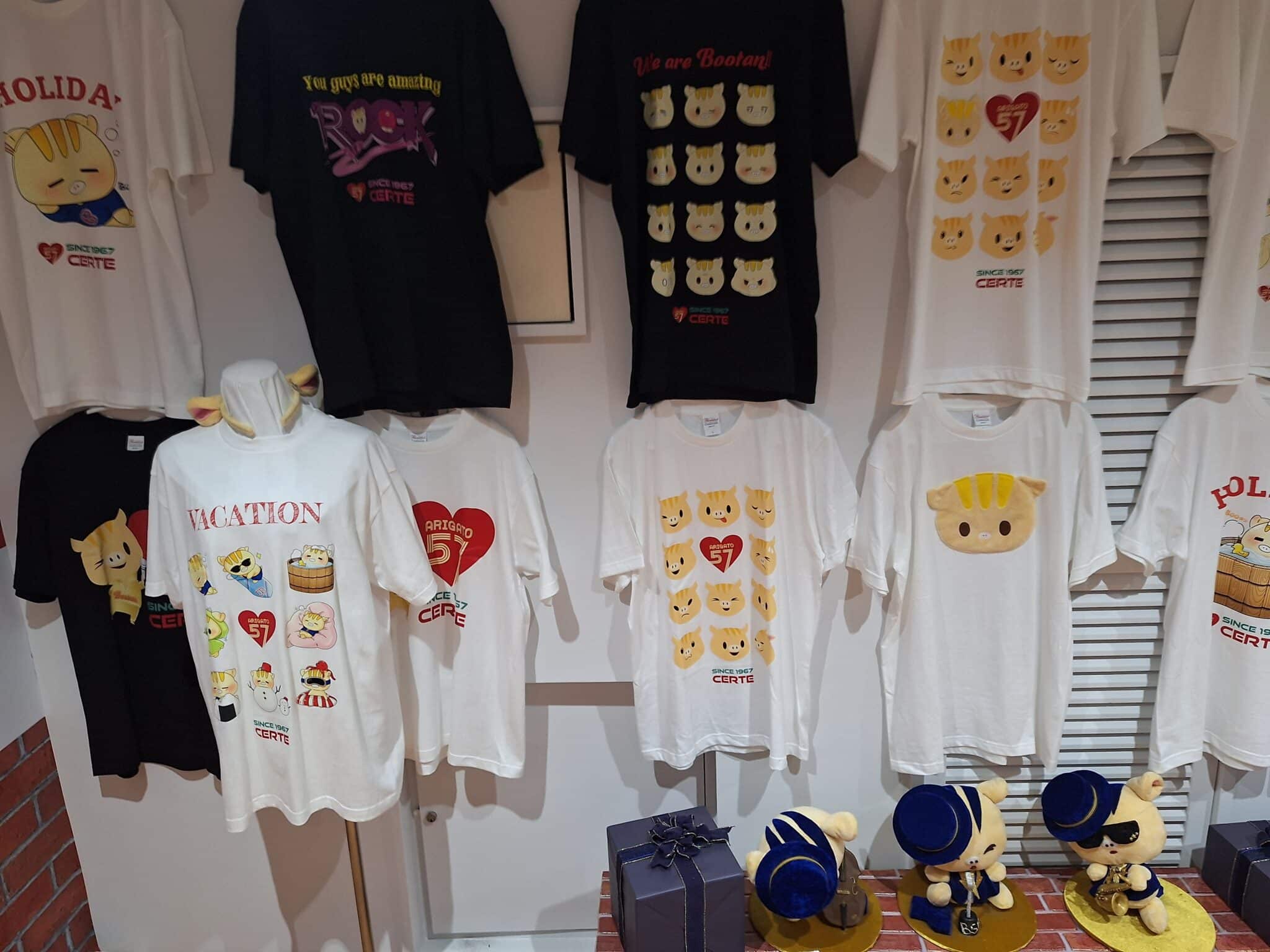 マスコットキャラの数々のTシャツ。