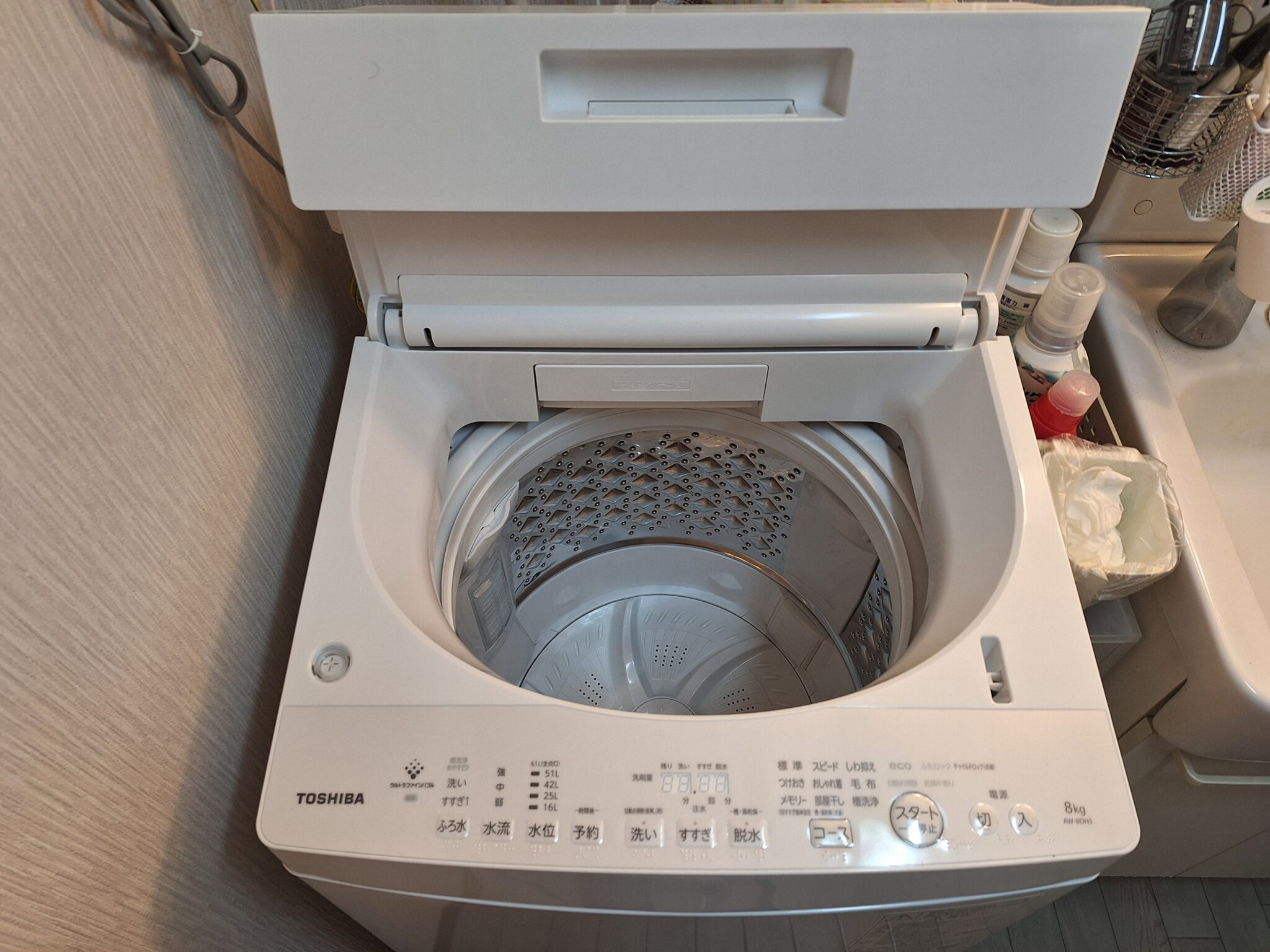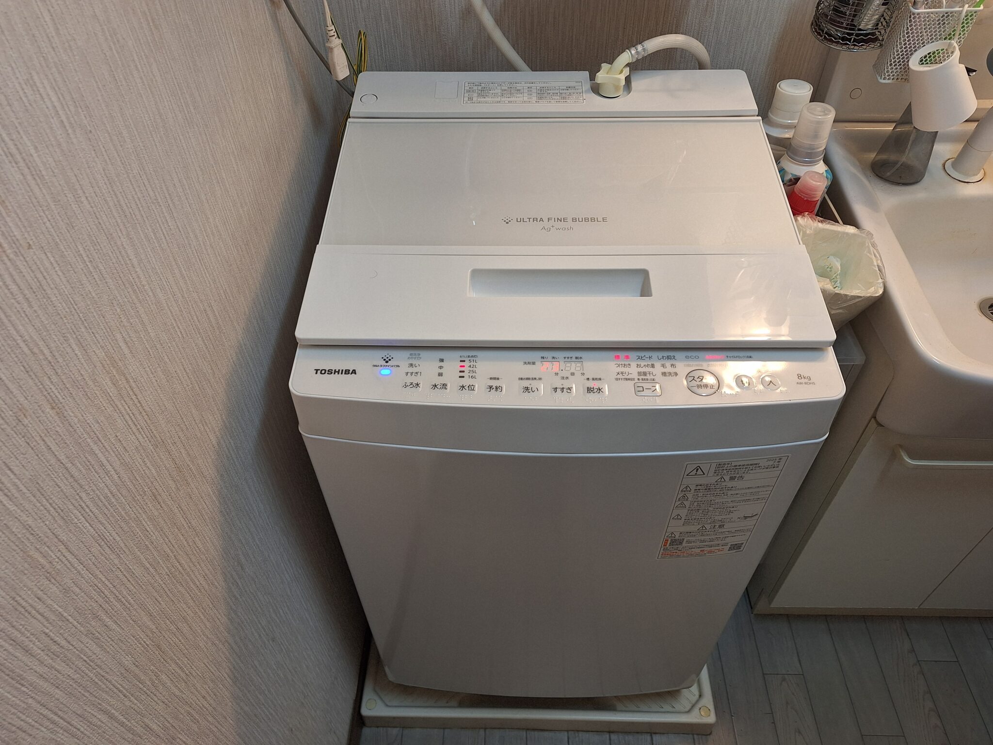 昨日、設置してもらった新しい洗濯機はTOSHIBA製、娘が都内で一人暮らしを始め、夫婦二人暮らしになったのでダウンサイズして、縦型式8キロ インバーター制御に。圧迫感のあった洗面所がスッキリ!